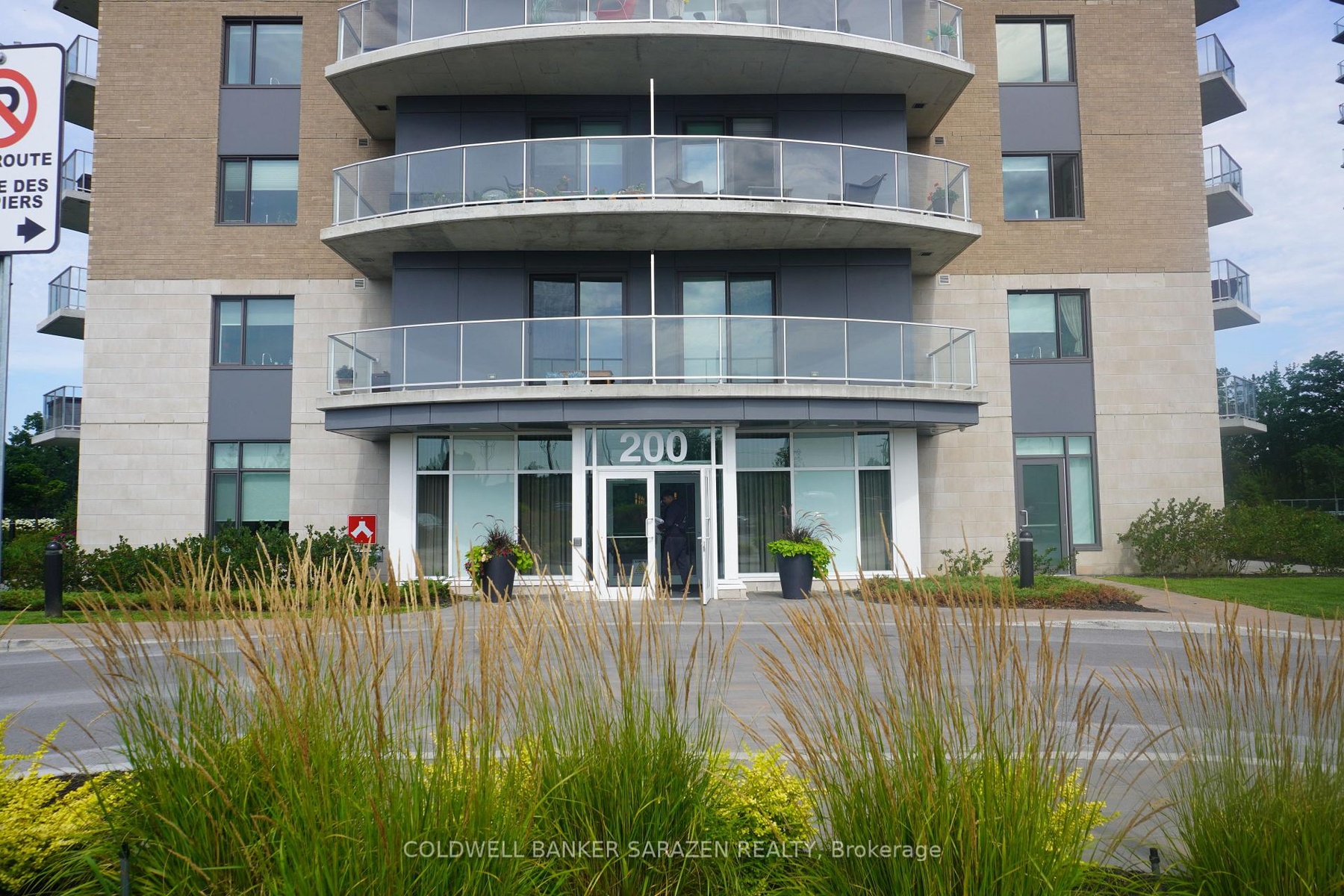 Enjoy breathtaking sunset views over the Ottawa River and Petrie Island from this stunning 1-bedroom + den condo on the 12th floor with eastern exposure.The spacious, open-concept layout is flooded with natural light through floor-to-ceiling windows.Rich hardwood and ceramic floors flow throughout the living and dining areas.A chefs kitchen features granite countertops, shaker-style cabinetry, a large island, and stainless steel appliances.The primary bedroom offers balcony access and a custom-built double closet.Flexible den space is ideal for a home office or guest room.The elegant bathroom includes a separate tub and shower, plus extra storage.In-suite laundry, tall ceilings, pot lights, underground parking, and a private locker included.Relax or entertain on the oversized balcony with serene, unobstructed water views.Resort-style amenities include a rooftop terrace, pool, gym, and party room.Steps from Petrie Island beaches, trails, and future LRT station.Live the ultimate lifestyle with front-row views of fireworks, festivals, and flyovers .