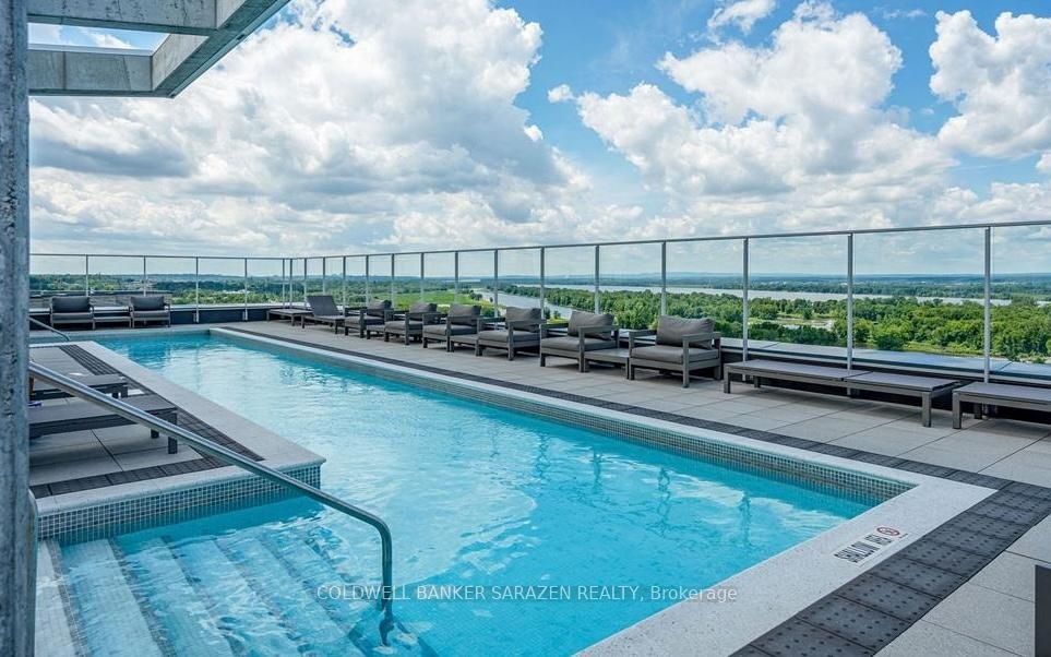 DescriptionEnjoy breathtaking sunset views over the Ottawa River and Petrie Island from this stunning 1-bedroom + den condo on the 12th floor with eastern exposure.The spacious, open-concept layout is flooded with natural light through floor-to-ceiling windows.Rich hardwood and ceramic floors flow throughout the living and dining areas.A chefs kitchen features granite countertops, shaker-style cabinetry, a large island, and stainless steel appliances.The primary bedroom offers balcony access and a custom-built double closet.Flexible den space is ideal for a home office or guest room.The elegant bathroom includes a separate tub and shower, plus extra storage.In-suite laundry, tall ceilings, pot lights, underground parking, and a private locker included.Relax or entertain on the oversized balcony with serene, unobstructed water views.Resort-style amenities include a rooftop terrace, pool, gym, and party room.Steps from Petrie Island beaches, trails, and future LRT station.Live the ultimate lifestyle with front-row views of fireworks, festivals, and flyovers .Amenities- Auto Garage Door Remote