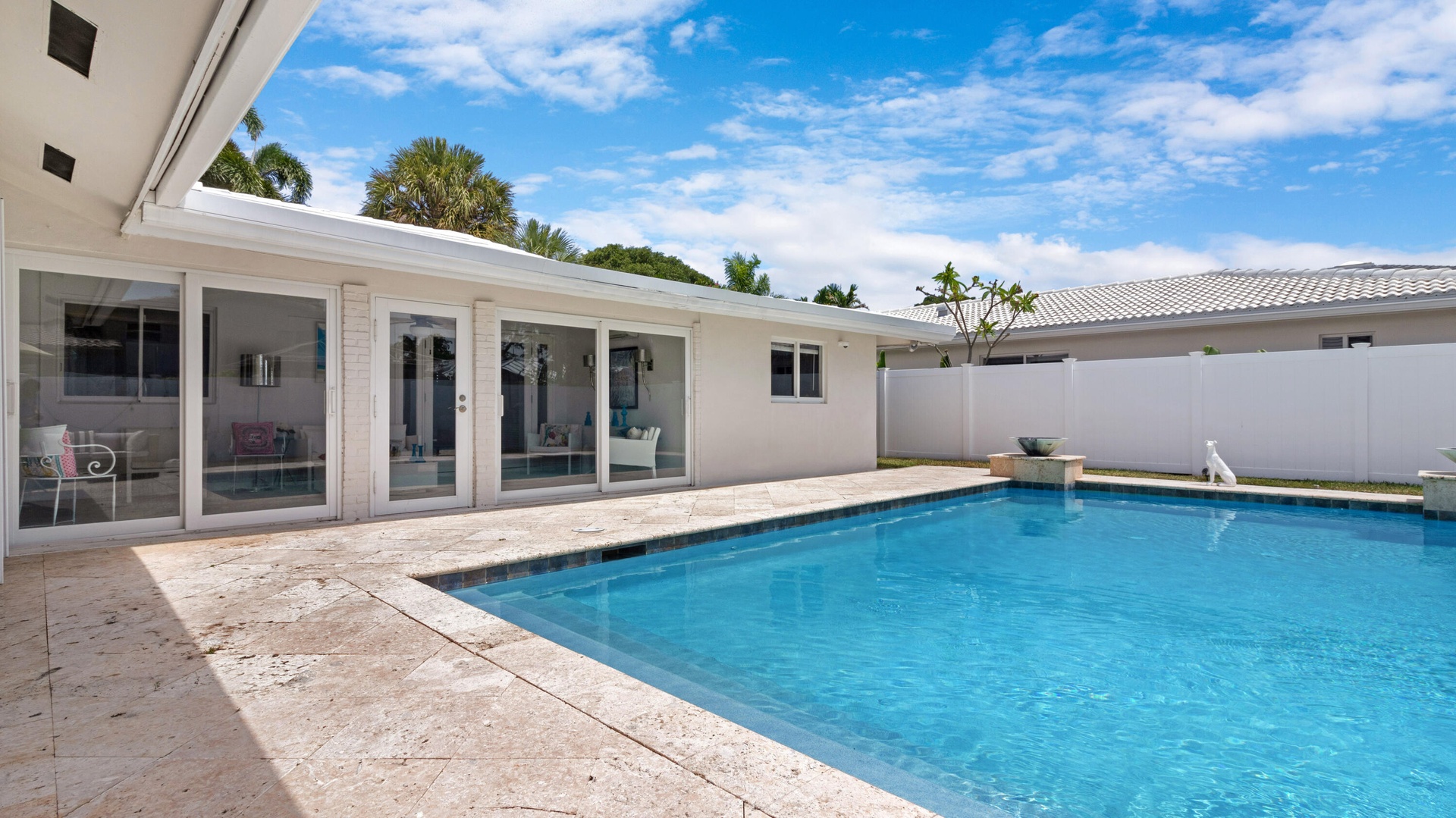Discover the epitome of South Florida living in this beautifully updated 4-bedroom, 2-bath home, just a 5-minute golf cart ride to the pristine shores of Lauderdale-by-the-Sea. Designed with a desirable split floor plan, this residence perfectly blends privacy, comfort, and flexibility, ready for you to make it your own.From the moment you arrive, the curb appeal shines with a circular travertine driveway and spacious 2-car garage, offering both style and practicality. Spacious interior featuring plantation shutters, impact windows, and a seamless flow into the enclosed air-conditioned Florida room that opens to your private backyard oasis. Enjoy year-round relaxation by the heated saltwater pool, framed by elegant travertine decking and accessible through a convenient cabana bath,