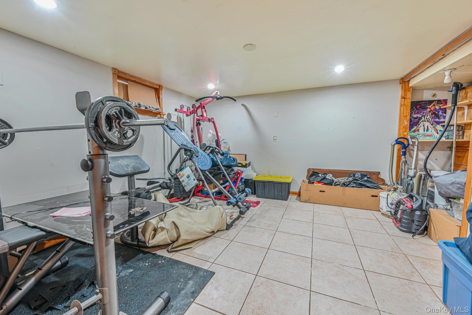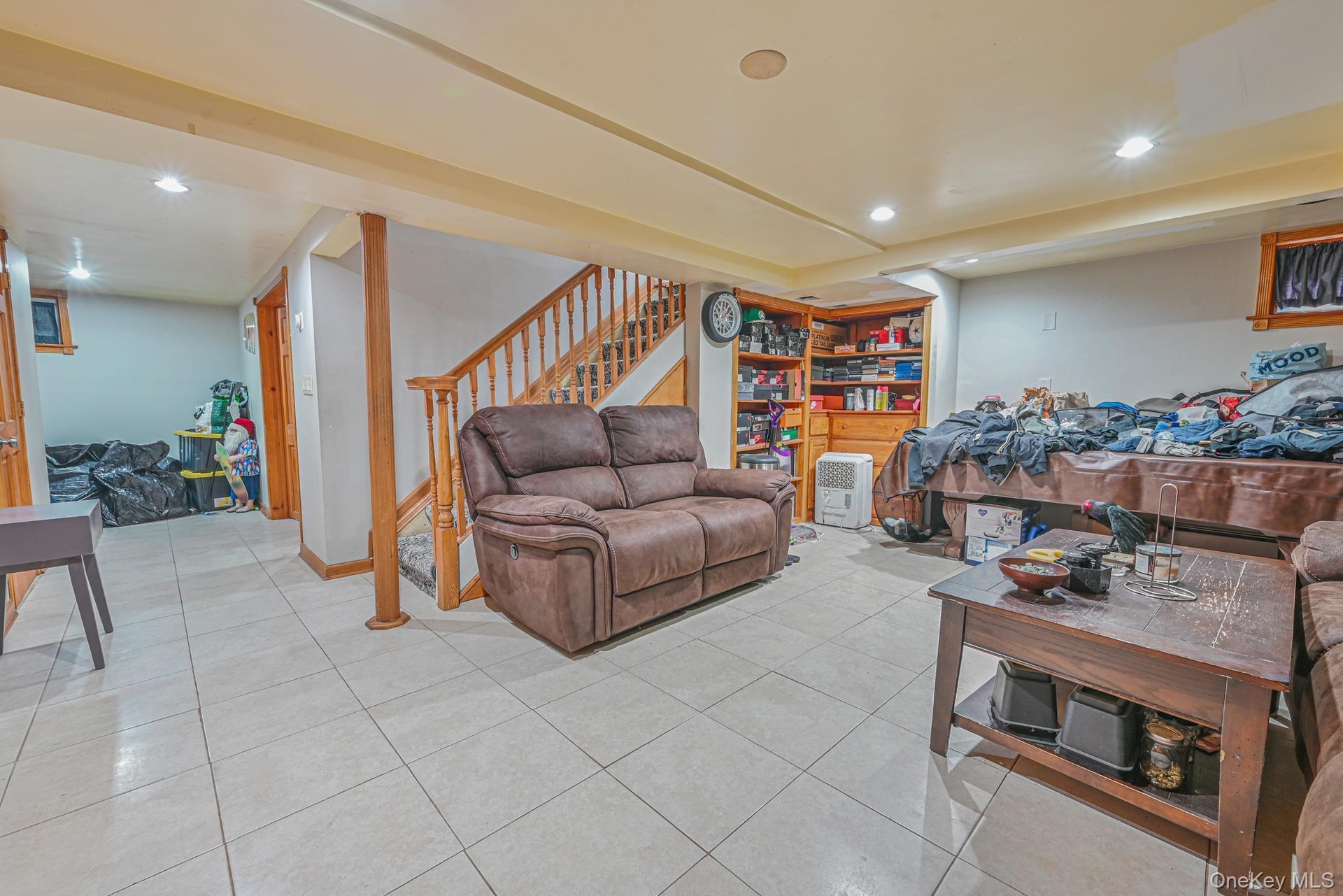 - Living area featuring stairway, recessed lighting, and light tile patterned flooring