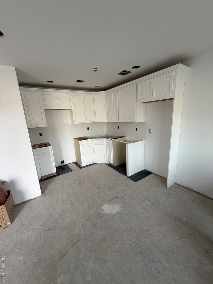 - Kitchen featuring white cabinetry