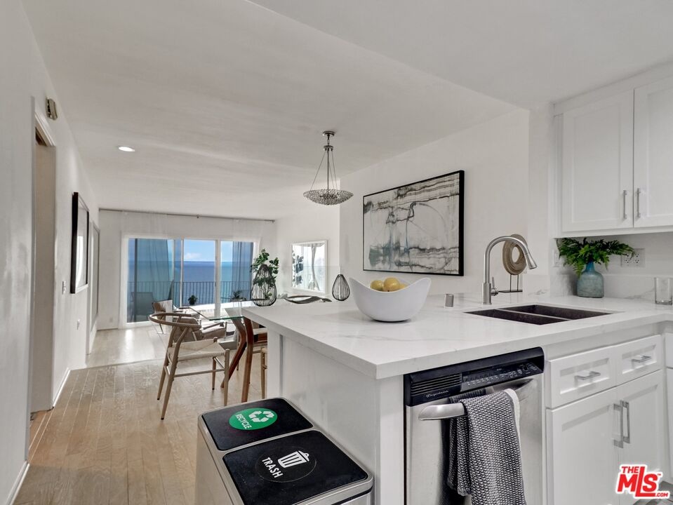 Welcome to your dream coastal retreat where location, views, and quality are truly unmatched. This recently updated upper-level 2-bedroom, 2-bathroom condo is your private oasis in Sunset Mesa, showcasing panoramic ocean views from nearly every room. The elevated dining area and kitchen are thoughtfully designed to capture breathtaking ocean views, as you cook and dine, sleek white cabinetry, quartz countertops, glass-and-stainless-steel railings, and engineered wood floors. Waking up here will feel like you're still in a dream. Soaring ceilings and floor-to-ceiling windows with sliding glass doors flood the space with natural light and open to a private ocean-view patio perfect for morning coffee or evening sunsets. Two beautifully tiled marble bathrooms and an in-unit laundry room offer modern convenience, while your vehicles and gear are securely stored in a private two-car garage with generous storage. Located in a boutique four-unit complex, the super-low HOA dues cover water, sewer, trash, insurance, including earthquake, and common-area landscaping. Just minutes from the iconic Getty Villa and the Palisades Village's shops and dining and only steps to the beach for surfing, biking, running, or simply strolling along the shore this is a rare opportunity to enjoy luxury, convenience, and coastal charm in one perfect getaway. Don't miss this rare opportunity to own a turnkey luxury condo in one of California's most coveted coastal communities.