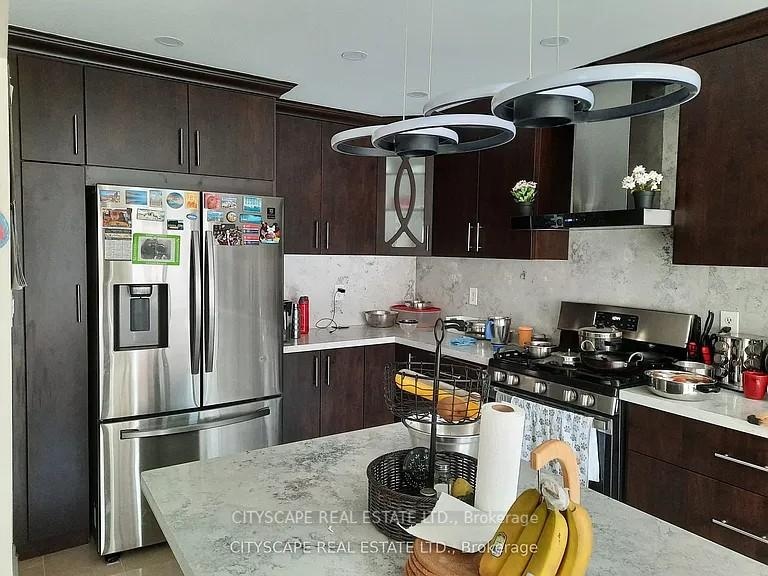 Hardwood flooring, tri colored pot lights indoor and outdoors, Quarts Counter tops, Spacious 4 Bedrooms 3 bath Detached Home with separate Living and Family Rooms With Gas Fireplace and big drive way and single garage. Rent is 3500+70% of utilities shared with basement tenants.