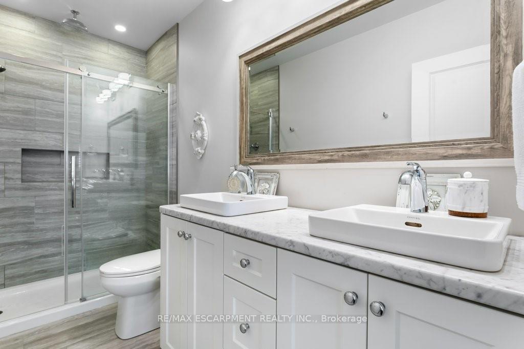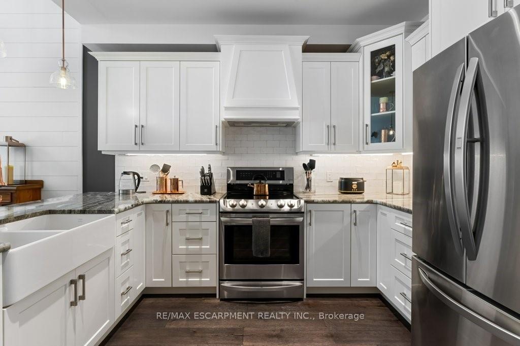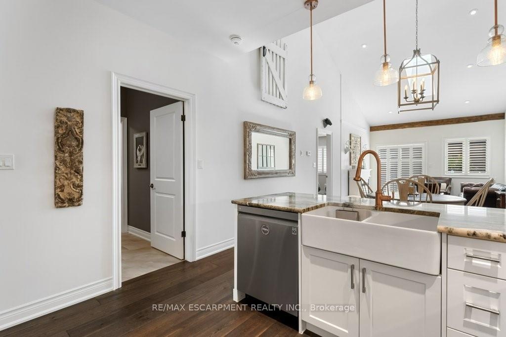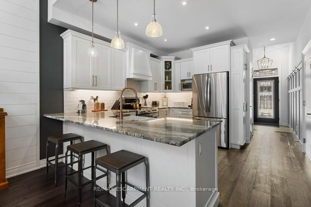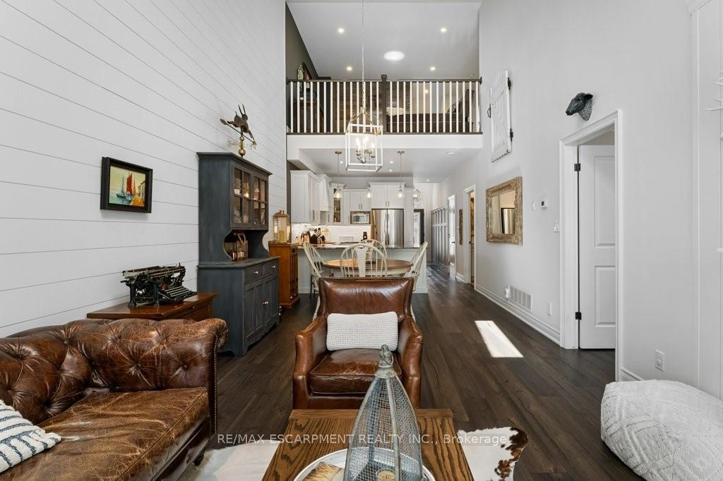 Move to Vineland and come live amongst the vineyards and many wineries! This immaculate town home has many well thought out upgrades which include engineered hardwood flooring, lighting, natural gas BBQ hook up, quartzite countertops, shiplap accent and barn board accents and upgraded taps and lighting! You will love the amazing open concept feeling in this bungaloft with main floor primary bedroom with ensuite with shower and double sinks and large walk in closet too! The upper loft is a great space to stay in the action of the home! This home offers extra space with a bonus of a third bedroom or office area with skylights just off the loft area! Convenient main floor laundry with extra cabinets make main floor living easy! If you need extra space the basement awaits your finishing ideas with a rough in bath too! This is a must see home and Vineland is a quant little town to explore and live within the beauty of Niagara! Vineland is a town where you settle and never leave! Commuters don't be shy this is easy hwy access too!