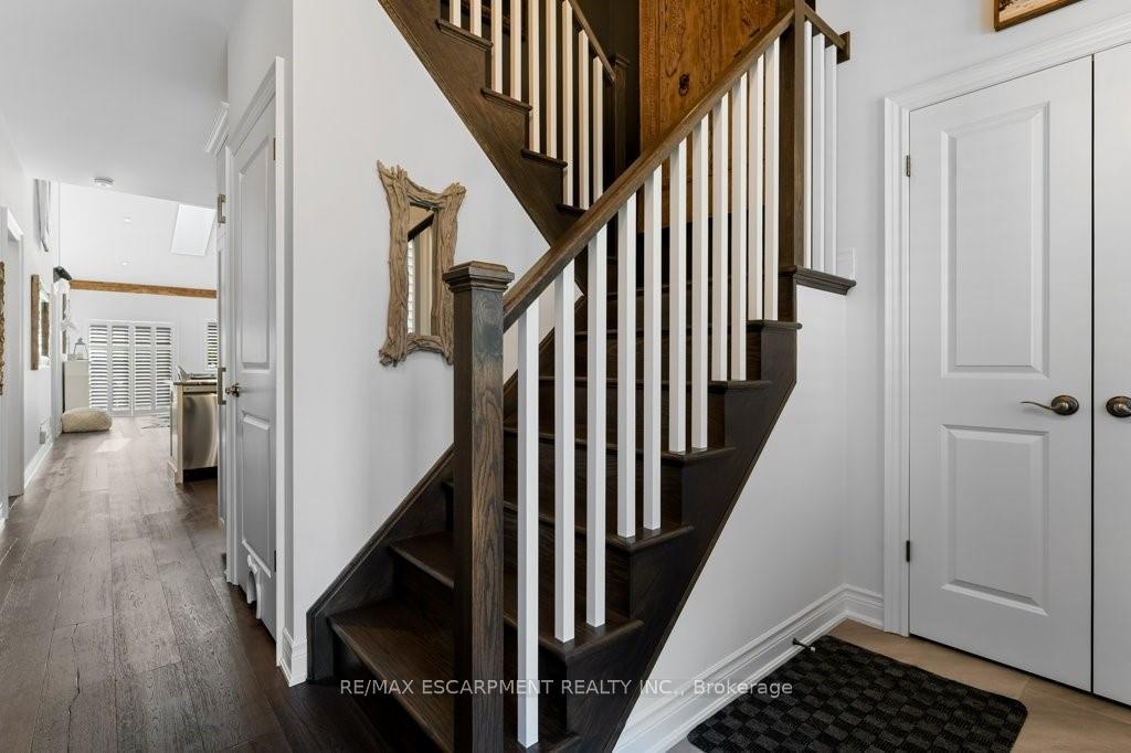 DescriptionMove to Vineland and come live amongst the vineyards and many wineries! This immaculate town home has many well thought out upgrades which include engineered hardwood flooring, lighting, natural gas BBQ hook up, quartzite countertops, shiplap accent and barn board accents and upgraded taps and lighting! You will love the amazing open concept feeling in this bungaloft with main floor primary bedroom with ensuite with shower and double sinks and large walk in closet too! The upper loft is a great space to stay in the action of the home! This home offers extra space with a bonus of a third bedroom or office area with skylights just off the loft area! Convenient main floor laundry with extra cabinets make main floor living easy! If you need extra space the basement awaits your finishing ideas with a rough in bath too! This is a must see home and Vineland is a quant little town to explore and live within the beauty of Niagara! Vineland is a town where you settle and never leave! Commuters don't be shy this is easy hwy access too!Amenities- Auto Garage Door Remote