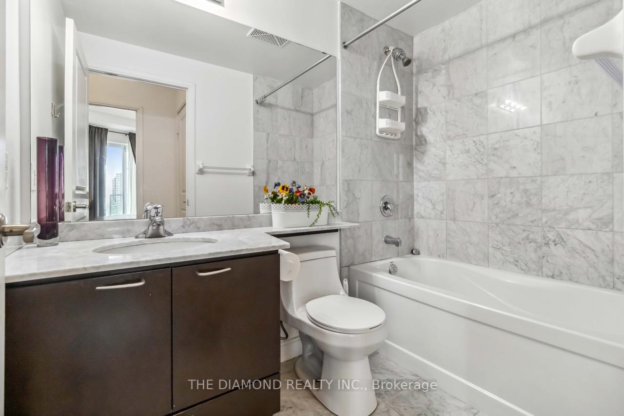 DescriptionFully FURNISHED 2 Bedroom Executive Suite, in iconic 50 Absolute Ave, one of a pair of the most recognized buildings in the world nicknamed "The Marilyn Bldgs. Hotel style with 24hr. Concierge & Security, 6 elevators, Lounges, Terraces, unparalleled Amenities & direct access to a 24hr Market/Deli as well as Dental & Medical Clinics on the main level. Suite 2606 is perfect as a Residence or an Income Property. This suite, leased & enjoyed by executives from across the globe working here on contract is now on the market for the first time. Freshly painted, professionally cleaned, FURNISHED & turn key like no other. There are no irregular shaped rooms or divided spaces. Converted from a 1 Bdr + Den the updated floorplan is more versatile as a 2 bdr suite. The primary bedroom is spacious, with a large closet, broadloom & balcony walkout. Bdr 2 has a frosted glass door entry, 9 ft ceiling height & a full sized mirrored closet with double slider doors. Suitable as a youths bedroom, nursery, private office or media room. Practice your culinary skills in this generous kitchen featuring 4 S/S appliances, double sink, granite counters & breakfast bar. The bathroom's luxurious aesthetic is relaxing with Carrara Marble Counter Top, Floors & Tub Surround all imported from Italy. Ensuite Laundry closet has a stacked full sized Washer & Dryer. #2606 comes with 1 underground parking, huge storage locker & a variety of amenities from a "Paw Spa" to Guests Suites, Library, Car Wash Stalls and more. Must see #1: "48th floor Residents Lounge a spectacular venue for meetings & special occasions with a private meeting area, professional kitchen, pool table rm, ceiling lighting, sound system & 180 degree balcony views of the Toronto Skyline to multiple city's down the west shores of Lake Ontario. Must see #2: Oasis, an exclusive terrace on the 3rd floor with 10,000 sq.ft. of relaxed dining & seating areas, barbecue & cooking spaces & fire table. *Cont'dAmenities- Alarm system