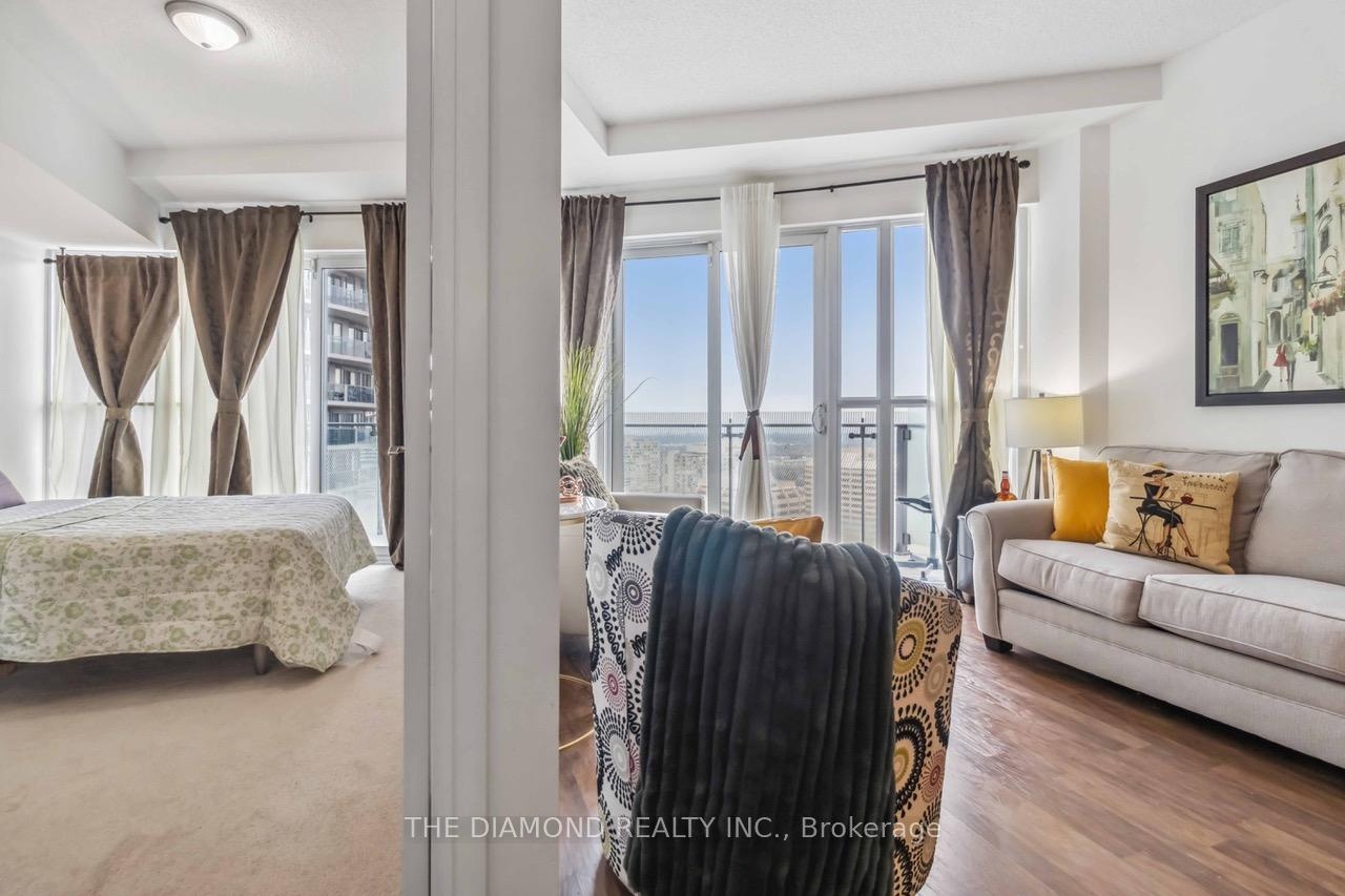 Fully FURNISHED 2 Bedroom Executive Suite, in iconic 50 Absolute Ave, one of a pair of the most recognized buildings in the world nicknamed "The Marilyn Bldgs. Hotel style with 24hr. Concierge & Security, 6 elevators, Lounges, Terraces, unparalleled Amenities & direct access to a 24hr Market/Deli as well as Dental & Medical Clinics on the main level. Suite 2606 is perfect as a Residence or an Income Property. This suite, leased & enjoyed by executives from across the globe working here on contract is now on the market for the first time. Freshly painted, professionally cleaned, FURNISHED & turn key like no other. There are no irregular shaped rooms or divided spaces. Converted from a 1 Bdr + Den the updated floorplan is more versatile as a 2 bdr suite. The primary bedroom is spacious, with a large closet, broadloom & balcony walkout. Bdr 2 has a frosted glass door entry, 9 ft ceiling height & a full sized mirrored closet with double slider doors. Suitable as a youths bedroom, nursery, private office or media room. Practice your culinary skills in this generous kitchen featuring 4 S/S appliances, double sink, granite counters & breakfast bar. The bathroom's luxurious aesthetic is relaxing with Carrara Marble Counter Top, Floors & Tub Surround all imported from Italy. Ensuite Laundry closet has a stacked full sized Washer & Dryer. #2606 comes with 1 underground parking, huge storage locker & a variety of amenities from a "Paw Spa" to Guests Suites, Library, Car Wash Stalls and more. Must see #1: "48th floor Residents Lounge a spectacular venue for meetings & special occasions with a private meeting area, professional kitchen, pool table rm, ceiling lighting, sound system & 180 degree balcony views of the Toronto Skyline to multiple city's down the west shores of Lake Ontario. Must see #2: Oasis, an exclusive terrace on the 3rd floor with 10,000 sq.ft. of relaxed dining & seating areas, barbecue & cooking spaces & fire table. *Cont'd