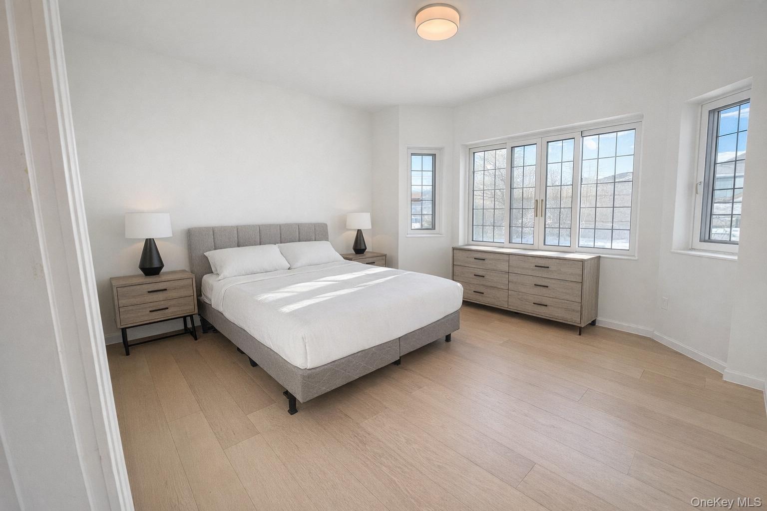 - Unfurnished bedroom with light wood-type flooring and ensuite bath