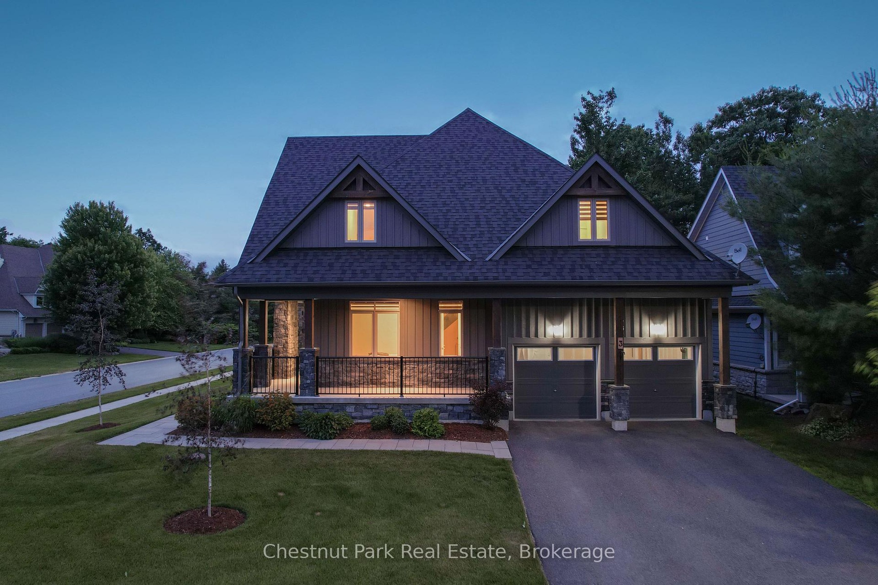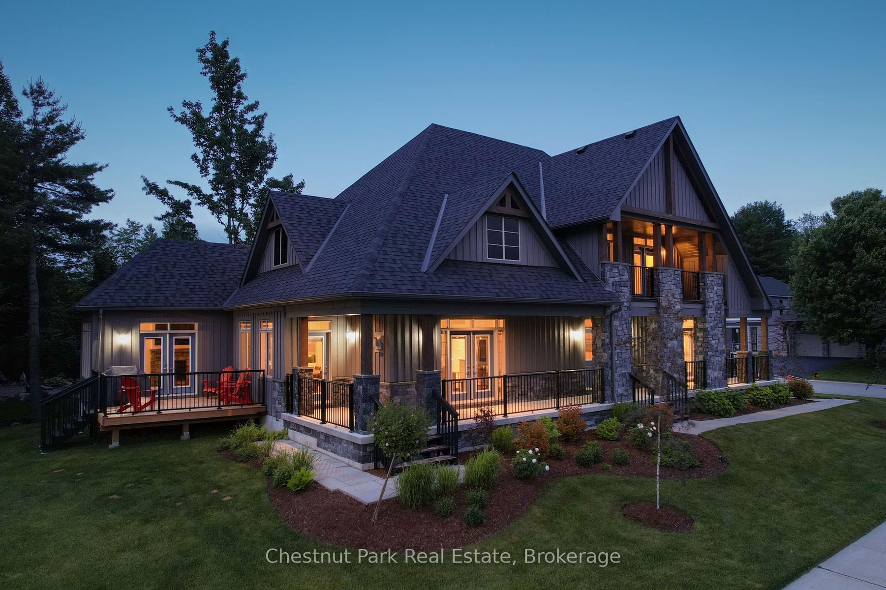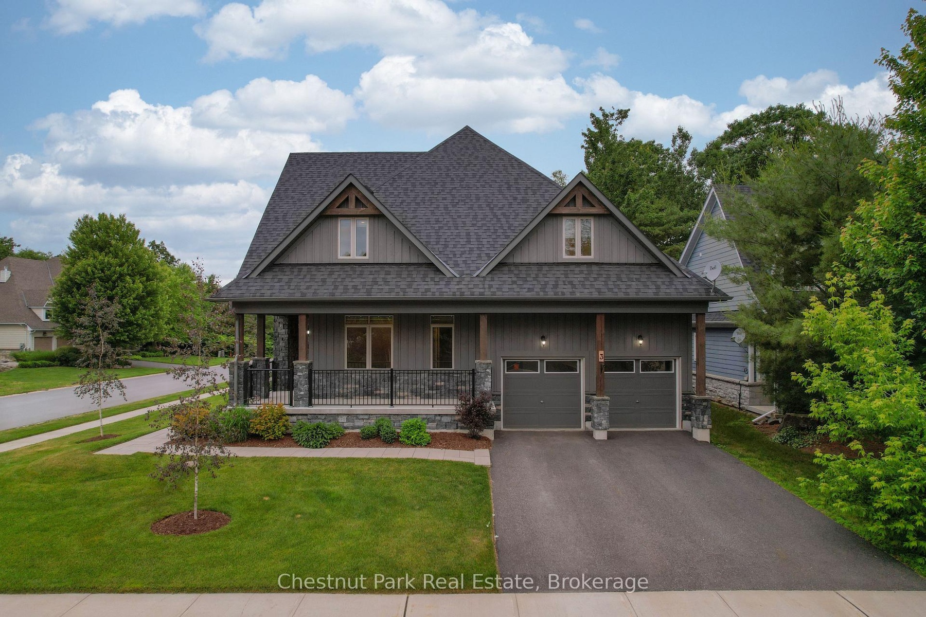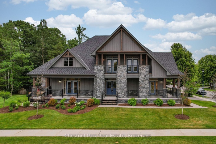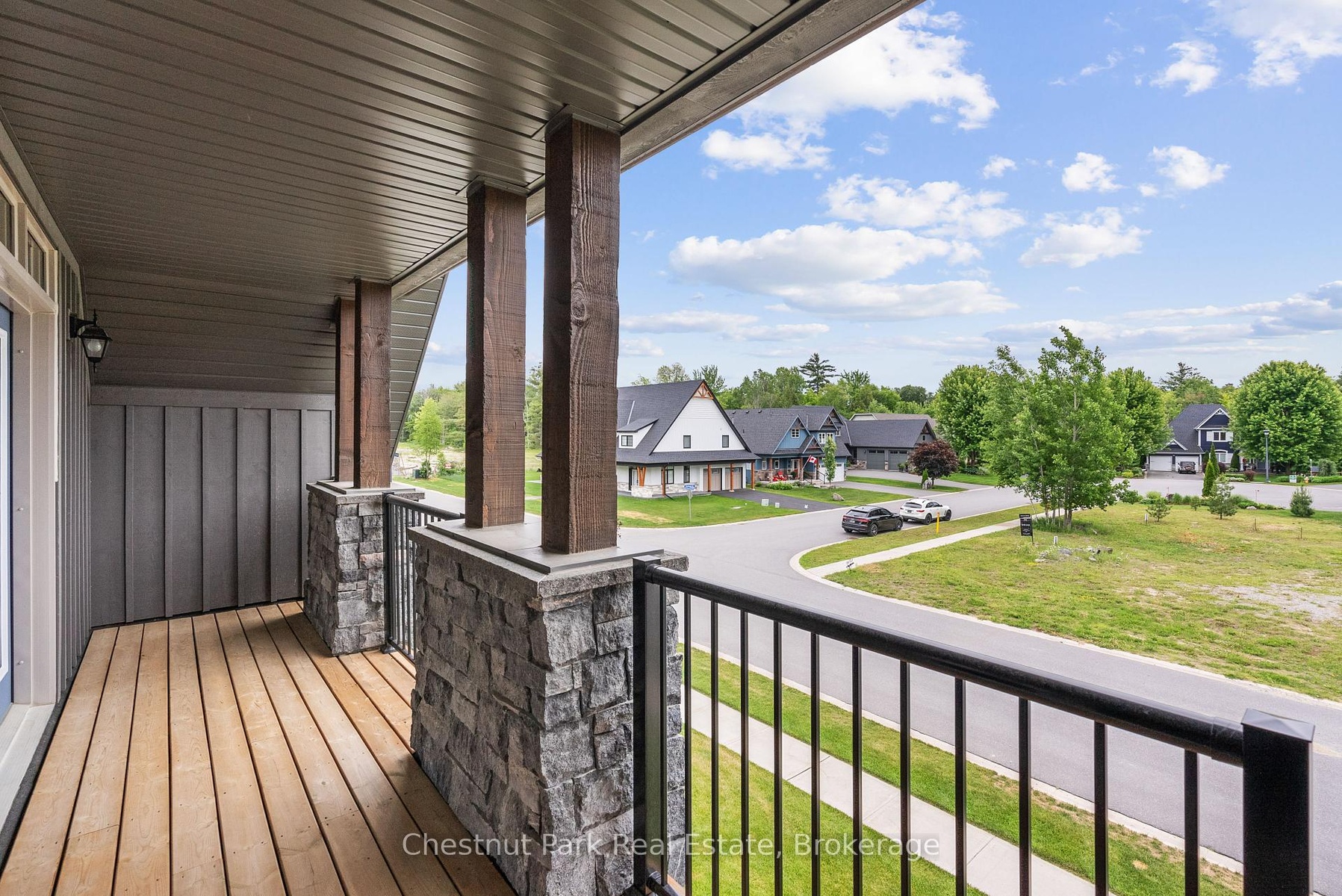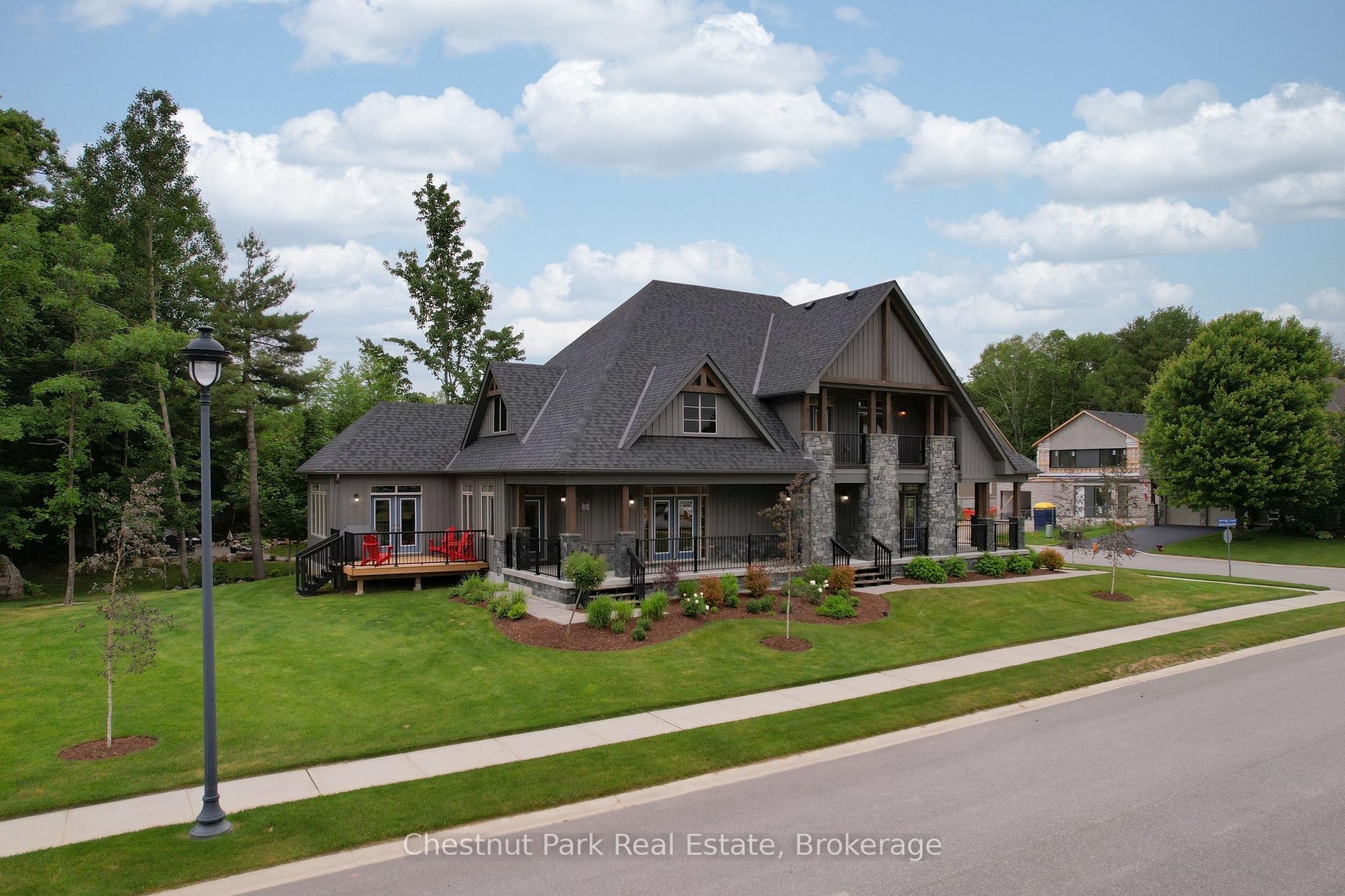 DescriptionWelcome to 3 Baypoint Court, a family-friendly home nestled in the picturesque Muskoka Bay Community on a quiet cul-de-sac.This 3-bedroom, 3-bathroom residence beautifully blends modern elegance and timeless charm. The exterior features high-quality siding, striking stone accents, and energy-efficient windows that ensure comfort and sustainability. The wrap-around covered porch offers a perfect outdoor space to enjoy the serene surroundings. Inside, the home there is 2,784 sq. ft. of living space, highlighted by a gas fireplace in the living room, creating a cozy center piece. The upgraded kitchen features tall, custom cabinets offering ample storage and functionality, complemented by a large island and granite countertops. The full dining space leads both to the exterior covered porch and to the family room centered around the second gas fireplace. Retreat outdoors to the sundeck to relax into the evening. Central to the home, convenience is enhanced with a main floor laundry room with garage access. The primary bedroom on this level, serves as a peaceful retreat, with a 4-piece ensuite bath, perfect for unwinding after a busy day. A second bedroom and 4 PC bath complete the main floor living areas. Throughout the interior, upgraded pre-finished oak hardwood flooring is found in the living and dining areas, while ceramic tiles flow through the remainder. Soaring 9-foot ceilings on the main floor create an airy, spacious atmosphere. Additionally, 8ft. Ceilings are notable in the upstairs loft - overlooking the main living space. Step out from the loft to the balcony overlooking the neighbourhood below. Both the 3rd bedroom and third 4pc bath complete the second level. Below, the full unfinished basement offers potential for future living space. Complete with an attached double car garage, this family-oriented home is ideal for those seeking a vibrant community that emphasizes outdoor fun, relaxation, and a high quality of life.Amenities- Auto Garage Door Remote