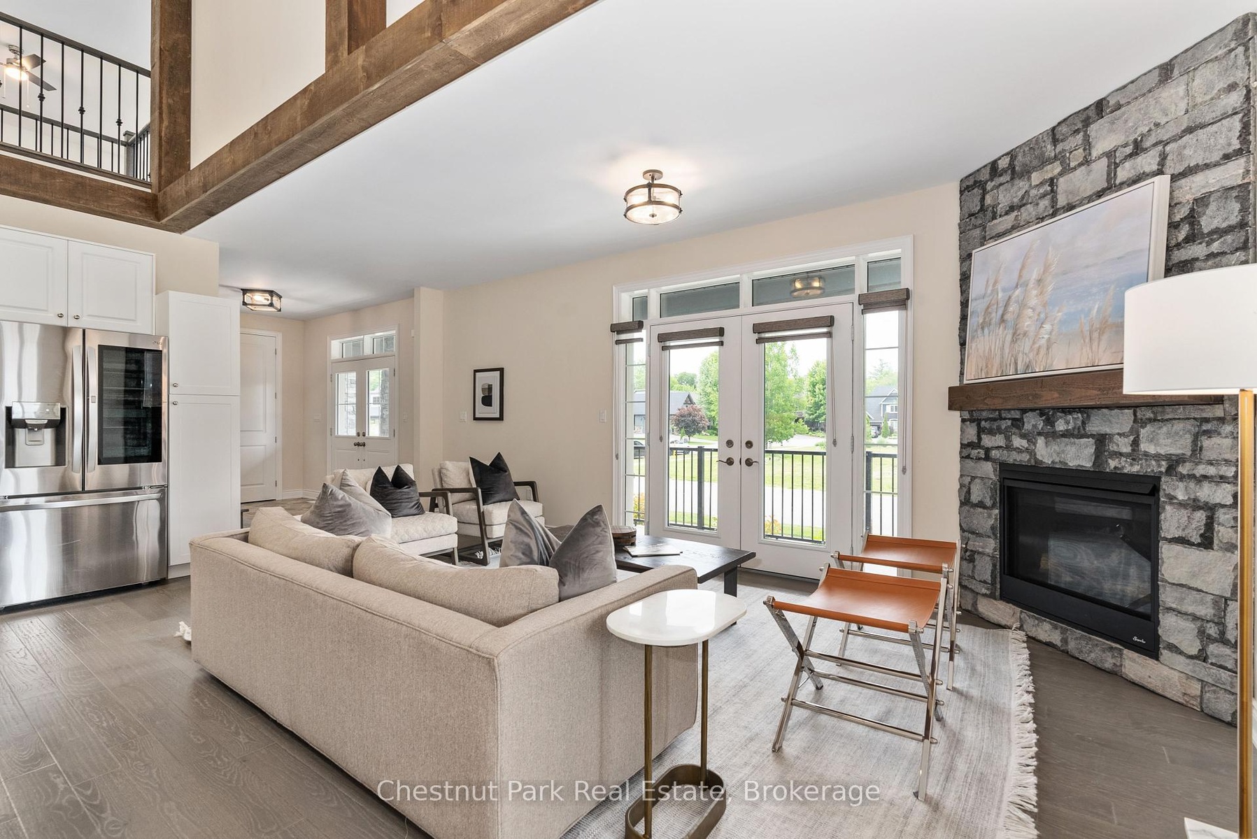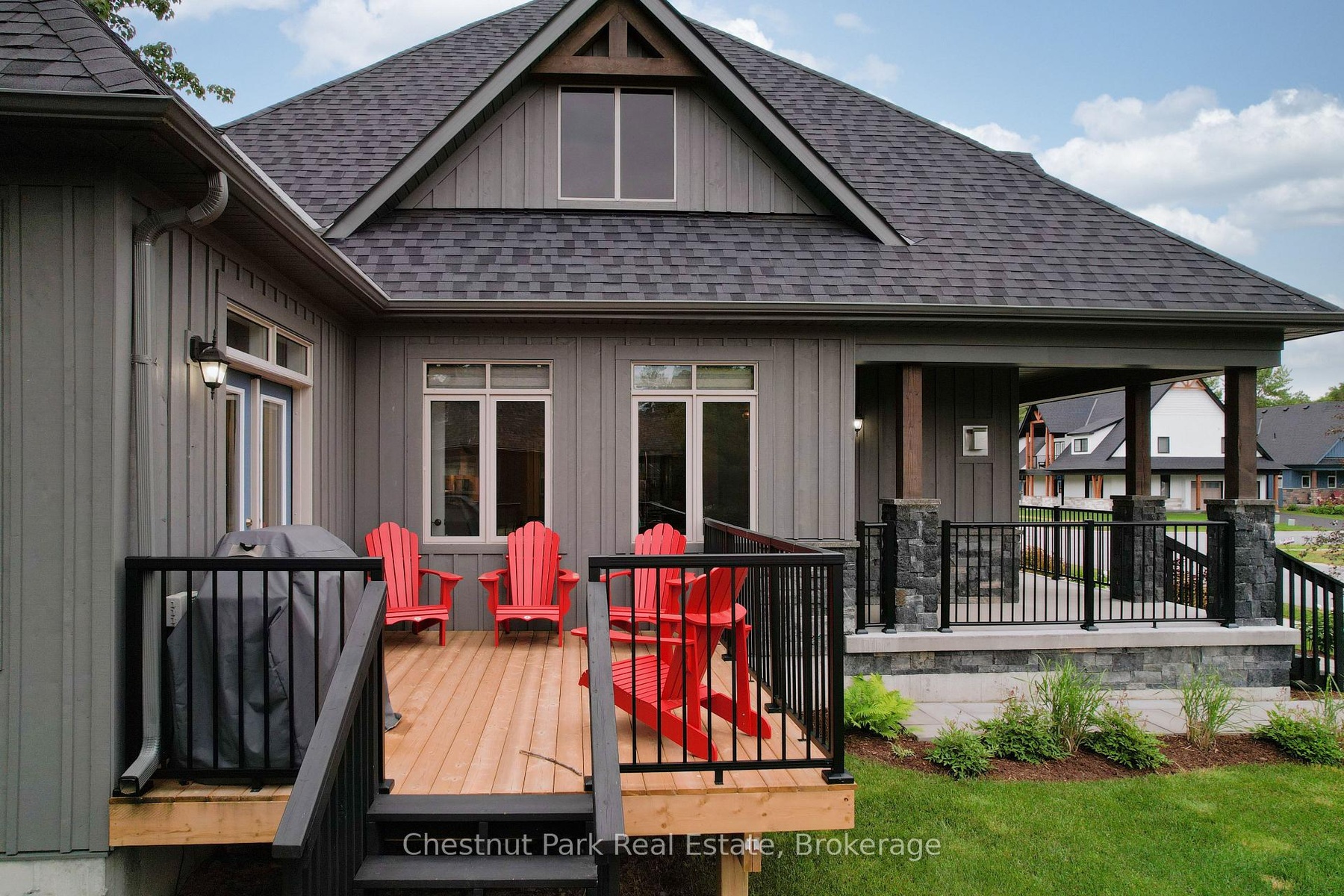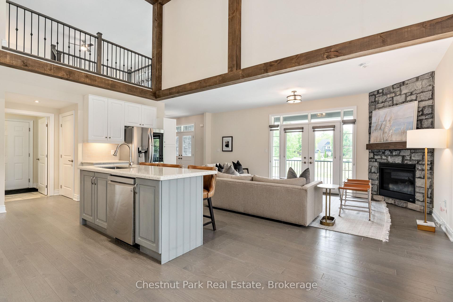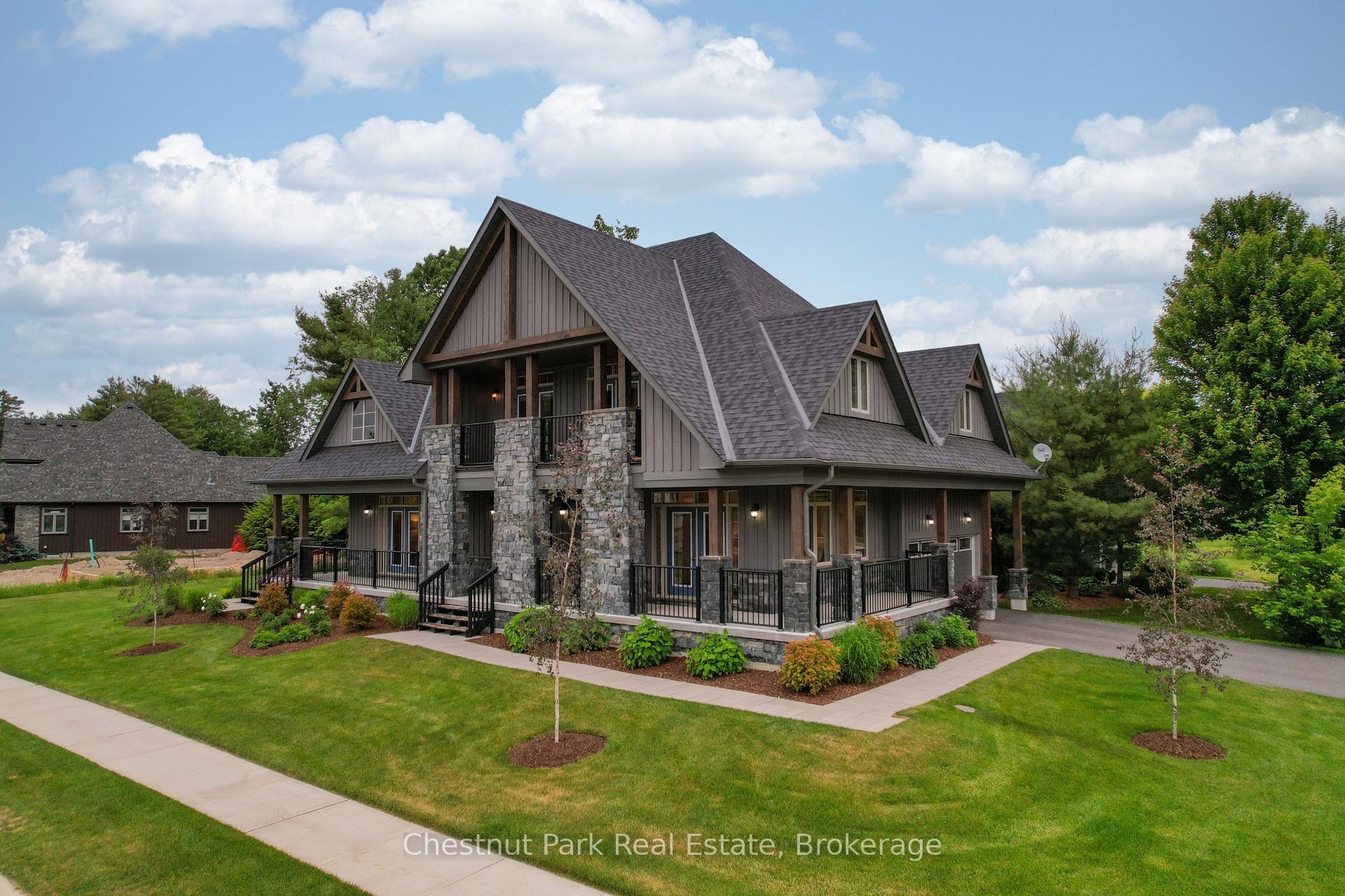 DescriptionWelcome to 3 Baypoint Court, a family-friendly home nestled in the picturesque Muskoka Bay Community on a quiet cul-de-sac.This 3-bedroom, 3-bathroom residence beautifully blends modern elegance and timeless charm. The exterior features high-quality siding, striking stone accents, and energy-efficient windows that ensure comfort and sustainability. The wrap-around covered porch offers a perfect outdoor space to enjoy the serene surroundings. Inside, the home there is 2,784 sq. ft. of living space, highlighted by a gas fireplace in the living room, creating a cozy center piece. The upgraded kitchen features tall, custom cabinets offering ample storage and functionality, complemented by a large island and granite countertops. The full dining space leads both to the exterior covered porch and to the family room centered around the second gas fireplace. Retreat outdoors to the sundeck to relax into the evening. Central to the home, convenience is enhanced with a main floor laundry room with garage access. The primary bedroom on this level, serves as a peaceful retreat, with a 4-piece ensuite bath, perfect for unwinding after a busy day. A second bedroom and 4 PC bath complete the main floor living areas. Throughout the interior, upgraded pre-finished oak hardwood flooring is found in the living and dining areas, while ceramic tiles flow through the remainder. Soaring 9-foot ceilings on the main floor create an airy, spacious atmosphere. Additionally, 8ft. Ceilings are notable in the upstairs loft - overlooking the main living space. Step out from the loft to the balcony overlooking the neighbourhood below. Both the 3rd bedroom and third 4pc bath complete the second level. Below, the full unfinished basement offers potential for future living space. Complete with an attached double car garage, this family-oriented home is ideal for those seeking a vibrant community that emphasizes outdoor fun, relaxation, and a high quality of life.Amenities- Auto Garage Door Remote