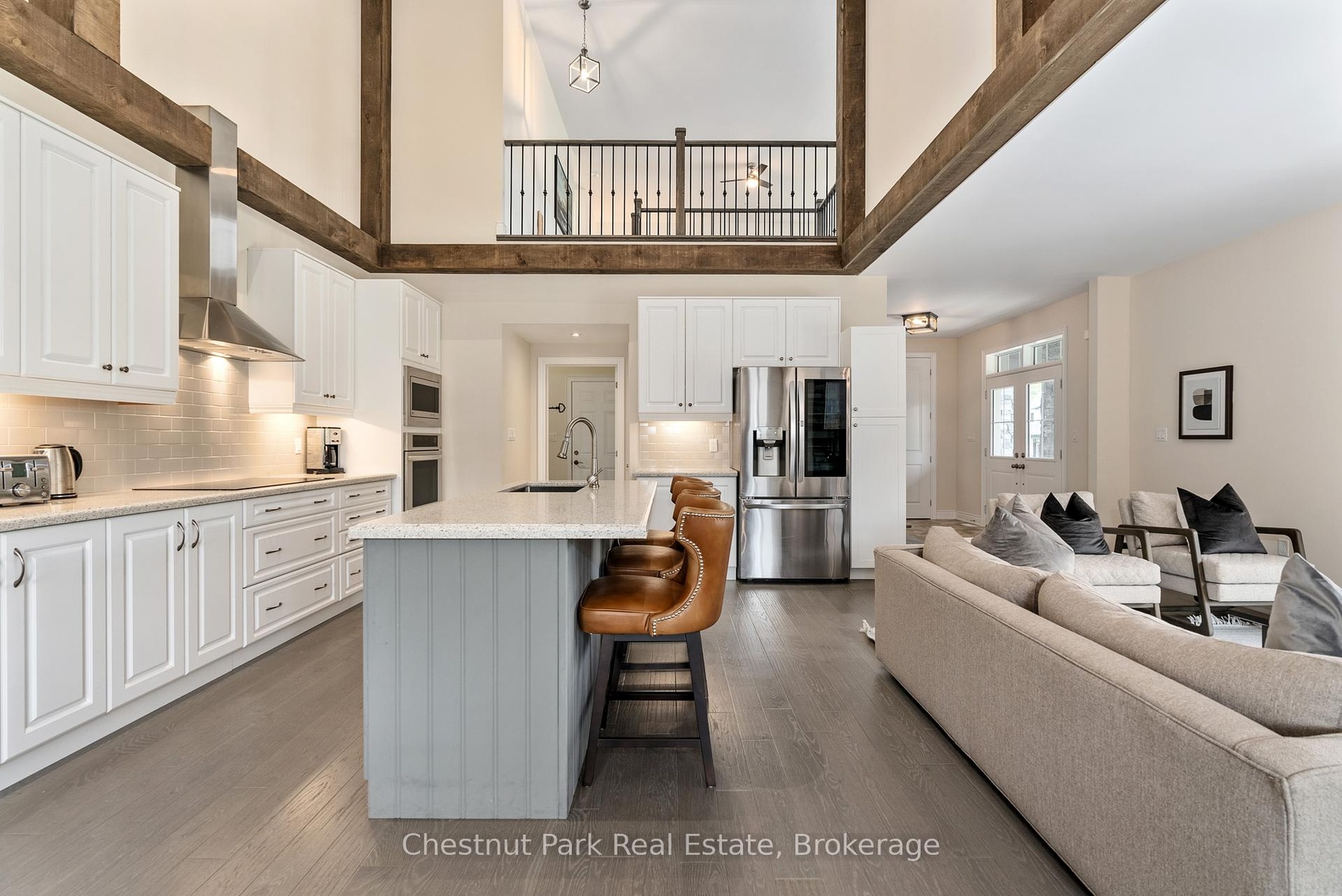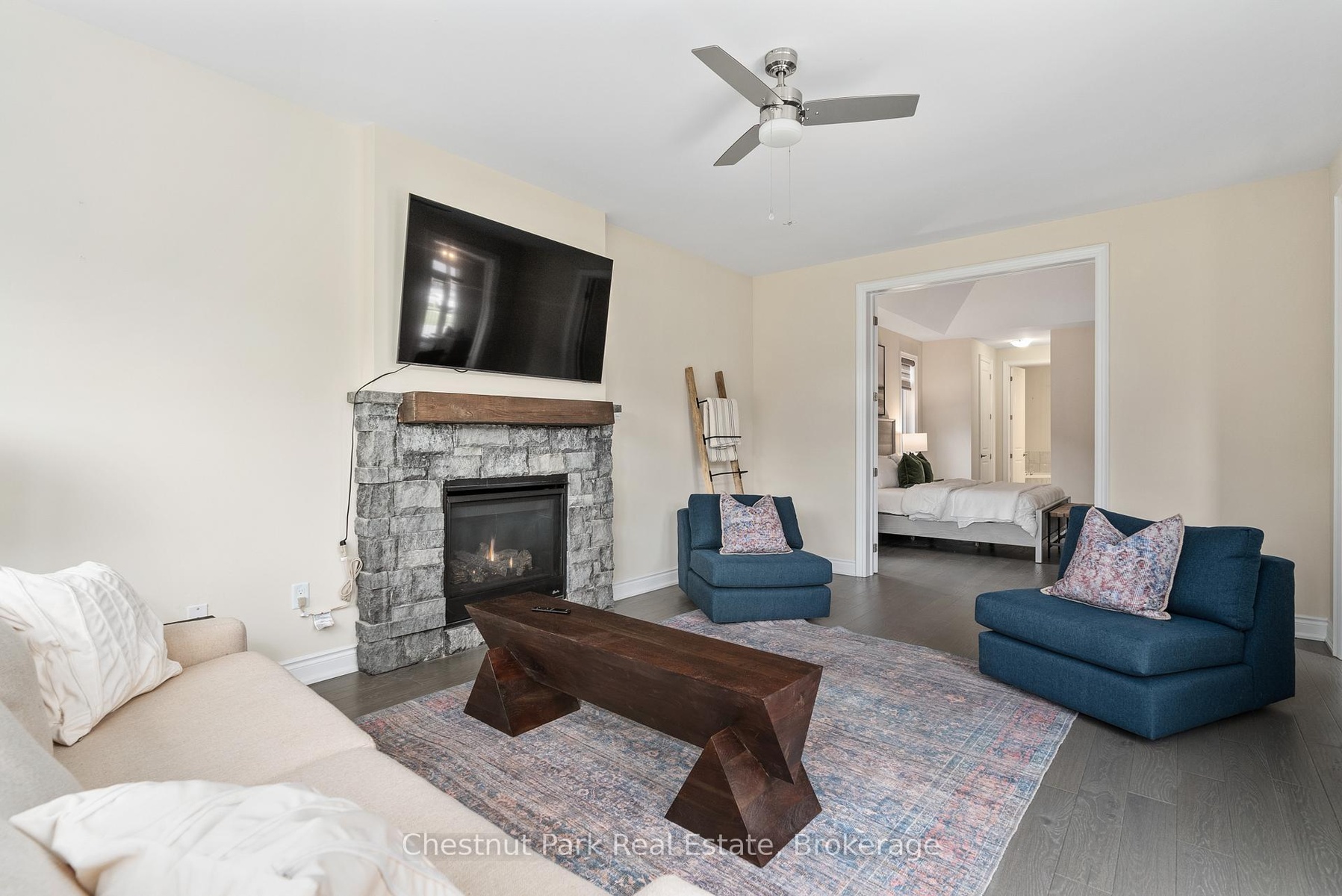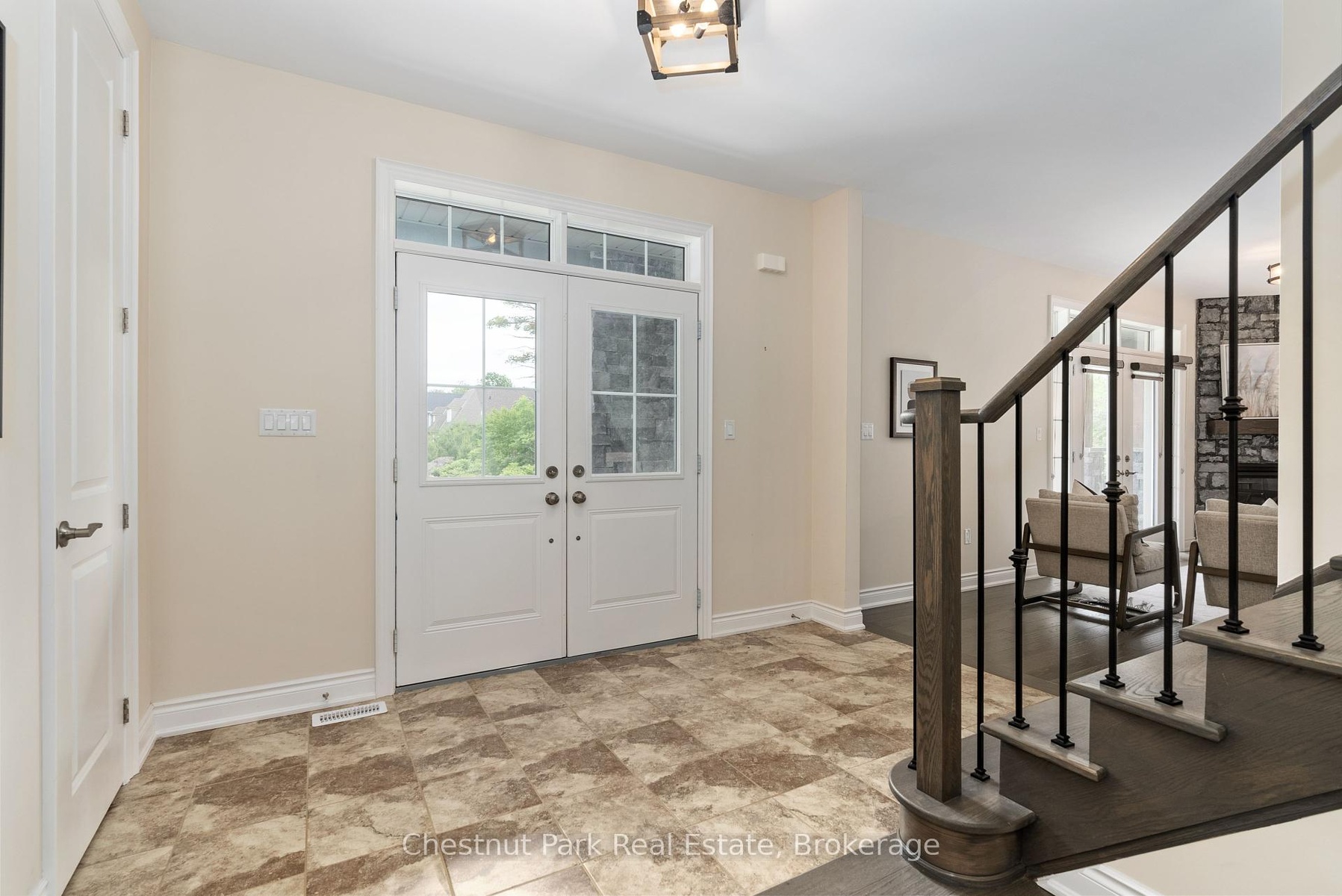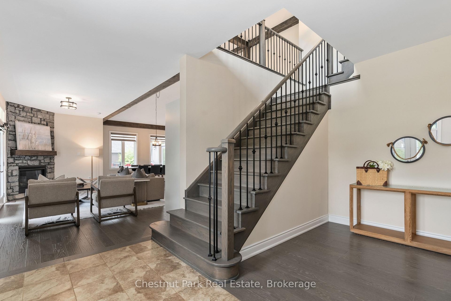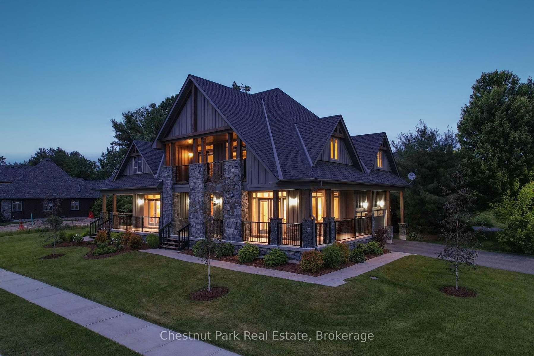 DescriptionWelcome to 3 Baypoint Court, a family-friendly home nestled in the picturesque Muskoka Bay Community on a quiet cul-de-sac.This 3-bedroom, 3-bathroom residence beautifully blends modern elegance and timeless charm. The exterior features high-quality siding, striking stone accents, and energy-efficient windows that ensure comfort and sustainability. The wrap-around covered porch offers a perfect outdoor space to enjoy the serene surroundings. Inside, the home there is 2,784 sq. ft. of living space, highlighted by a gas fireplace in the living room, creating a cozy center piece. The upgraded kitchen features tall, custom cabinets offering ample storage and functionality, complemented by a large island and granite countertops. The full dining space leads both to the exterior covered porch and to the family room centered around the second gas fireplace. Retreat outdoors to the sundeck to relax into the evening. Central to the home, convenience is enhanced with a main floor laundry room with garage access. The primary bedroom on this level, serves as a peaceful retreat, with a 4-piece ensuite bath, perfect for unwinding after a busy day. A second bedroom and 4 PC bath complete the main floor living areas. Throughout the interior, upgraded pre-finished oak hardwood flooring is found in the living and dining areas, while ceramic tiles flow through the remainder. Soaring 9-foot ceilings on the main floor create an airy, spacious atmosphere. Additionally, 8ft. Ceilings are notable in the upstairs loft - overlooking the main living space. Step out from the loft to the balcony overlooking the neighbourhood below. Both the 3rd bedroom and third 4pc bath complete the second level. Below, the full unfinished basement offers potential for future living space. Complete with an attached double car garage, this family-oriented home is ideal for those seeking a vibrant community that emphasizes outdoor fun, relaxation, and a high quality of life.Amenities- Auto Garage Door Remote