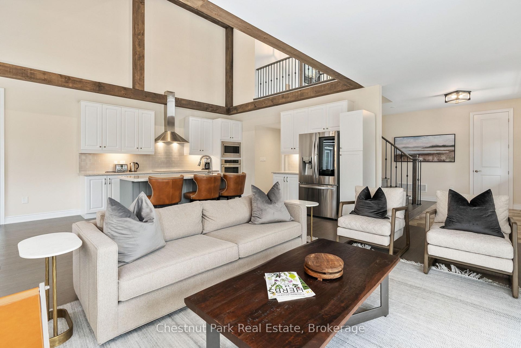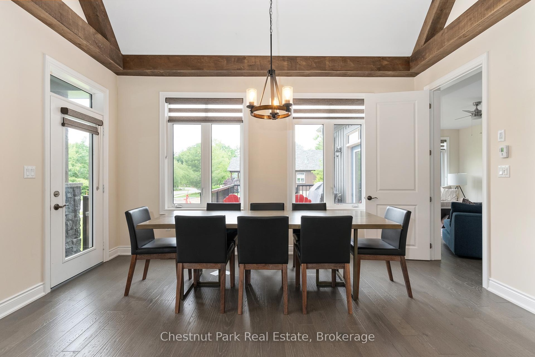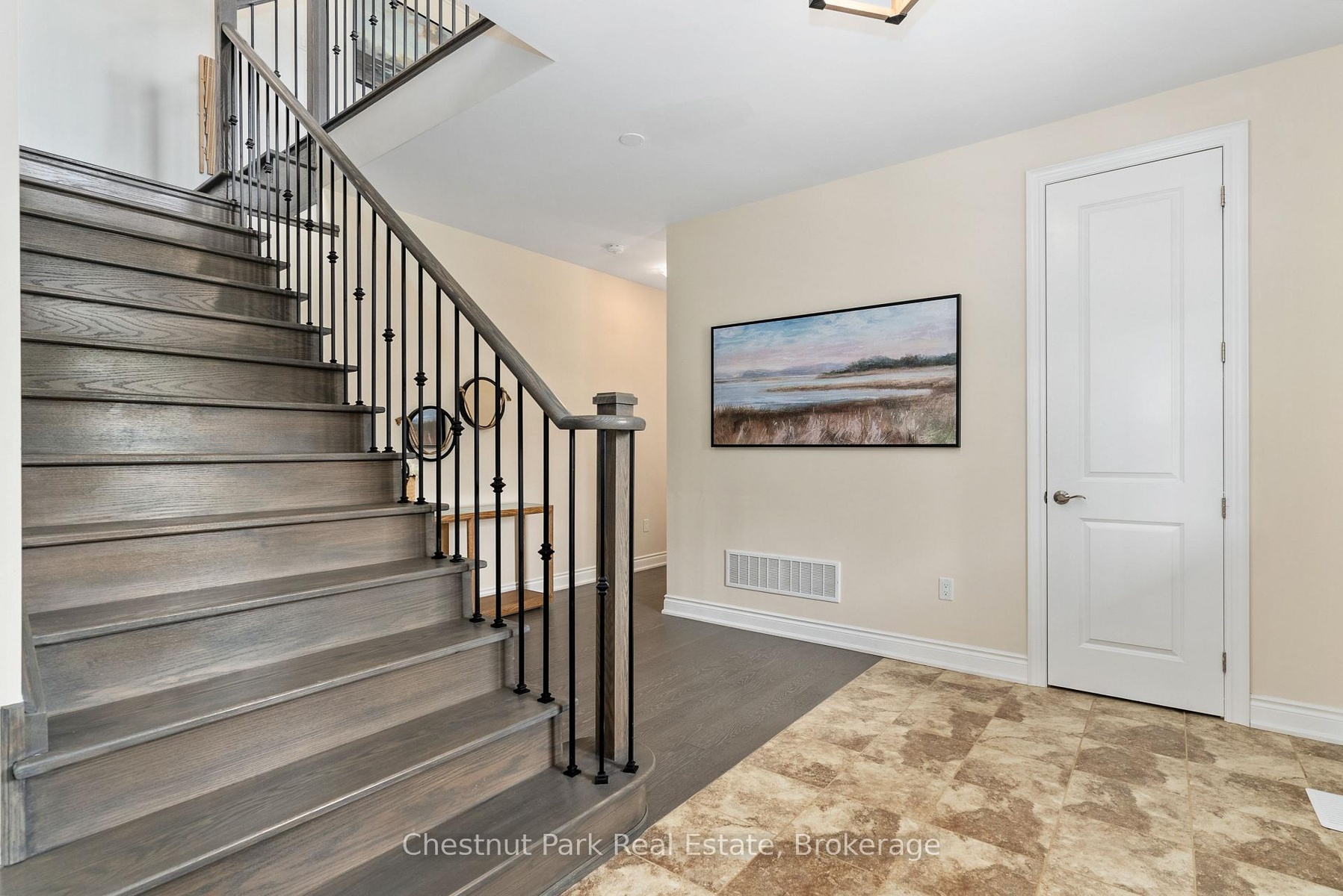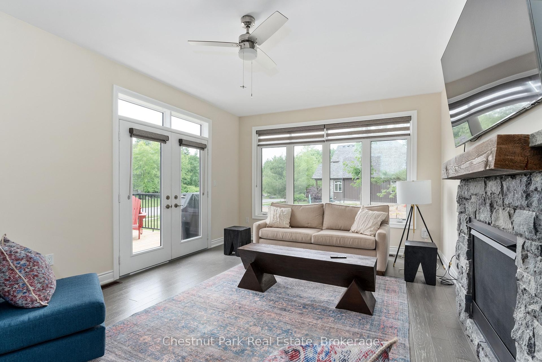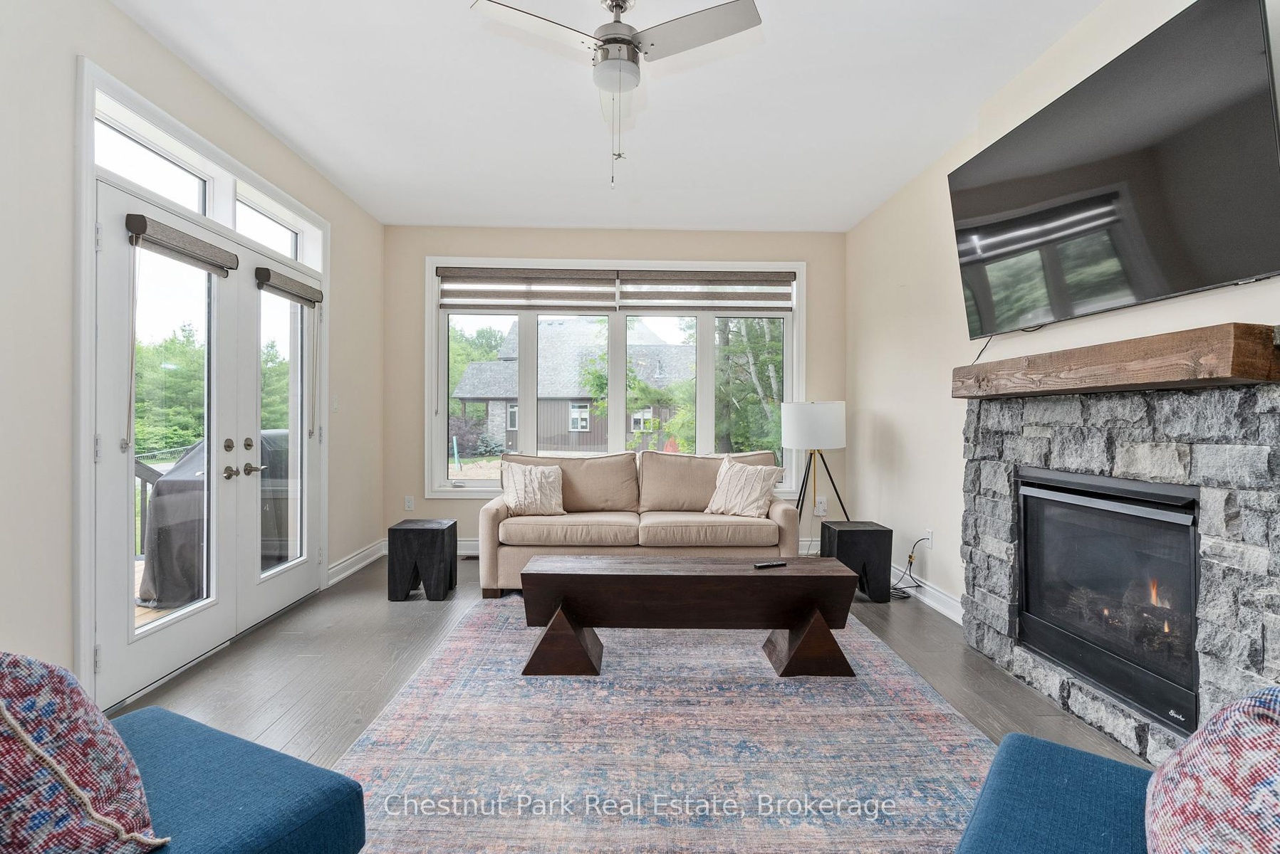 DescriptionWelcome to 3 Baypoint Court, a family-friendly home nestled in the picturesque Muskoka Bay Community on a quiet cul-de-sac.This 3-bedroom, 3-bathroom residence beautifully blends modern elegance and timeless charm. The exterior features high-quality siding, striking stone accents, and energy-efficient windows that ensure comfort and sustainability. The wrap-around covered porch offers a perfect outdoor space to enjoy the serene surroundings. Inside, the home there is 2,784 sq. ft. of living space, highlighted by a gas fireplace in the living room, creating a cozy center piece. The upgraded kitchen features tall, custom cabinets offering ample storage and functionality, complemented by a large island and granite countertops. The full dining space leads both to the exterior covered porch and to the family room centered around the second gas fireplace. Retreat outdoors to the sundeck to relax into the evening. Central to the home, convenience is enhanced with a main floor laundry room with garage access. The primary bedroom on this level, serves as a peaceful retreat, with a 4-piece ensuite bath, perfect for unwinding after a busy day. A second bedroom and 4 PC bath complete the main floor living areas. Throughout the interior, upgraded pre-finished oak hardwood flooring is found in the living and dining areas, while ceramic tiles flow through the remainder. Soaring 9-foot ceilings on the main floor create an airy, spacious atmosphere. Additionally, 8ft. Ceilings are notable in the upstairs loft - overlooking the main living space. Step out from the loft to the balcony overlooking the neighbourhood below. Both the 3rd bedroom and third 4pc bath complete the second level. Below, the full unfinished basement offers potential for future living space. Complete with an attached double car garage, this family-oriented home is ideal for those seeking a vibrant community that emphasizes outdoor fun, relaxation, and a high quality of life.Amenities- Auto Garage Door Remote