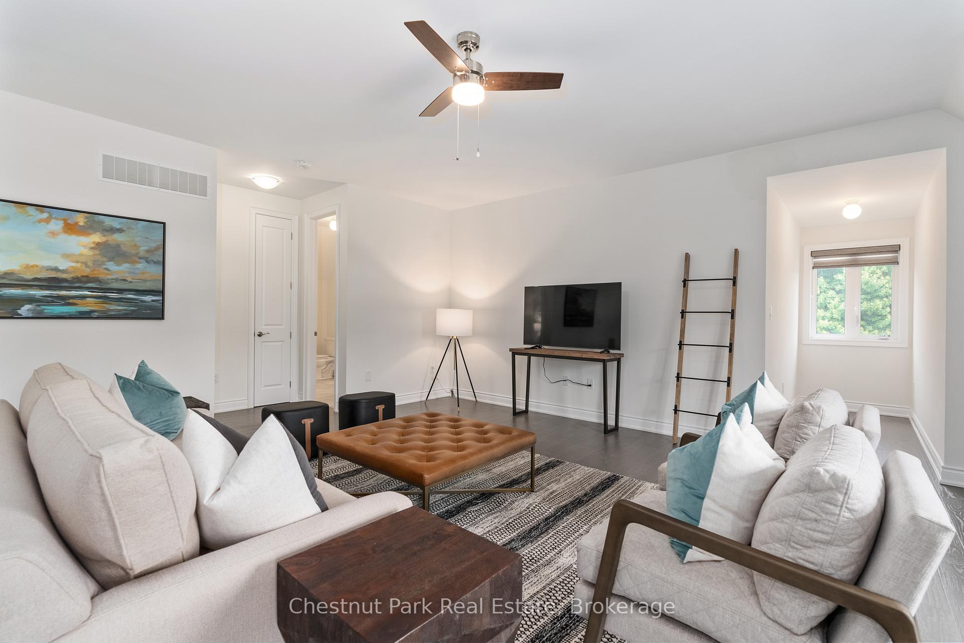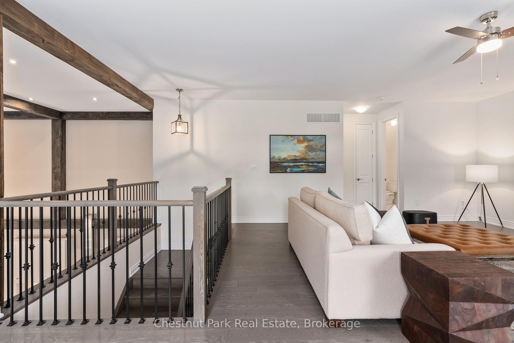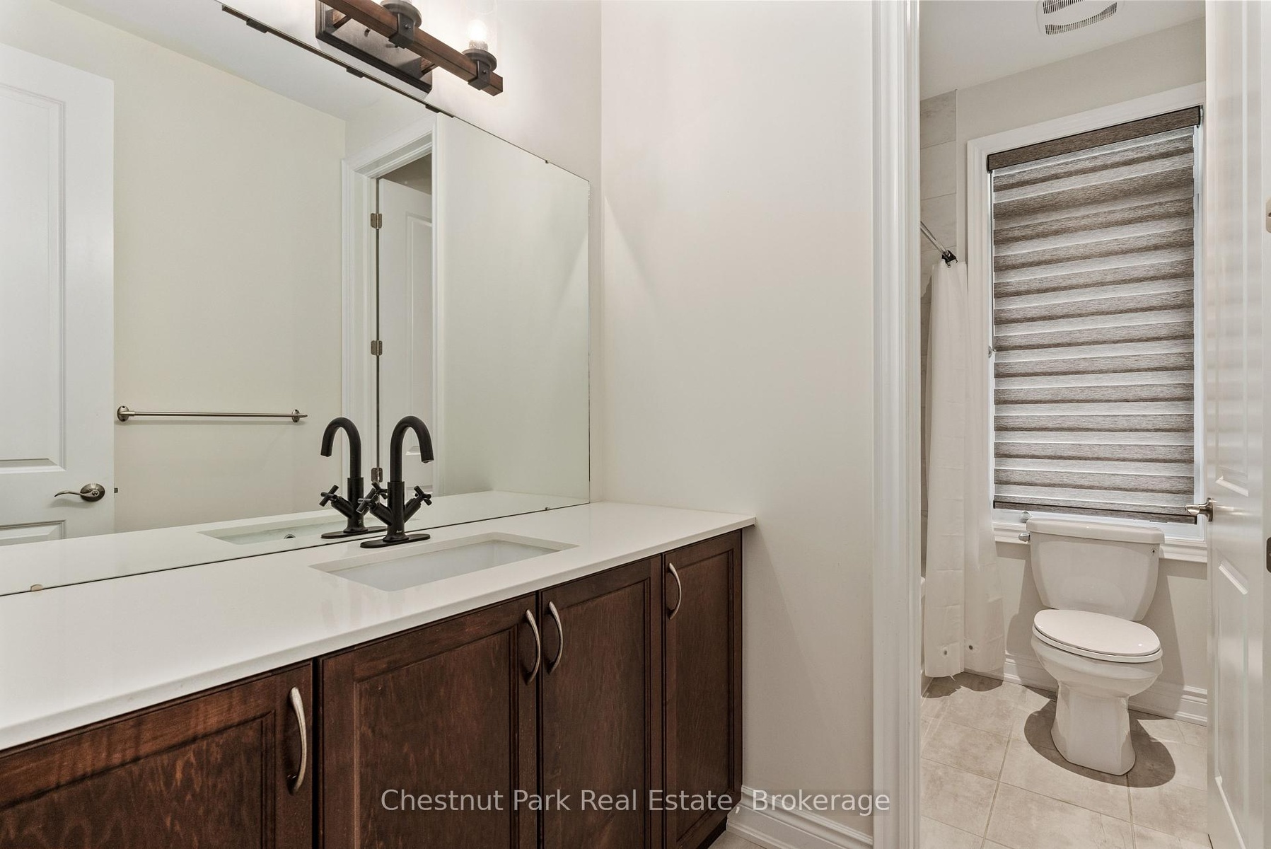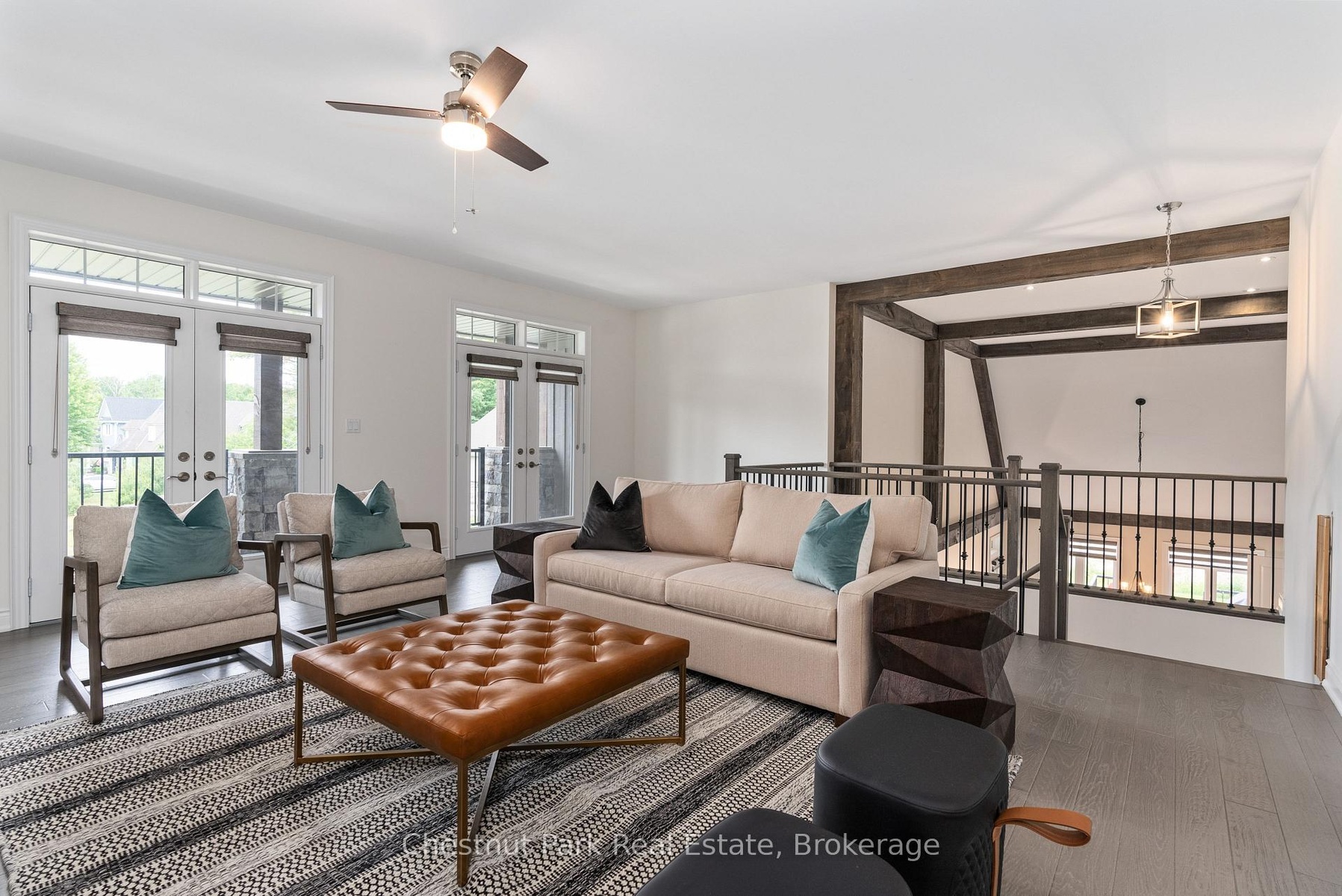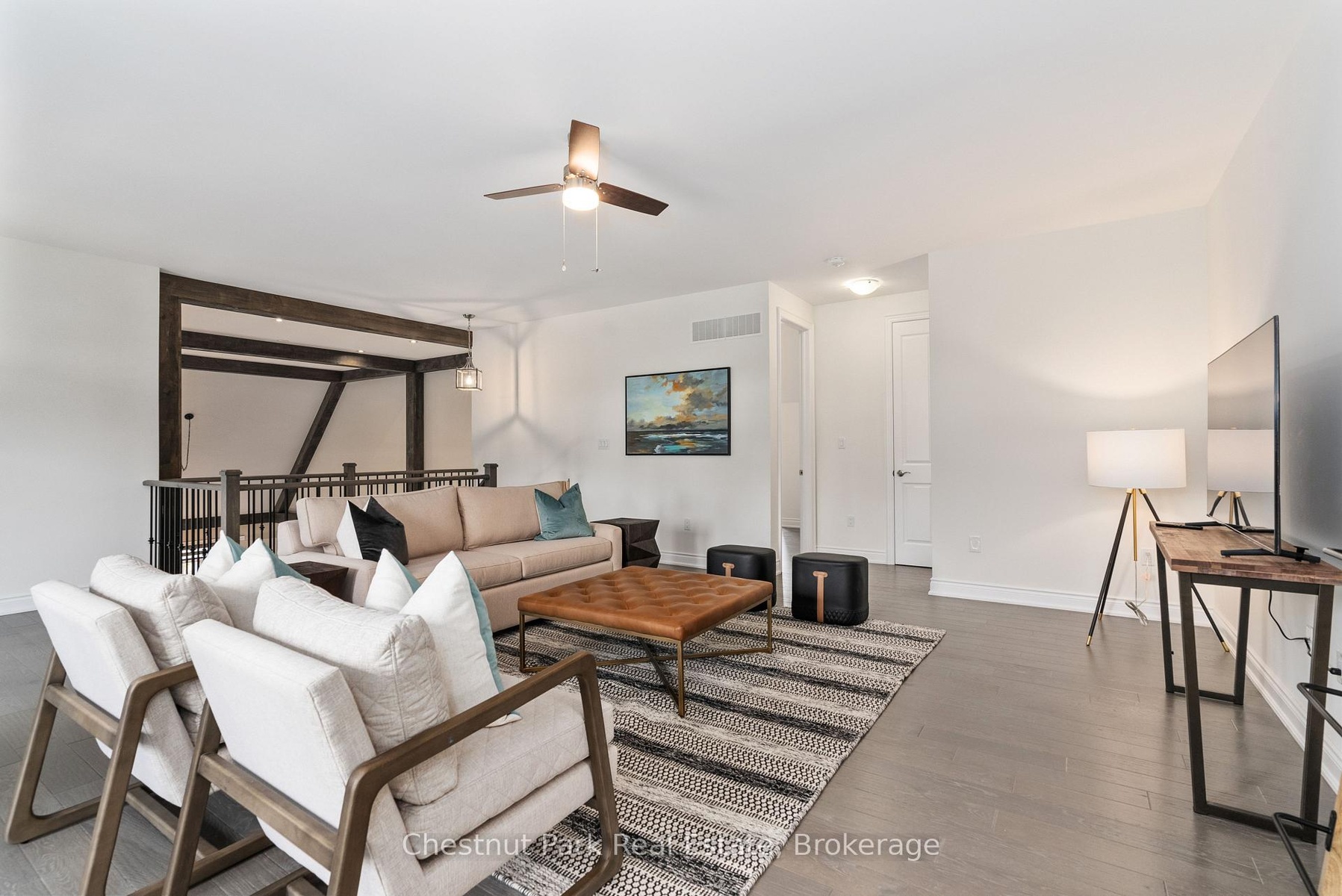 DescriptionWelcome to 3 Baypoint Court, a family-friendly home nestled in the picturesque Muskoka Bay Community on a quiet cul-de-sac.This 3-bedroom, 3-bathroom residence beautifully blends modern elegance and timeless charm. The exterior features high-quality siding, striking stone accents, and energy-efficient windows that ensure comfort and sustainability. The wrap-around covered porch offers a perfect outdoor space to enjoy the serene surroundings. Inside, the home there is 2,784 sq. ft. of living space, highlighted by a gas fireplace in the living room, creating a cozy center piece. The upgraded kitchen features tall, custom cabinets offering ample storage and functionality, complemented by a large island and granite countertops. The full dining space leads both to the exterior covered porch and to the family room centered around the second gas fireplace. Retreat outdoors to the sundeck to relax into the evening. Central to the home, convenience is enhanced with a main floor laundry room with garage access. The primary bedroom on this level, serves as a peaceful retreat, with a 4-piece ensuite bath, perfect for unwinding after a busy day. A second bedroom and 4 PC bath complete the main floor living areas. Throughout the interior, upgraded pre-finished oak hardwood flooring is found in the living and dining areas, while ceramic tiles flow through the remainder. Soaring 9-foot ceilings on the main floor create an airy, spacious atmosphere. Additionally, 8ft. Ceilings are notable in the upstairs loft - overlooking the main living space. Step out from the loft to the balcony overlooking the neighbourhood below. Both the 3rd bedroom and third 4pc bath complete the second level. Below, the full unfinished basement offers potential for future living space. Complete with an attached double car garage, this family-oriented home is ideal for those seeking a vibrant community that emphasizes outdoor fun, relaxation, and a high quality of life.Amenities- Auto Garage Door Remote