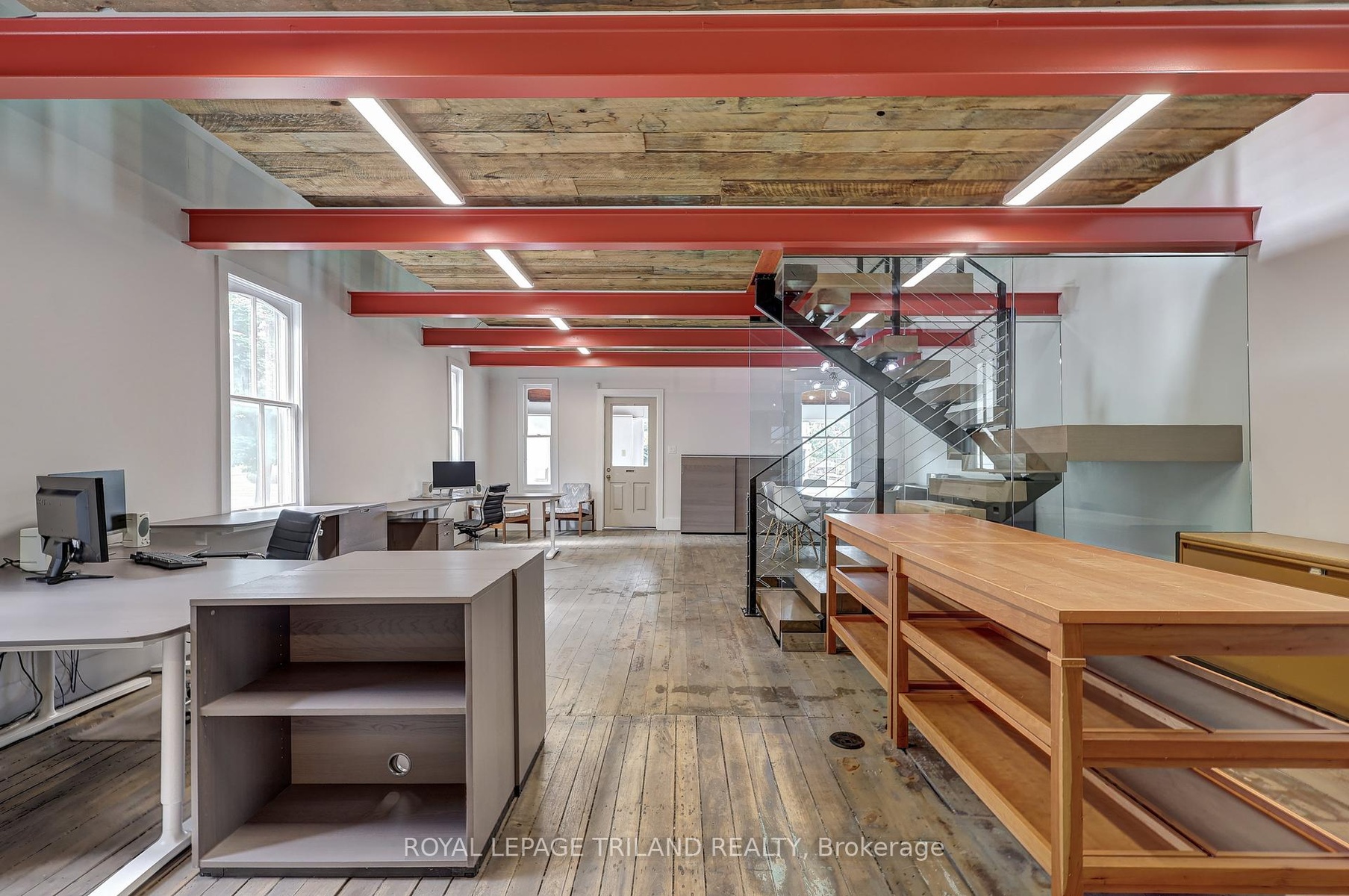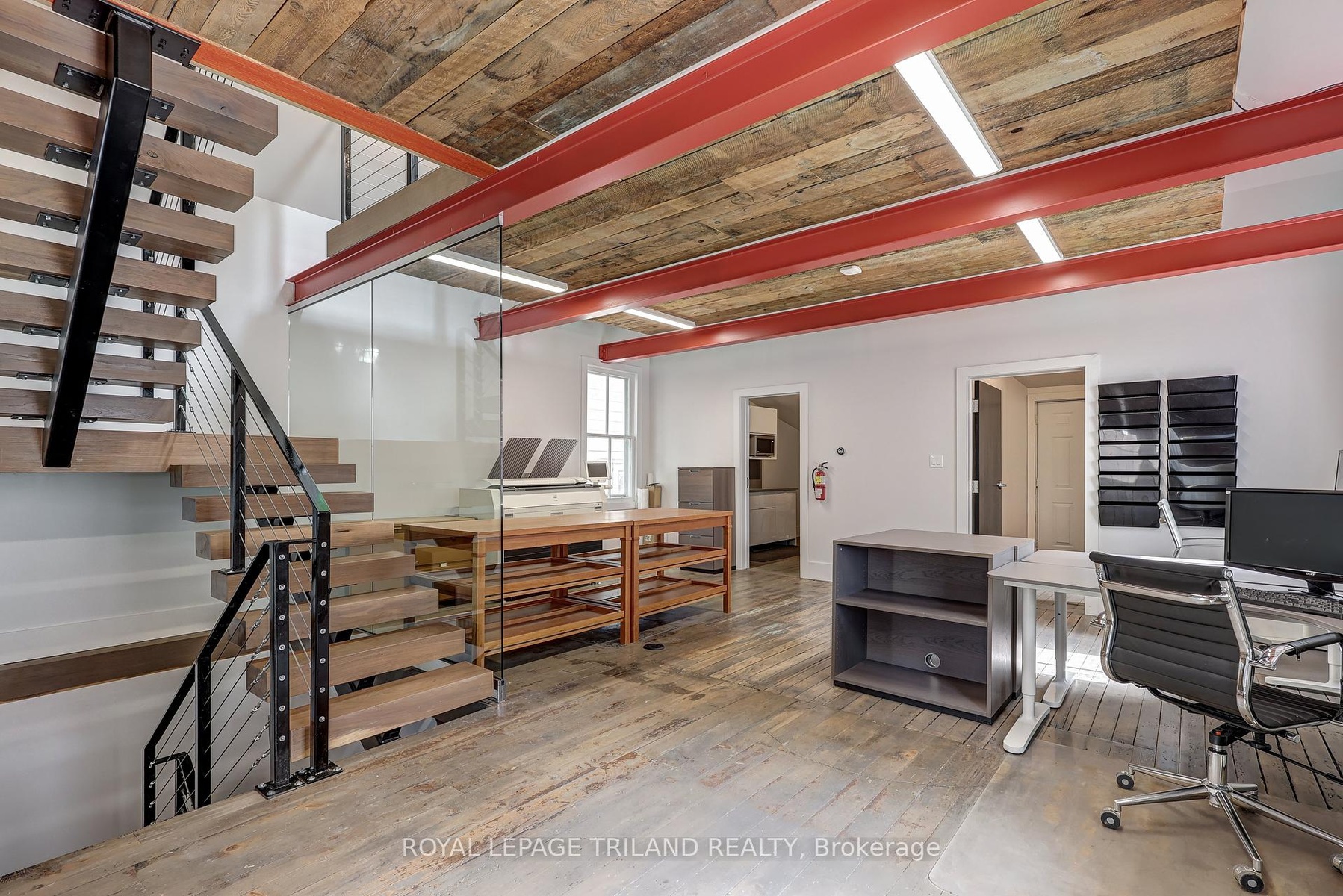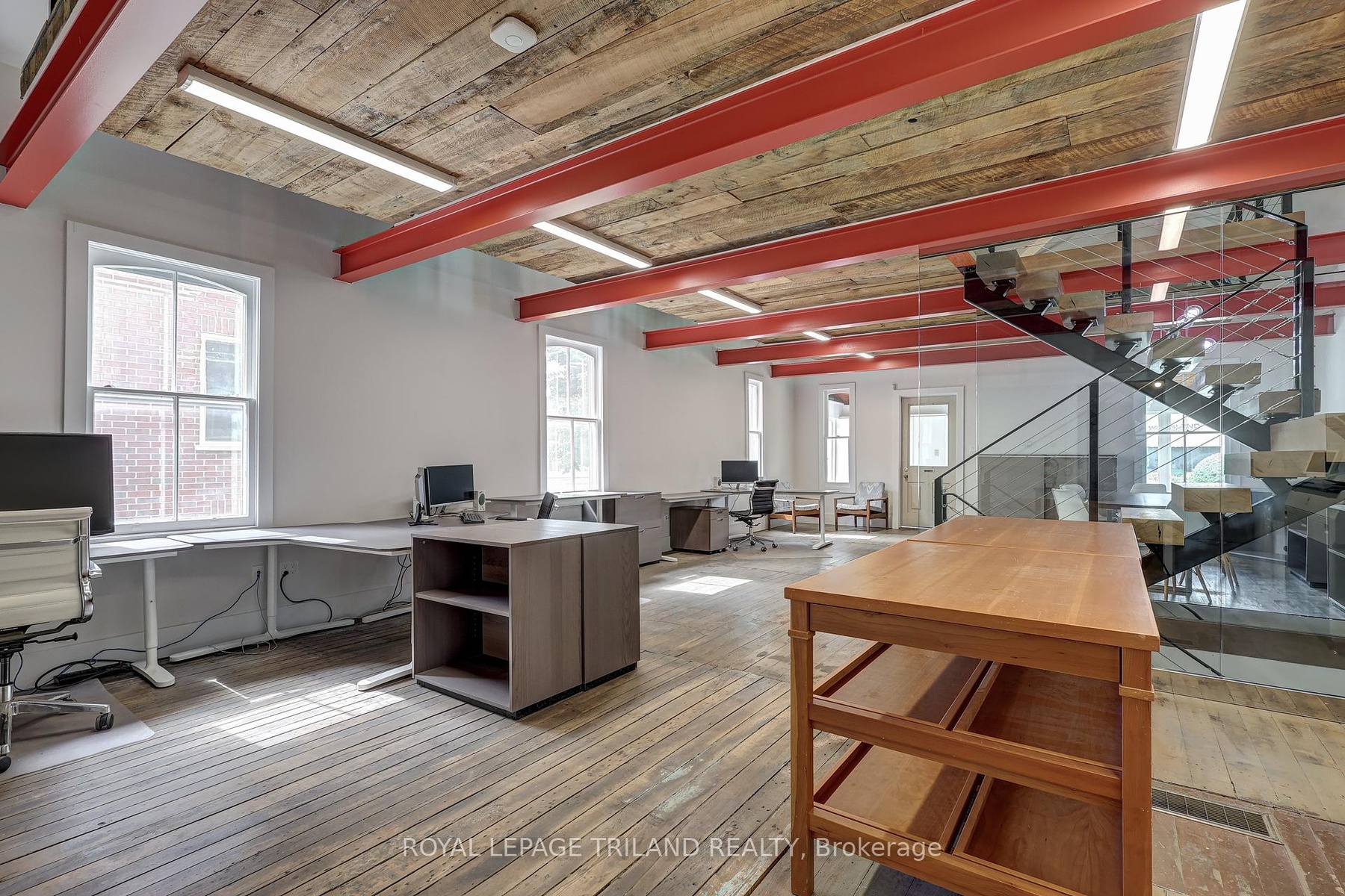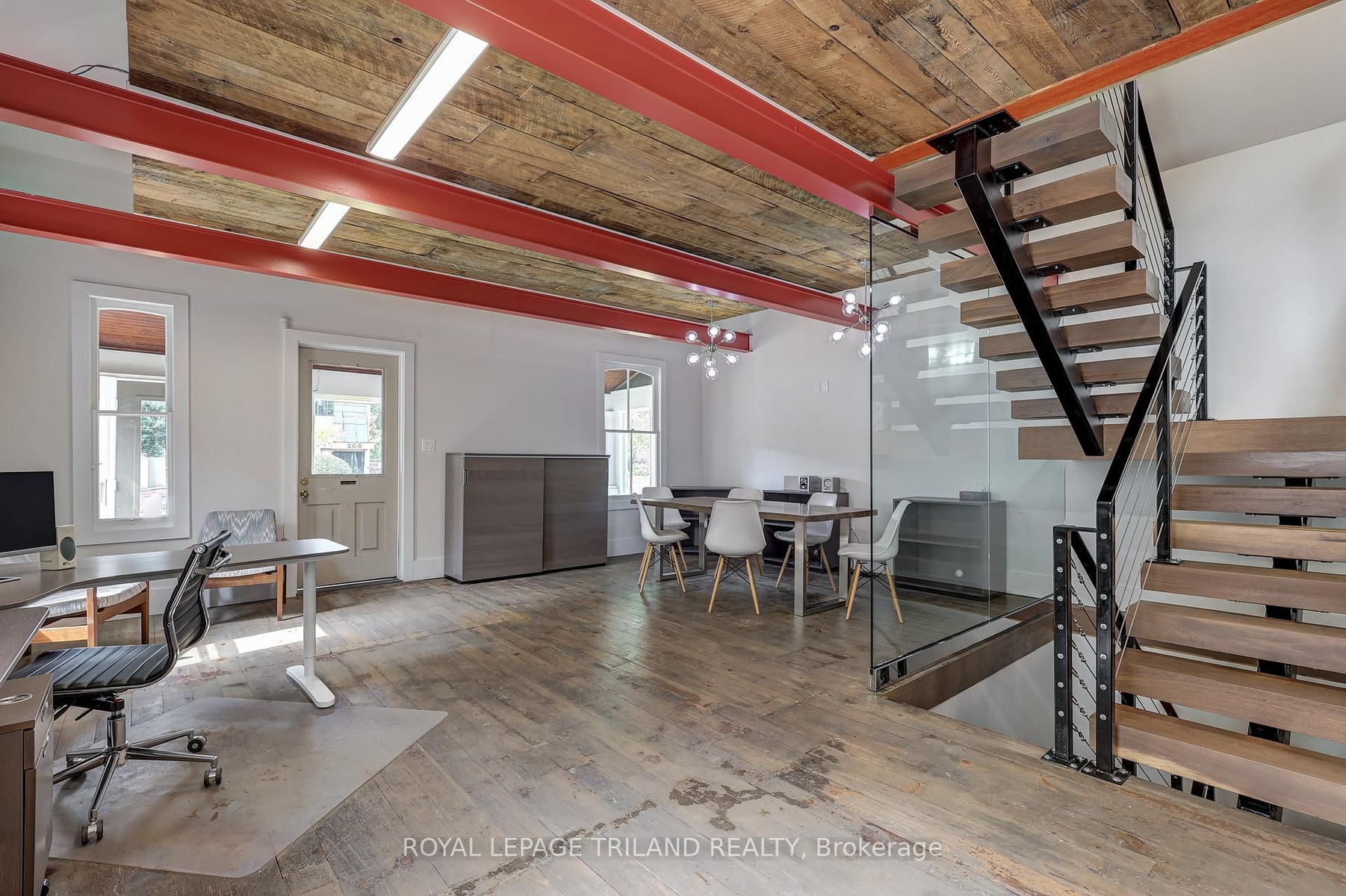 DescriptionSeize the opportunity to convert this exceptional office space into a stylish modern loft residence! Ideally situated just two blocks east of Richmond St., this prime location on Oxford St. offers high visibility with over 30,000 cars passing by daily. Zoned OC4 and R3-1, allowing for versatile uses, including a potential work/live space. Fully renovated with an open-concept layout and contemporary finishes. Features include a custom floating staircase with a glass wall, six exposed red steel I-beams, and striking rustic hardwood floors. Main floor has a kitchen and bathroom. Convenient access with private driveway off Oxford St. and additional access via lane off Colborne. Ample parking on site with over 6 spots in rear and more parking in laneway if needed. This unique space is perfect for creating a lasting impression and offers the flexibility to be an excellent residence or a dynamic work/live environment.Amenities- Landscaped