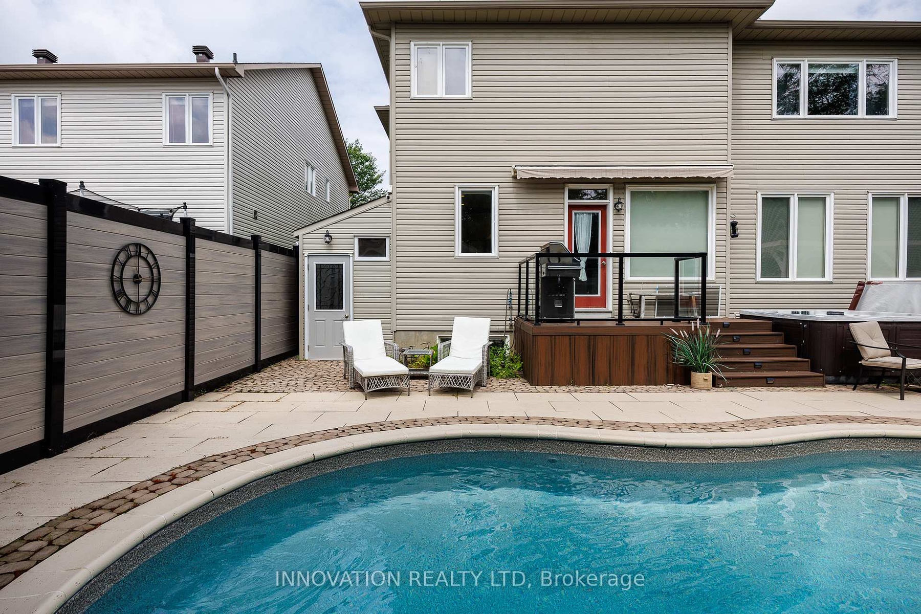 DescriptionDiscover the epitome of luxury living with this exquisite former Holitzner model home, nestled on a premium lot in a fabulous neighborhood. This remarkable property is conveniently located near essential amenities like the 417, Tanger Outlets, Trans Canada Trail, Kanata Centrum, and the Canadian Tire Centre, offering an unparalleled living experience. The true highlight is the incredible backyard oasis designed for both relaxation and entertainment, featuring a saltwater heated pool with a fountain, a hot tub, a pool house/changing room, and multiple relaxing seating areas. Inside, the home offers approximately 4,700 square feet of thoughtfully designed living space, including 5 bedrooms, 2 ensuite bathrooms, a Jack and Jill bathroom, 3 walk-in closets, a fully finished basement, main floor laundry room, and a main floor office space perfect for those who work from home or run a small business. At the heart of the home is a luxurious chef's kitchen complete with elegant finishes and a walk-in pantry, perfect for preparing family meals or hosting dinner parties. Embrace the opportunity to make this extraordinary property your own and create a lifetime of cherished moments. 24 hour irrevocable on all offers.Amenities- Auto Garage Door Remote