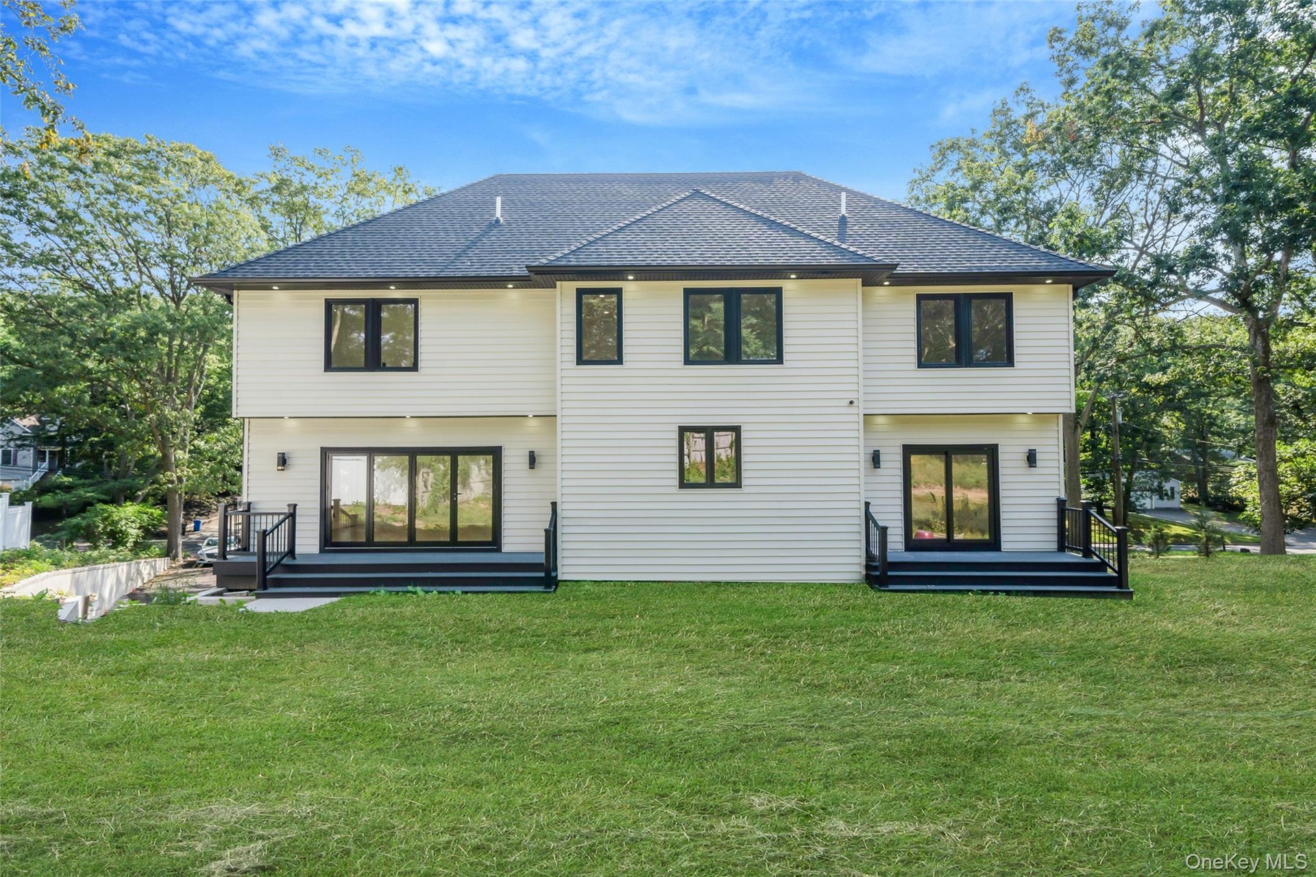 Discover refined living in this stunning new 3,800 sq. ft. Center Hall Colonial, set on nearly an acre in the desirable Smithtown School District. This home blends timeless design with modern luxury—featuring 6-inch hardwood floors, double spray foam insulation, and exceptional craftsmanship throughout. The chef’s kitchen offers an 8-foot island, custom cabinetry, and top-of-the-line Kohler fixtures, opening to spacious living, dining, and den areas. Expansive 4-panel folding doors lead to two rear decks for seamless indoor-outdoor living. Upstairs, enjoy three large bedrooms a junior suite and a luxurious primary suite. Additional highlights include a finished basement, two-car garage, in-ground sprinklers, paver driveway, and meticulous landscaping. A perfect balance of elegance, efficiency, and comfort awaits at 628 Meadow Road.