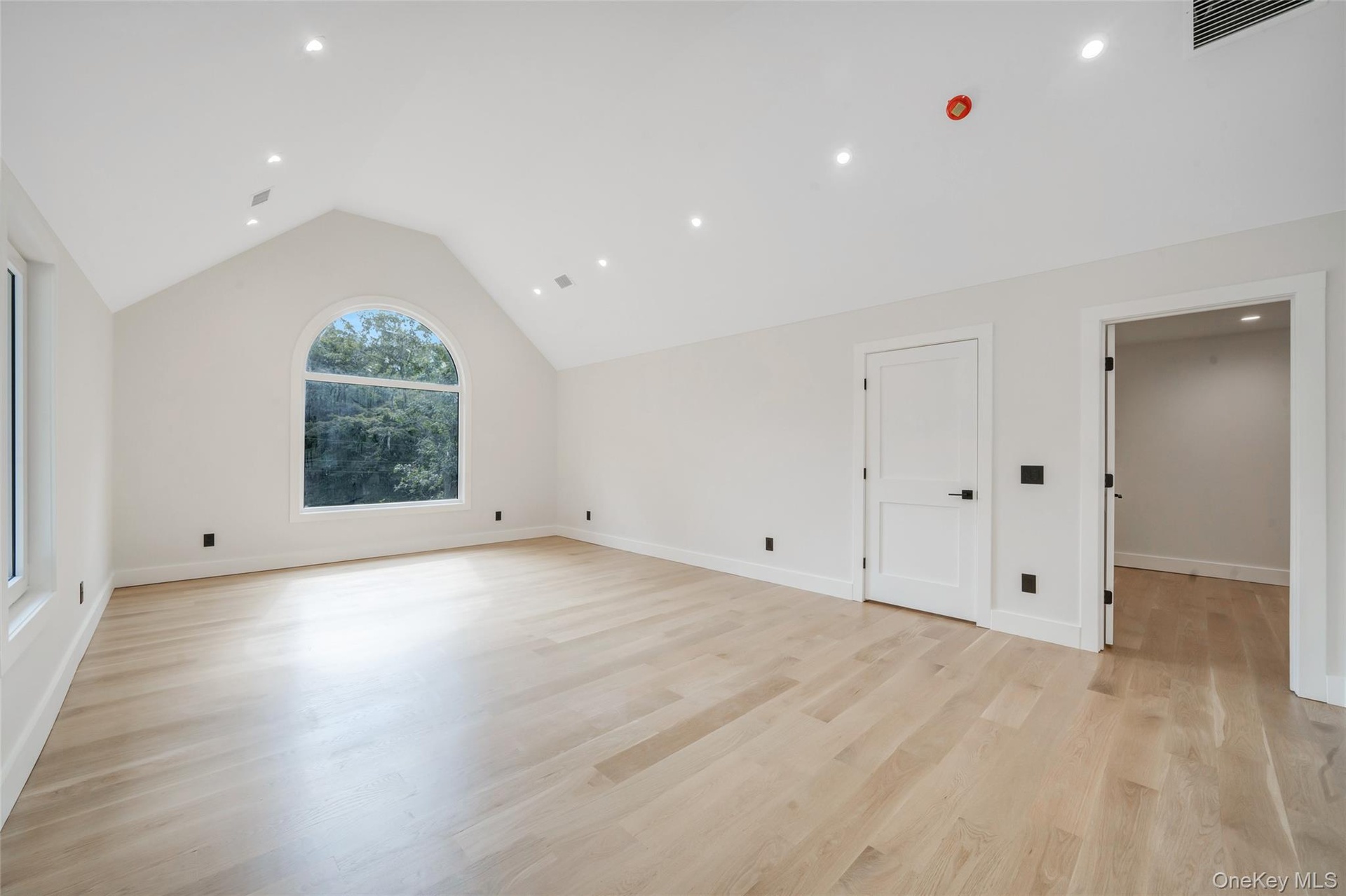- Additional living space with lofted ceiling, light wood-style flooring, and recessed lighting