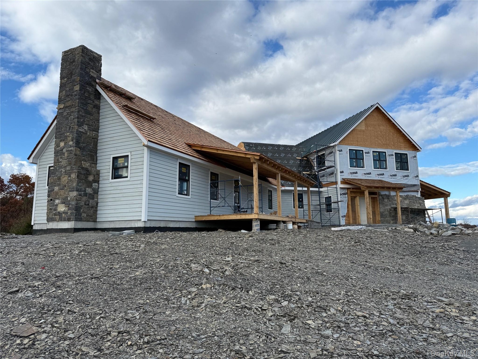Perched atop a secluded hill in the bucolic town of Ancram, this European-inspired farmhouse is currently under construction and set for completion later this year. Blending timeless charm with modern luxury, the home promises sweeping panoramic views of the contiguous 160 acre working farm, rolling fields and distant mountain ranges. The house is framed, nearly completed on the outside, and ready for a buyer to customize the finishing touches inside. Accessed by a long, winding private drive through open meadows and agricultural fields, the property spans 16 private acres—a rare offering of natural beauty, tranquility, and understated elegance. Thoughtfully designed to reflect the warmth and character of Old World craftsmanship, while providing modern amenities such as radiant heat floors, high-end appliances, Marvin windows, and metal and cedar shake roof. The floor plan features a dramatic 50' x 20' great room with soaring 18-foot ceilings and is anchored by a fireplace, four bedrooms, and three and one half baths. This expansive space flows seamlessly into covered porches and stone patios on both sides, ideal for entertaining or soaking in the surrounding serenity. Outdoors, the landscape invites both relaxation and recreation. A beautifully integrated heated, in-ground saline 70’ x 17’ pool will be the centerpiece of warm-weather enjoyment, complete with a stylish cabana featuring an outdoor shower—perfect for refreshing after a swim or hosting summer gatherings. Curated stone patios and rolling hills further enhance the experience, offering multiple vantage points to take in the breathtaking surroundings. Ideally located between Pine Plains, Millerton, Hudson, and Rhinebeck—and just two hours from NYC. This is a unique opportunity to shape your dream estate in the heart of the Hudson Valley.