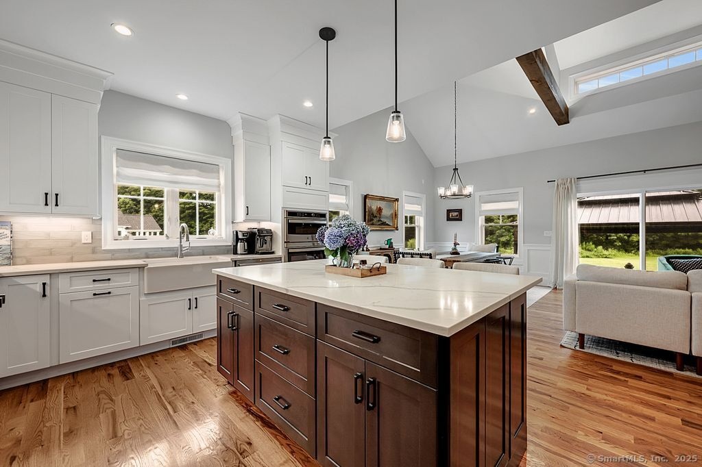 DescriptionExperience elevated New England living at 6 Strong Field Road, an exceptional 2024 custom-built Cape Cod residence set on a private, manicured 1-acre lot in one of Woodbury's most desirable enclaves. Designed for discerning buyers, this 4-bedroom, 2.5-bath masterpiece blends architectural sophistication with everyday comfort. Inside, you're welcomed by an airy open-concept floor plan, enhanced by dramatic vaulted ceilings, expansive windows, and finely crafted wide-plank hardwood flooring throughout. At the heart of the home is a designer gourmet kitchen-a showcase of form and function-featuring premium quartz countertops, custom cabinetry, a professional-grade appliance suite, and an oversized island perfect for hosting or gathering. The adjoining great room offers a warm, elegant atmosphere anchored by serene views and refined finishes. The first-floor primary suite is a luxurious retreat with a spa-style bath, dual vanities, walk-in glass shower, and a generous walk-in closet. A main level office is idle for work-from-home living. Upstairs, three additional bedrooms and a full bath accompany a spacious loft, perfect for a media lounge or reading retreat. Tucked at the end of a quiet cul-de-sac, just minutes from historic Woodbury's shops, dining, nature preserves, and top-rated schools, this home is a rare opportunity to enjoy elevated country living with modern convenience. Unmatched style, craftsmanship, and comfort-schedule your private showing at 6 Strong FieldAmenities- Central Air