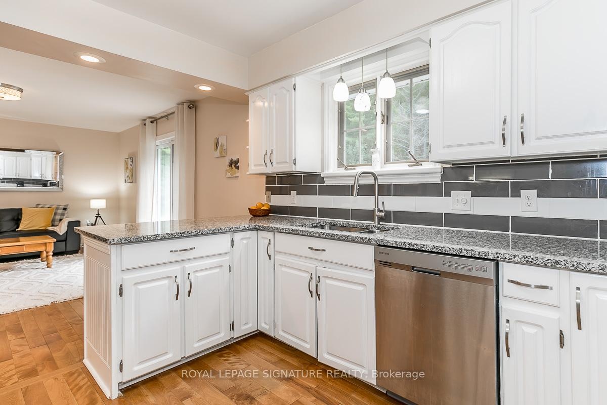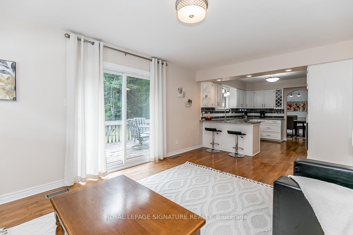 Description3+ ACRE FAMILY HOME, 10 minutes North of Orillia! Welcome home at the gateway to Muskoka. Sitting on over 3 acres of land, this property offers a private retreat in the desirable Severn Bridge area. Enjoy breathtaking sunsets from the covered front porch or host gatherings on the walk-out kitchen deck. The kitchen is a chef's dream, featuring stainless steel appliances, 2 ovens, a breakfast bar, and an open-concept design flowing into the living space, updated with a shiplap feature wall and a new gas fireplace. The generous master bedroom has a renovated ensuite and plush carpeting throughout. The dining room, perfect for entertaining, connects to the living room through elegant French doors. A versatile bonus loft can serve as an additional bedroom, office, or recreation area. The expansive basement is ideal for an in-law suite, featuring a kitchenette, living/dining area, and a bedroom. This home is perfect for families or those seeking privacy, conveniently located near local schools and just 1.5 hours from Toronto. Dont miss this incredible opportunity!Virtual Tour: https://youtu.be/JcUwhe187xYAmenities- Other