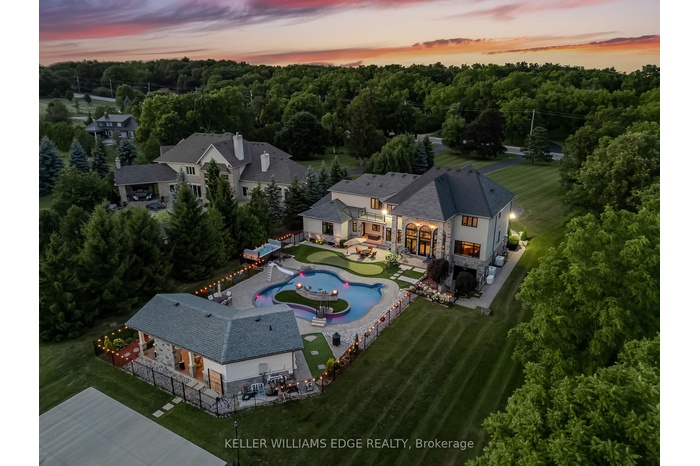 A Rare Private Estate on 1.95 Acres - Luxury That Cannot Be Recreated | Custom-built by Jay Robinson | Spanning nearly 7,500 sq. ft.| This estate offers a level of craftsmanship, privacy & scale increasingly impossible to duplicate at today's construction costs. Set against conservation lands & scenic horse farms, the property delivers uninterrupted countryside views just minutes from premier amenities. Designed for both grand entertaining & quiet retreat, the home features 18-foot vaulted ceilings, a dramatic limestone wall, custom millwork, & integrated Sony whole-home audio. The chef's kitchen is appointed with Wolf, Liebherr, Marvel, Miele & Fisher & Paykel appliances. The primary suite is a true retreat with dual walk-in closets, spa-inspired ensuite & private balcony overlooking protected landscape. Engineered for year-round confidence & efficiency, the home includes dual furnaces & A/C systems, triple sump pump with battery backup, 20KW Generac generator, & 200-amp service. Oversized 3-car garage with dual EV chargers. Outdoors, experience resort-style living with a lazy river pool, waterfall, swim spa, cabana with 5-piece bath, built-in BBQ, mini putt course & expansive recreation space. Night-lit landscaping enhances the estate ambiance. The separate walk-up lower level is prepped with kitchen & bath rough-ins, ideal for multigenerational living, guest retreat or future customization. Elevator potential. Complete privacy. Future-ready design. A lifestyle property built for long-term value.