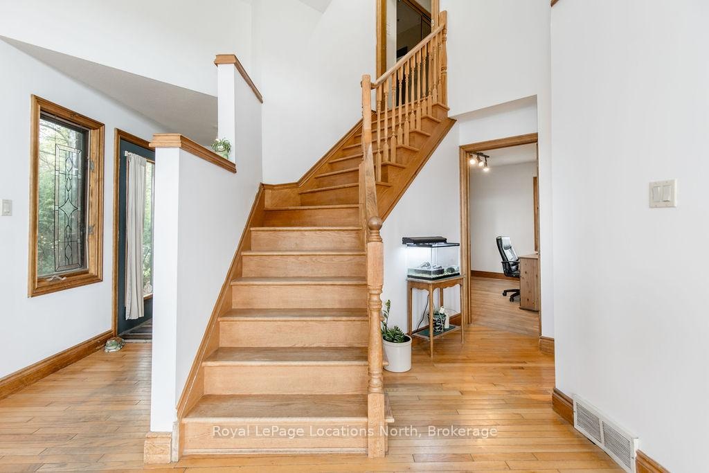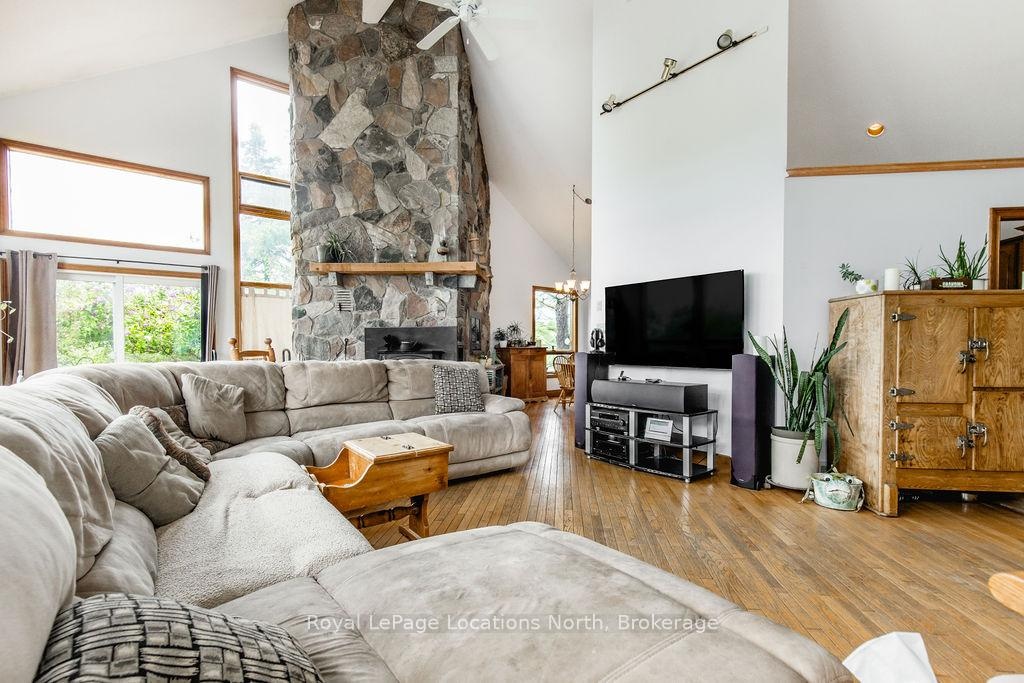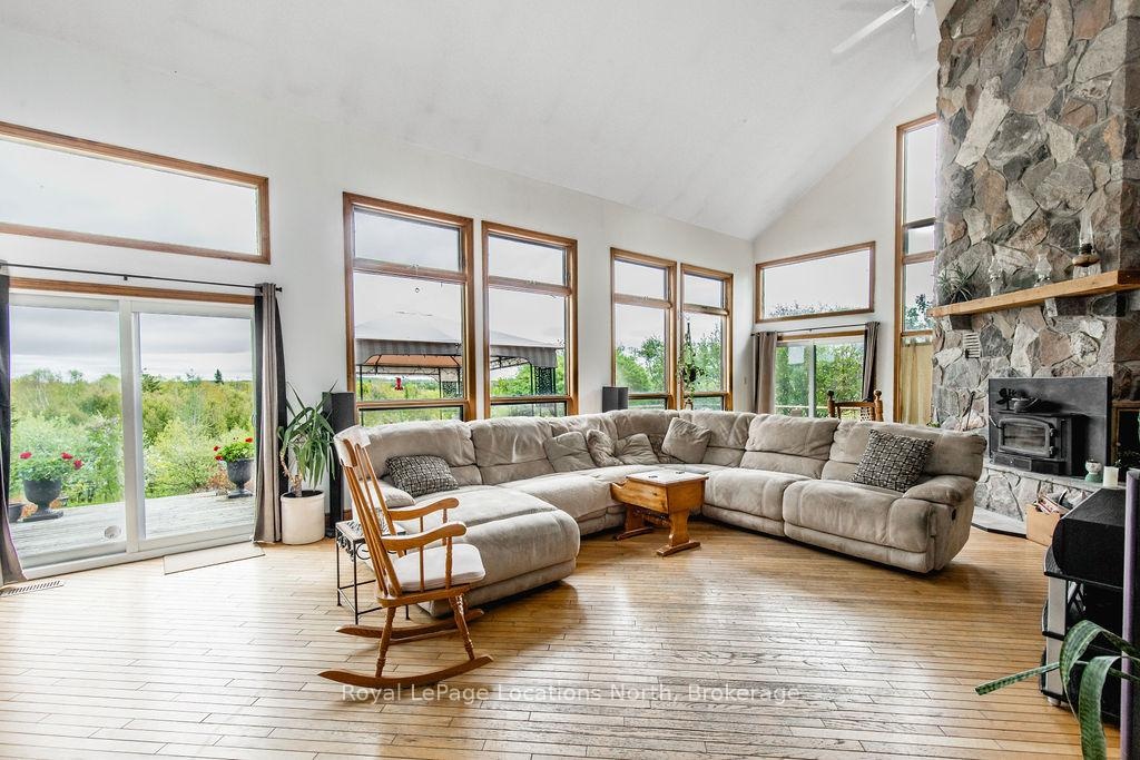 DescriptionRare FIND- Prestigious Estate Living on Nearly 10 Acres in Garafraxa Woods. Welcome to your private country retreat in the highly sought-after Garafraxa Woods estate community-just 5 minutes from the heart of Orangeville. Set on an impressive 9.23-acre lot, this custom home is nestled down a long, winding driveway and perched atop a hill, offering breathtaking views of the rolling countryside.Surrounded by mature trees and scenic trails, the property is perfect for four-wheeling, hiking, snowshoeing, and enjoying year-round outdoor adventures. The stone and cedar exterior blends beautifully with the natural surroundings, while the interior is filled with warmth and character.Inside, you'll find 3+1 bedrooms, 4 bathrooms, and an inviting open-concept design featuring cathedral ceilings, floor-to-ceiling windows, and a large 3-sided wood-burning stone fireplace as the heart of the home. Rich wood floors flow throughout, creating a cozy yet upscale feel.The spacious primary suite is located on the private third floor, complete with an ensuite bathroom, while two additional bedrooms and a 4-piece bath are conveniently located on the main level. The finished lower level offers a walk-up, a separate bedroom, bathroom, kitchenette, rec room with pool table and sauna - making it ideal for extended family, guests, or in-law potential. There's also a large pool table room and plenty of storage. An attached 2-car garage provides access to both the basement and the laundry/mudroom. Walkout decks overlook the expansive property, perfect for relaxing or entertaining. The home also benefits from a newly installed gas line.This is more than a home, it's a lifestyle. If you're looking for space, privacy, and a connection to nature without sacrificing proximity to town, this exceptional estate delivers it all. Opportunities like this in Garafraxa Woods are rare - don't miss your chance.Virtual Tour: https://youtu.be/W4FbDCEFdx8