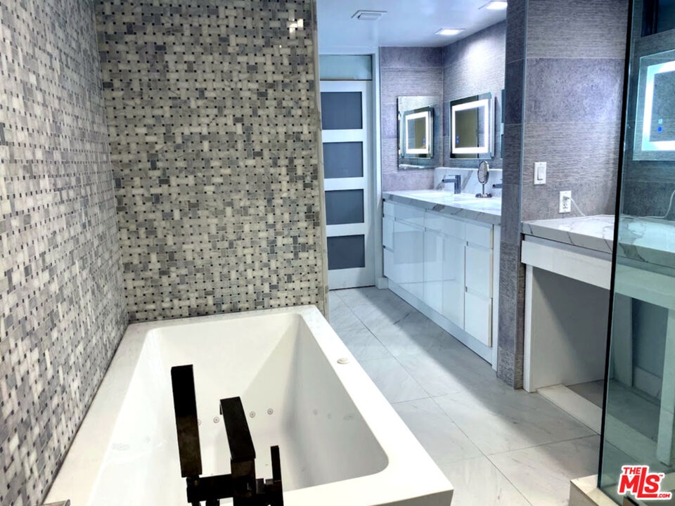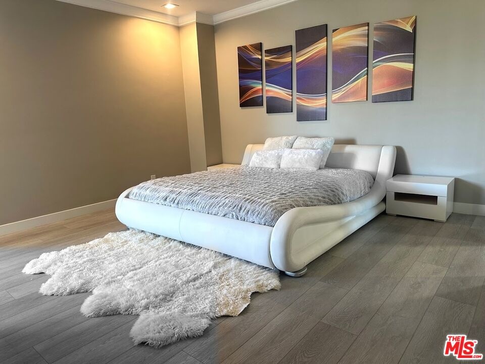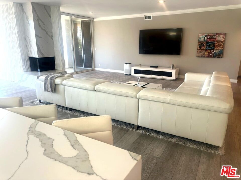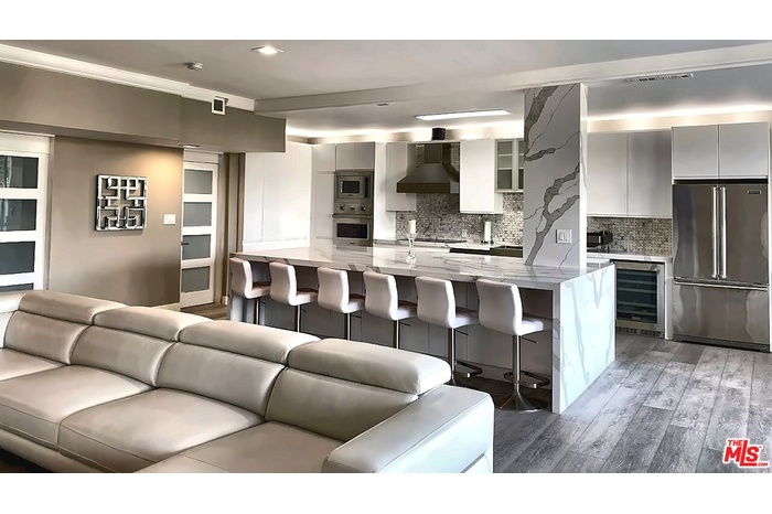 Discover urban luxury in this FULLY FURNISHED contemporary oasis, showcasing a striking blend of modern design and chic finishes. Perfectly located near Westwood Village and Century City, this condo has been remodeled from top to bottom. It is currently the largest 1 bedroom highrise condo for lease in the area boasting nearly 2,000 square feet with the city view balcony. The open concept living space is ideal for both everyday comfort and grand entertaining, with high ceilings that amplify its airy ambiance. The kitchen is a showstopper, featuring Viking appliances, quartz countertops, super high gloss white cabinets, and an island that comfortably seats six. A spacious L shaped white leather couch anchors the living area, perfectly positioned to enjoy the 85 inch Smart Sony TV while taking in the city views. Floor to ceiling sliding glass doors open to a large balcony illuminated by sleek LED lighting, offering a dramatic evening backdrop. The primary bedroom includes a generous walk in closet, and there is ample storage throughout, including hallway closets, a well appointed laundry room with cabinetry, and additional closets in the powder room. A dedicated office area occupies a bright, open corner of the living space, offering its own city view and a vantage point to see the living room, kitchen, and TV - a perfect spot for both work and leisure. This full service building provides 24/7/365 valet parking and security. If you're seeking luxury, location, and modern style in a full service high rise, this is your condo. Schedule a private showing today to experience it for yourself.