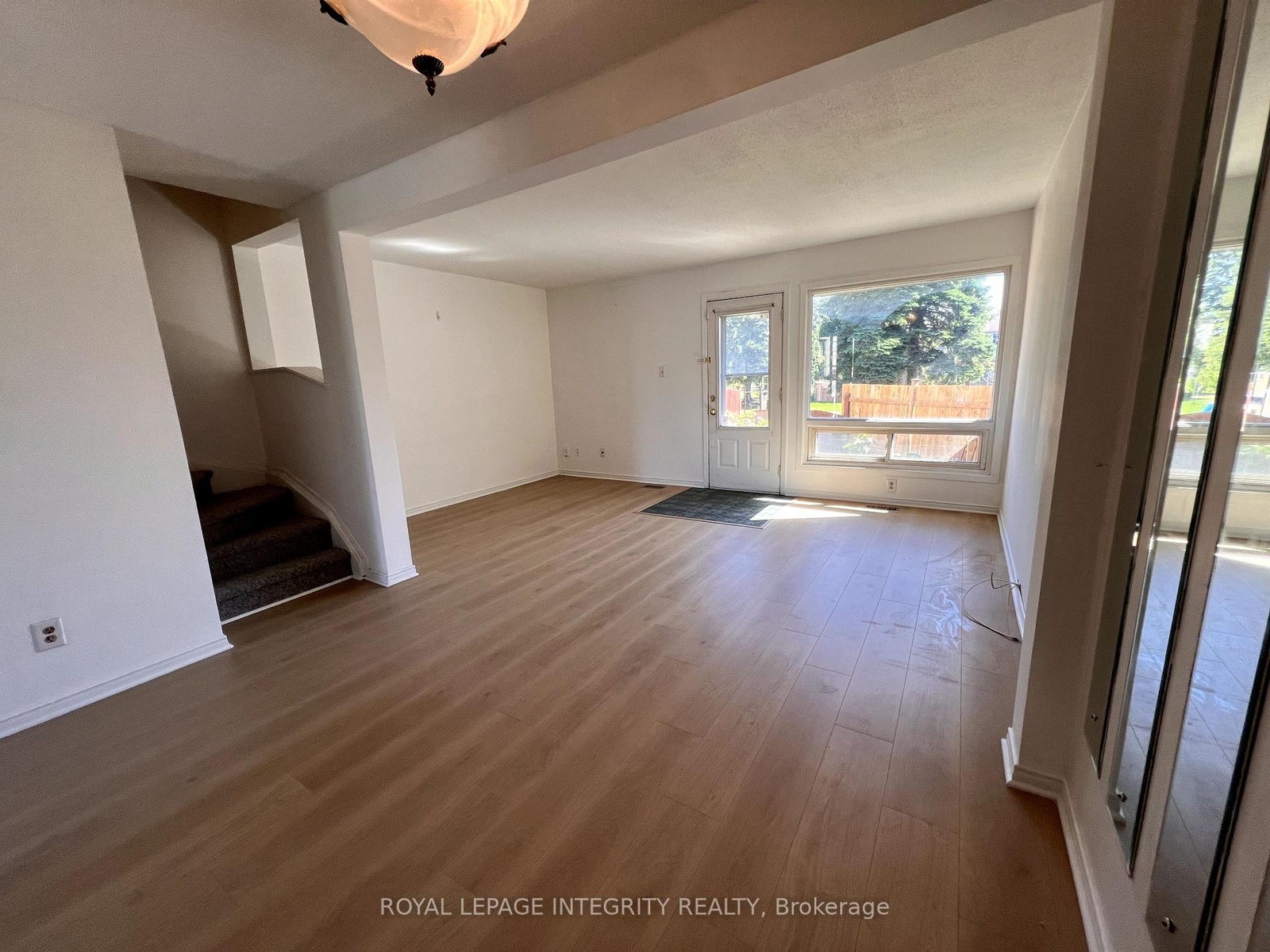 DescriptionThis sunny and well-maintained 3-bedroom end unit townhome offers a warm and inviting layout. The open-concept living room features laminate floors (2024), a large window, and a patio door that leads to a fully fenced backyard with a beautiful stone patio, perfect for relaxing or entertaining. 2 piece powder room. on the main level. A generous dining area and a cozy eat-in kitchen with solid cabinetry provide ample space for everyday living. Second level features a spacious primary bedroom with a large closet, along with two additional good-sized bedrooms and a full 3 piece bathroom. New laminate flooring throughout the home with carpet on the stairs(2024) for comfort and functionality. Close to shopping, recreational facilities, and public transit. Parking number 17 Street parking allowed after 4pm(Mon-Fri) Weekends anytime. Upgrades include laminate flooring (2024) Bathroom ceramic floor (2024) furnace (2024) AC (2025)Tenant pays utilities. *FULLY FINISHED BASEMENT*