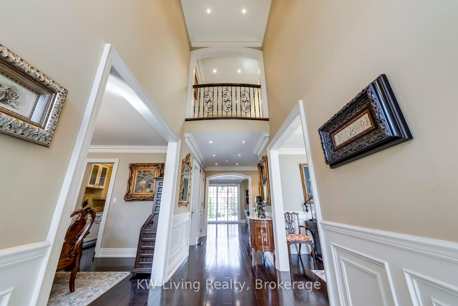 DescriptionThis custom-built home in Humber Valley Village is a true masterpiece! With its elegant design and luxurious features, it's sure to impress. Here is a summary of the key highlights: Situated in the prestigious Humber Valley Village, steps from St. Georges Golf & Country Club, top-rated schools, and convenient access to highways, transit, and the future LRT. A professionally landscaped 63 x 150-foot lot with stunning curb appeal. Over 5,000 square feet of living space with 4+1 bedrooms and 5 washrooms. Interior Features: Grand Foyer with an 18.2-foot open ceiling. Family Room with a 10-foot tray ceiling. Living Room with an 11-foot tray ceiling. Hardwood floors throughout the main and second floors. Formal dining room with a Butlers pantry. Open-concept family room with a gas fireplace and in-ceiling speakers. Chefs kitchen featuring high-end appliances (Subzero fridge, Wolf s/s gas cooktop, Wolf wall ovens, and granite countertops). Walkout to a fenced, landscaped garden and swimming pool, complete with a stone patio and outdoor bar/cabana. A convenient laundry room on the first floor with both garage and yard access. Primary Retreat: Vaulted ceiling up to 13 feet. A private balcony overlooking the pool. Dressing area and spa-like 5-piece ensuite. Walk-in closet with built-in cabinets. Second bedroom with its own ensuite and walk-in closet. Two additional bedrooms with a convenient Jack and Jill bathroom design. Basement: High ceilings with a spacious recreational room and gym. A bedroom and 3-piece bathroom. Storage room/office and a state-of-the-art wine cellar. This home combines sophisticated living with great functionality, and its proximity to essential amenities and schools makes it an exceptional choice for families. Its truly move-in ready ideal for anyone looking for luxury in one of Toronto's most sought-after neighbourhoods.Amenities- Built-In Oven