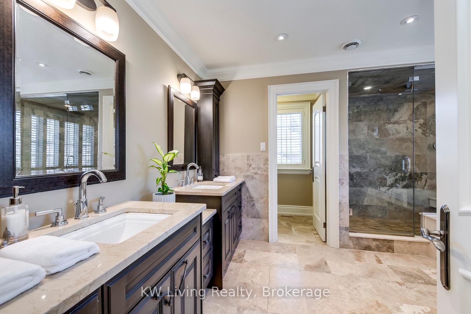 This custom-built home in Humber Valley Village is a true masterpiece! With its elegant design and luxurious features, it's sure to impress. Here is a summary of the key highlights: Situated in the prestigious Humber Valley Village, steps from St. Georges Golf & Country Club, top-rated schools, and convenient access to highways, transit, and the future LRT. A professionally landscaped 63 x 150-foot lot with stunning curb appeal. Over 5,000 square feet of living space with 4+1 bedrooms and 5 washrooms. Interior Features: Grand Foyer with an 18.2-foot open ceiling. Family Room with a 10-foot tray ceiling. Living Room with an 11-foot tray ceiling. Hardwood floors throughout the main and second floors. Formal dining room with a Butlers pantry. Open-concept family room with a gas fireplace and in-ceiling speakers. Chefs kitchen featuring high-end appliances (Subzero fridge, Wolf s/s gas cooktop, Wolf wall ovens, and granite countertops). Walkout to a fenced, landscaped garden and swimming pool, complete with a stone patio and outdoor bar/cabana. A convenient laundry room on the first floor with both garage and yard access. Primary Retreat: Vaulted ceiling up to 13 feet. A private balcony overlooking the pool. Dressing area and spa-like 5-piece ensuite. Walk-in closet with built-in cabinets. Second bedroom with its own ensuite and walk-in closet. Two additional bedrooms with a convenient Jack and Jill bathroom design. Basement: High ceilings with a spacious recreational room and gym. A bedroom and 3-piece bathroom. Storage room/office and a state-of-the-art wine cellar. This home combines sophisticated living with great functionality, and its proximity to essential amenities and schools makes it an exceptional choice for families. Its truly move-in ready ideal for anyone looking for luxury in one of Toronto's most sought-after neighbourhoods.