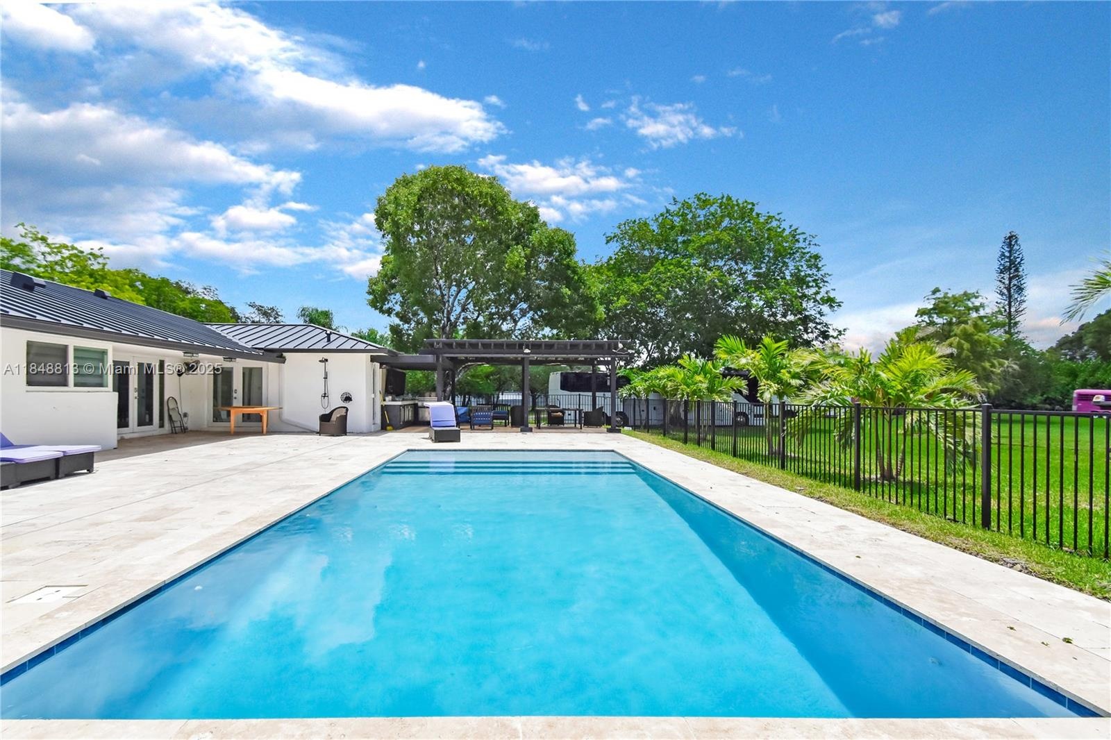 DescriptionModern Masterpiece on 2.04 Acres in Southwest Ranches! Privately nestled at the end of a cul-de-sac surrounded by mature trees and fully fenced 2.04 acres. This modern estate features 5 en-suite beds, an office, 5.5 baths, beautiful marble flooring throughout, new metal roof (2021), impact windows & doors. All beds have mini-split AC units and impact doors. The office has a full bath and can be used as a second primary bed or media room. Outside the backyard features a new saltwater pool (2022), pergola, and custom-built outdoor kitchen. This property offers remarkable flexibility: add barn, stables, guest house, or hobby farm, the possibilities are endless. NO HOA! Enjoy peaceful living in one of Southwest Ranches’ most desirable locations. Available for lease! Schedule your showing todayVirtual Tour: https://www.propertypanorama.com/instaview/mia/A11848813Amenities- BuiltInOven