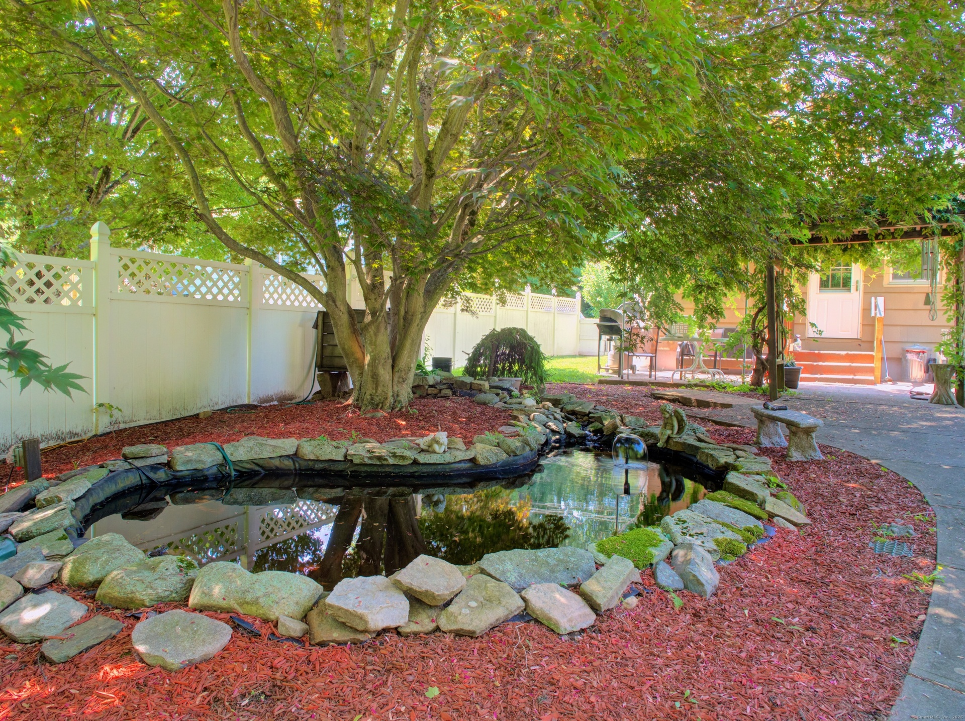 DescriptionBeautifully maintained ranch-style home offering 3 spacious bedrooms and 2 full baths. The home features hardwood floors throughout most of the main level and a large, private primary suite located above the garage with windows overlooking the beautiful backyard. The kitchen, dining, and living areas provide an easy flow for entertaining or everyday living. First-floor laundry adds convenience. The partially finished basement offers additional living space or storage. Step outside to your own backyard oasis featuring a hot tub, koi pond, mature gardens, and two versatile outbuildings. One serves as an extra garage/shed, and the other is perfect for a studio, home office, craft room, or potting shed. This home offers comfort, privacy, and character in a peaceful setting-just minutes from schools, shopping, and commuter routes.Amenities- Active Solar