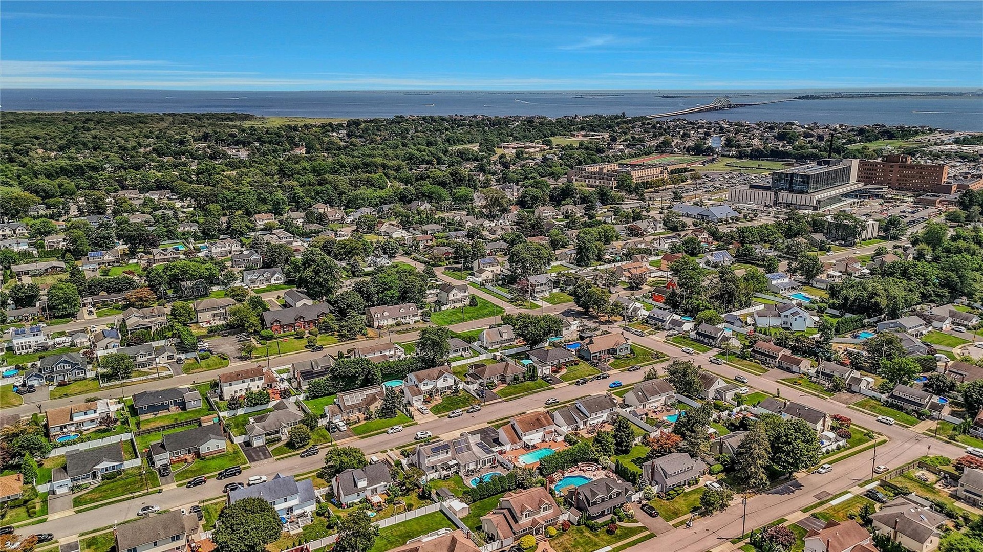 - Aerial view of property and surrounding area with nearby suburban area and a large body of water