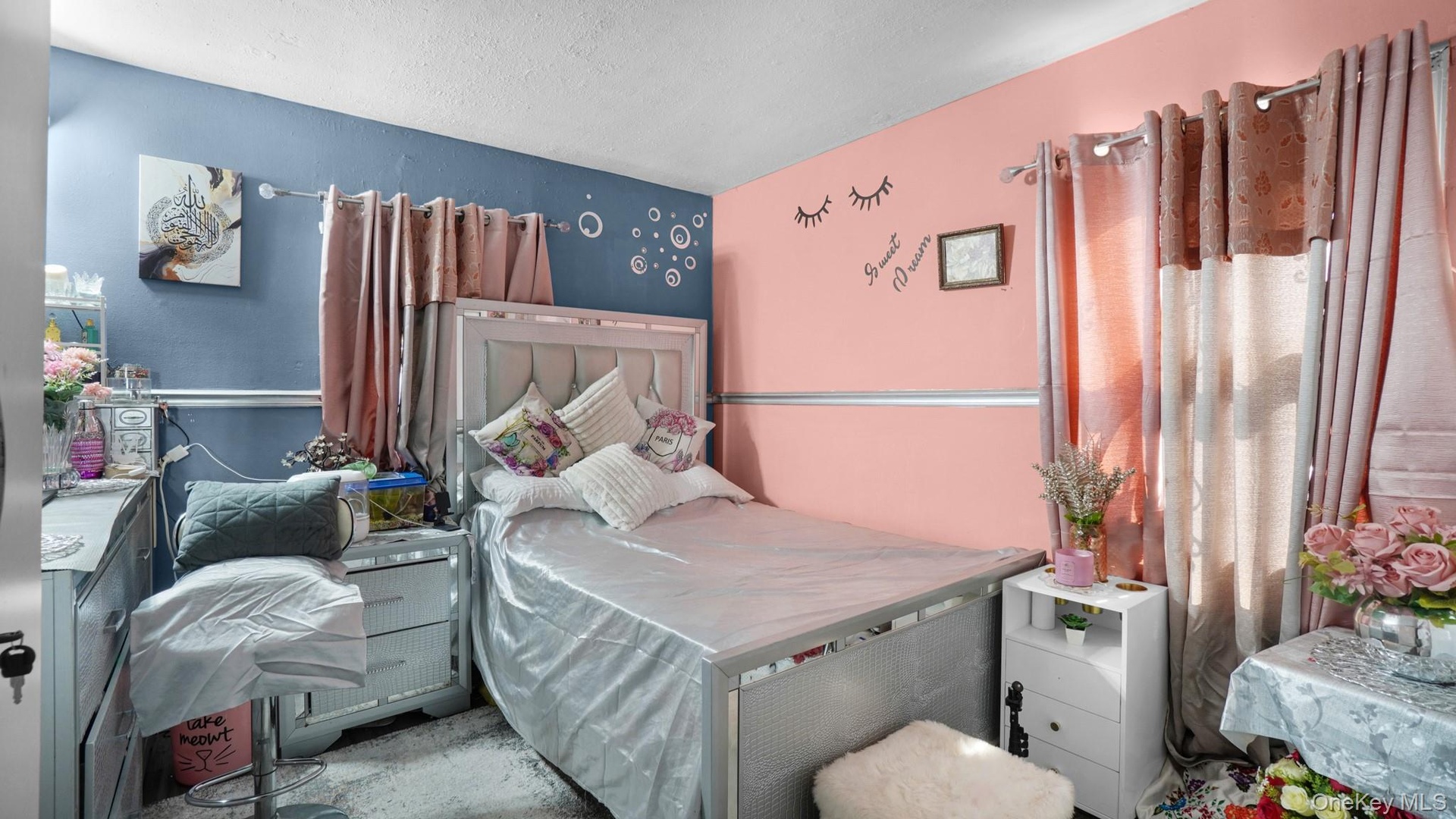 - Bedroom with a textured ceiling