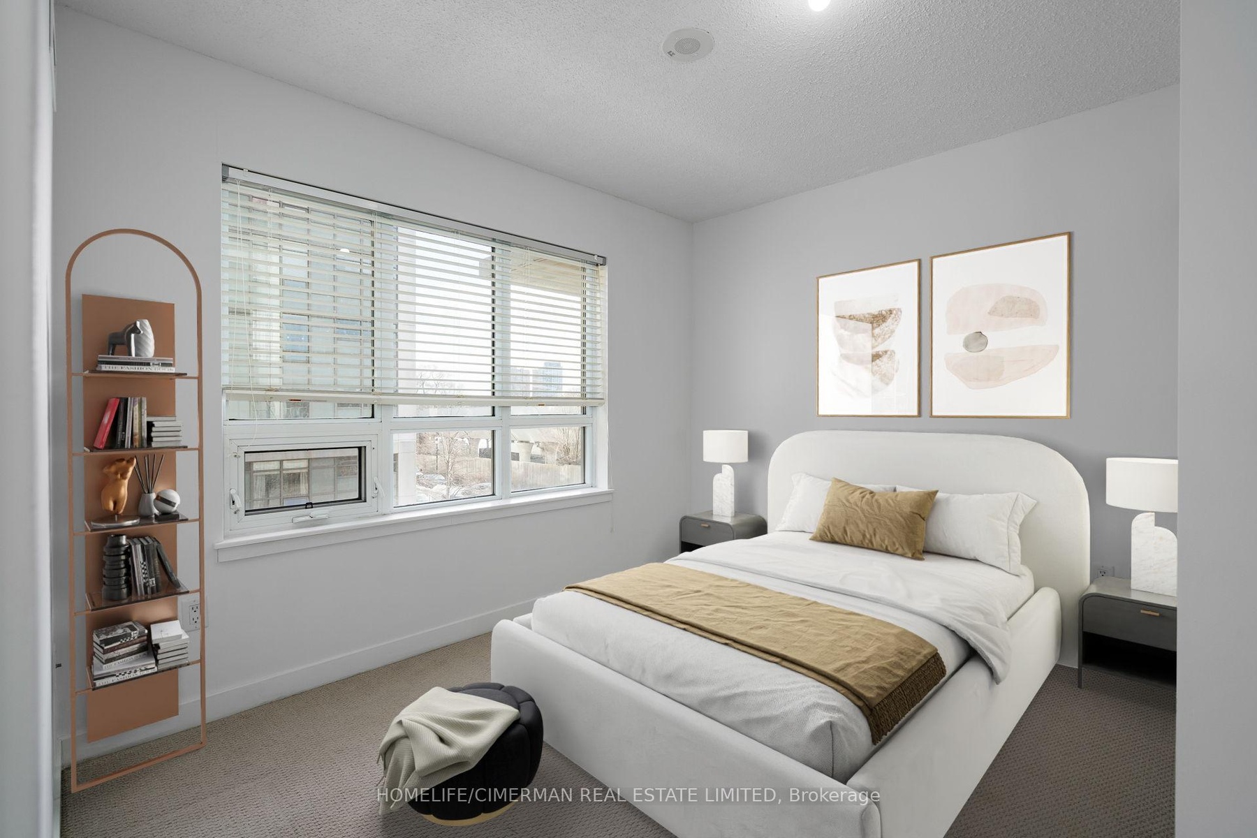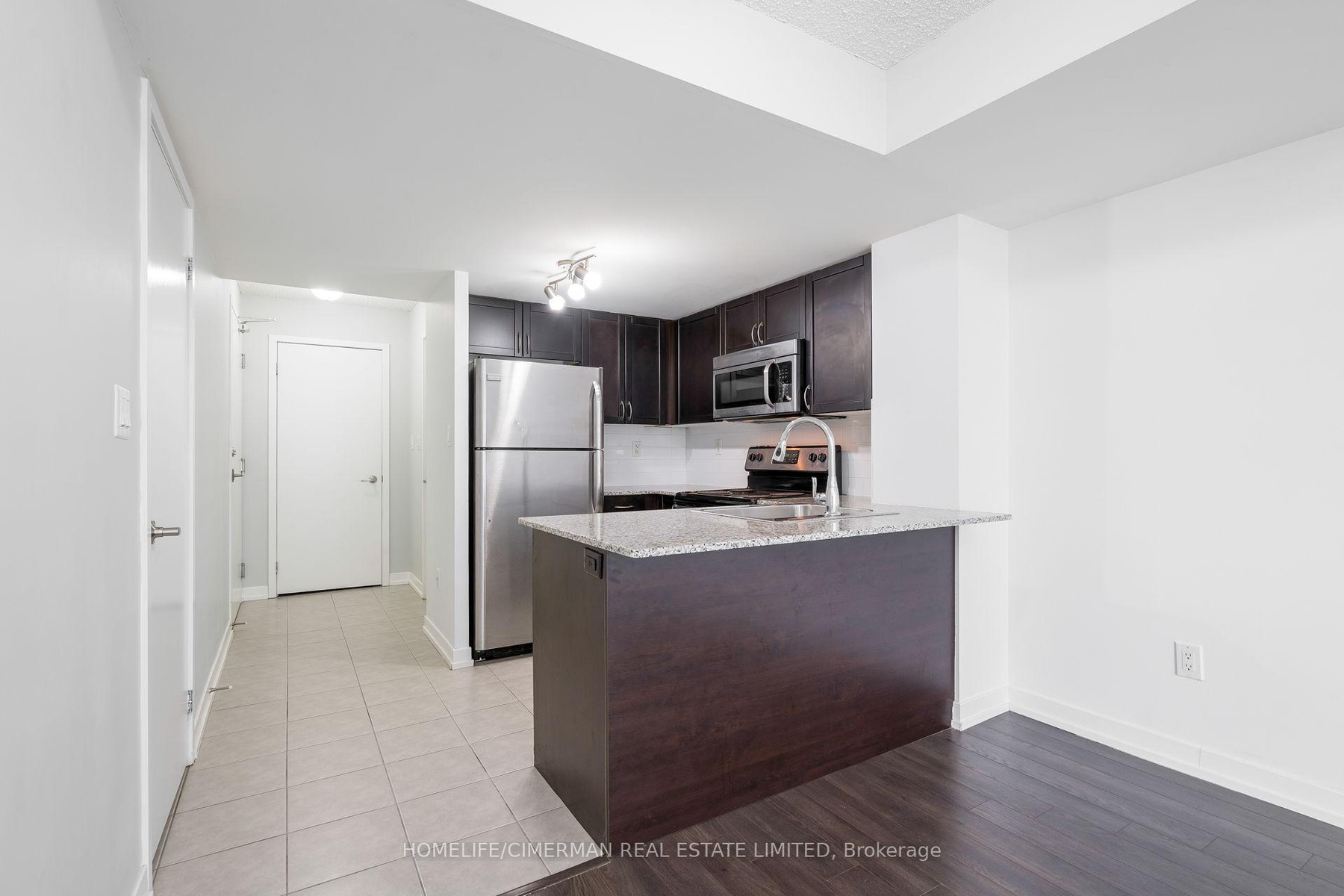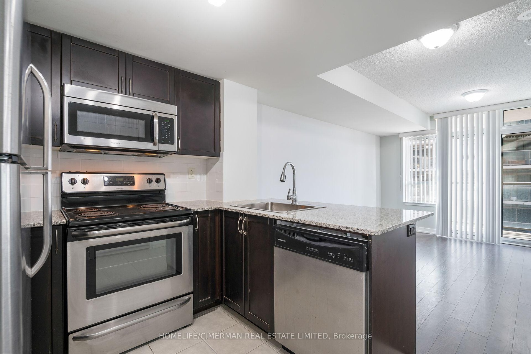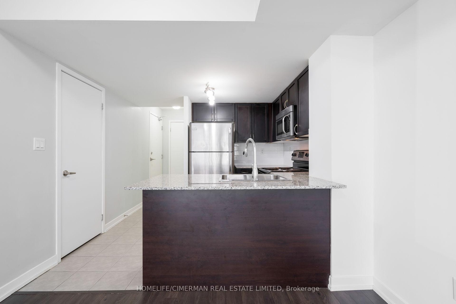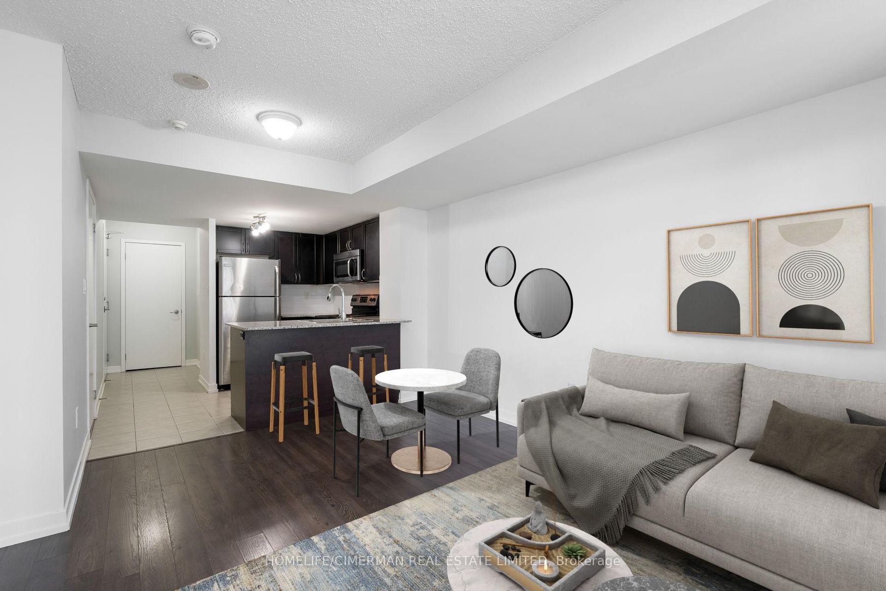 Welcome to Upside Down Condos! Beautiful and spacious one bedroom condo located in a very well-maintained boutique-style condominium near the Junction Triangle. Offering a modern open-concept layout Living/Dining with w/o to large balcony. Modern kitchen with granite countertops, breakfast bar, shaker-style cabinetry, subway tile backsplash and large single sink. The generously sized bedroom includes a double closet with shelving and a large window providing plenty of natural light. Additional storage space available at front foyer entrance. This affordable & charming unit is perfect for first-time buyers offering very low maintenance fees. Located in a vibrant community, including nearby Bloor West Village, The Junction, Geary Strip, High Park, Dufferin Mall, and more! Building amenities include an exercise room, sauna, party and games rooms, yoga studio, bicycle lockers, basketball court, billiards Room, ample underground visitor parking and security guard. Conveniently located close to public transit, groceries/food basics, Shoppers, schools, parks, and restaurants. The building is pet-friendly. Your clients will love it!