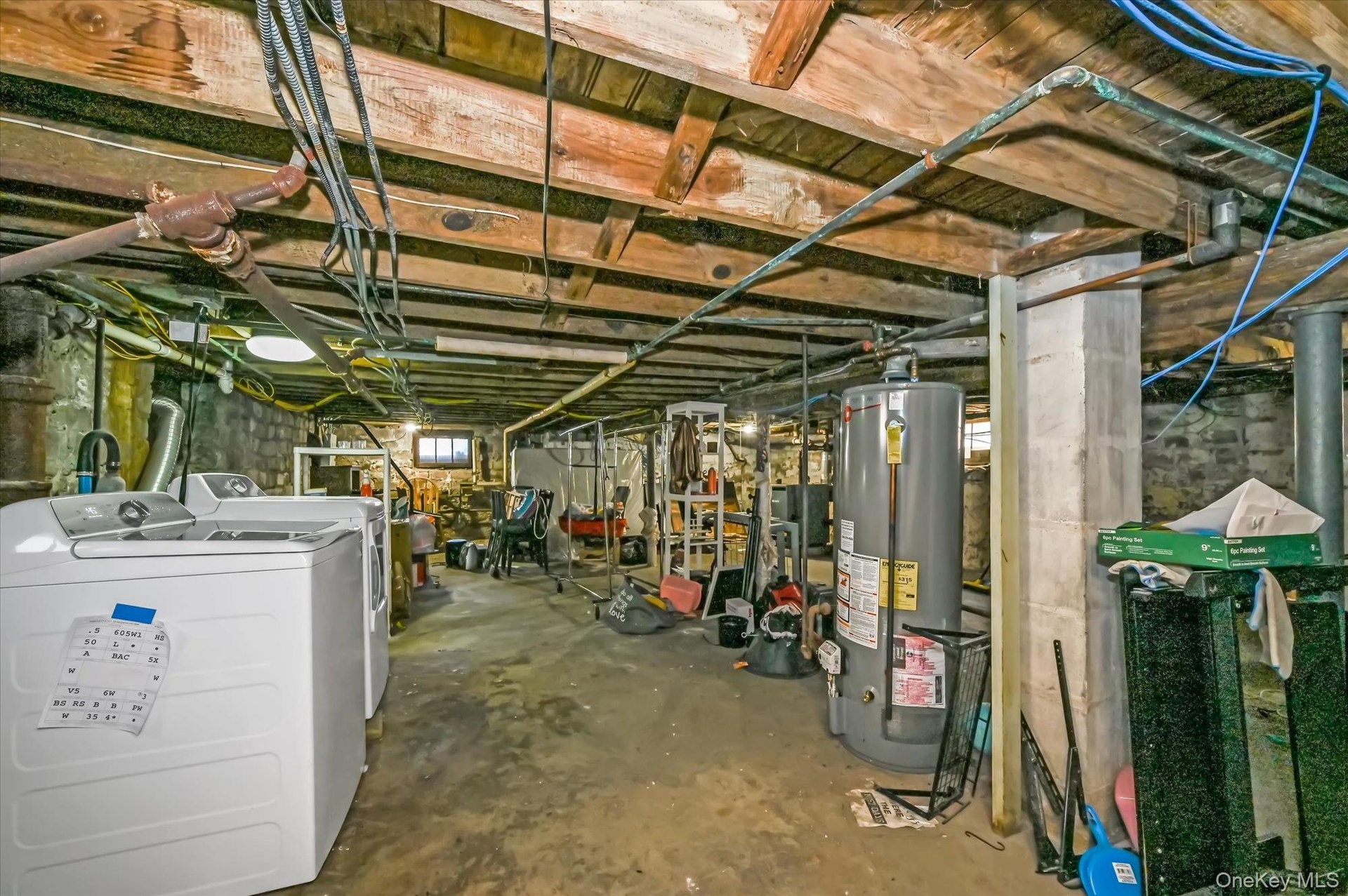 - Unfinished basement featuring gas water heater and washing machine and dryer