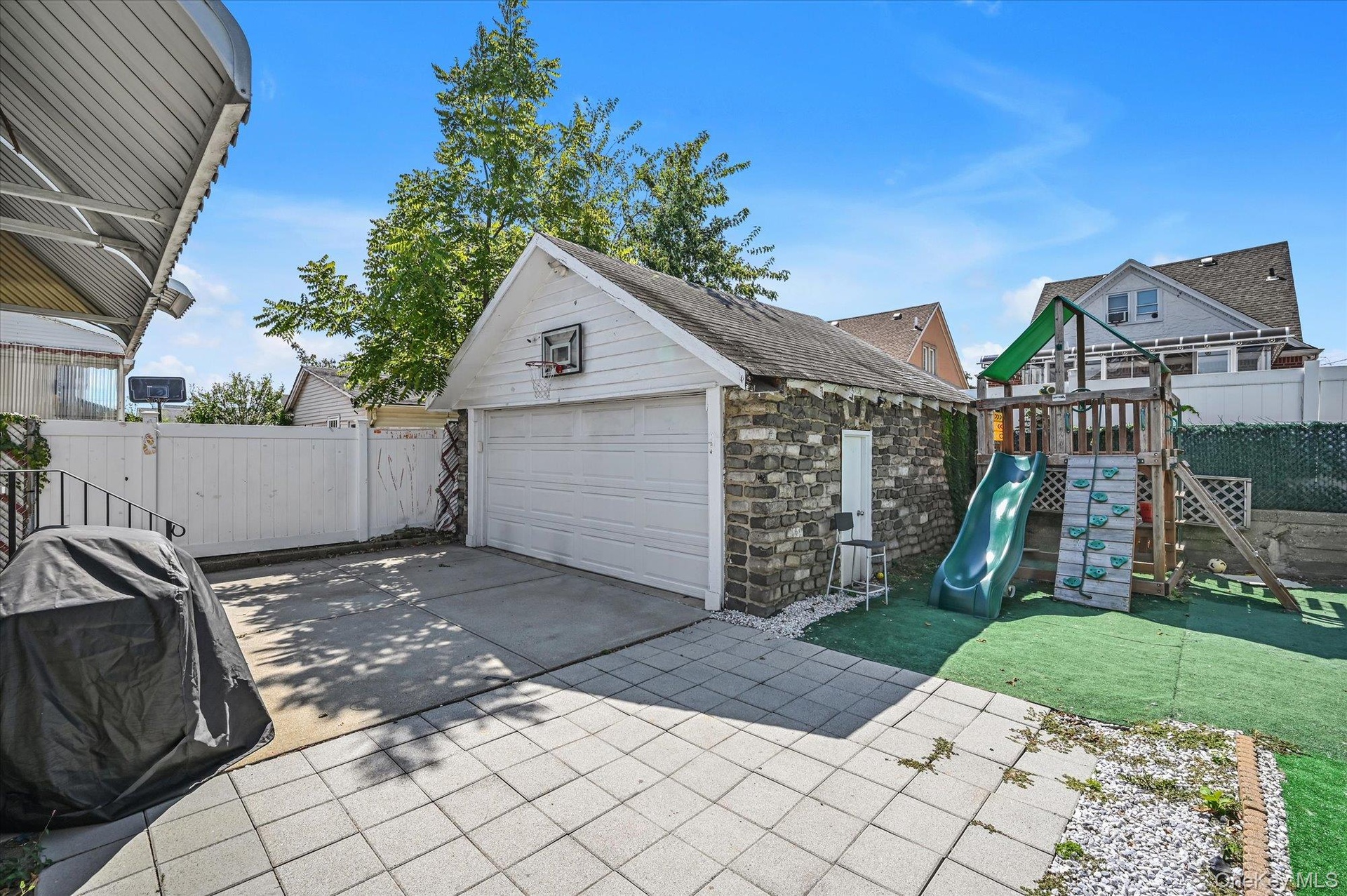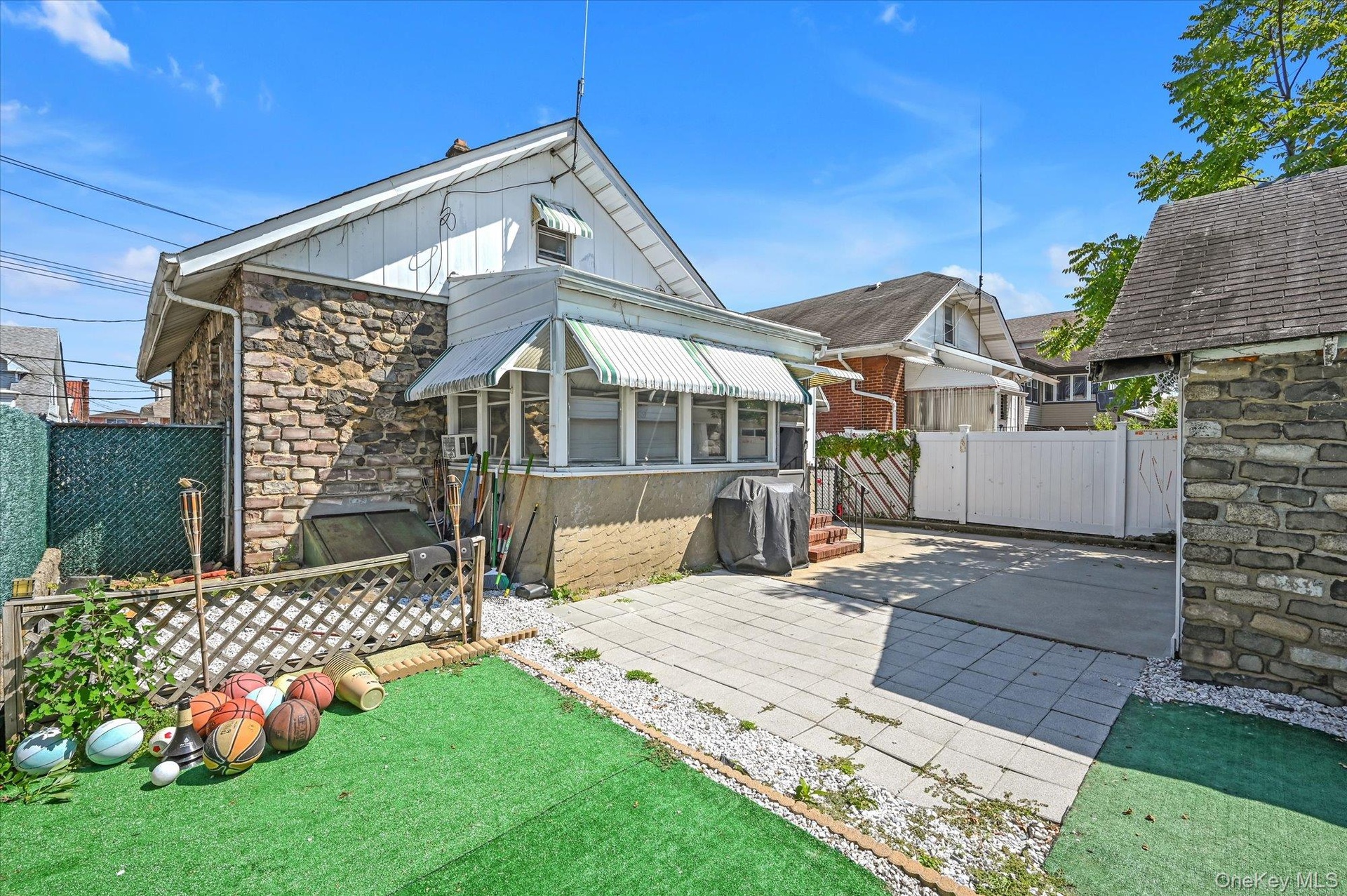 Constructed with stone and stucco, this home also includes a two-car garage and a long driveway that provides ample parking. The cozy backyard is ideal for relaxing or entertaining guests.