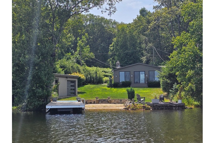 Available Immediately: Direct Waterfront property located on the west shore of Lake Quassapaug providing a tranquil setting to get away from the hustle and bustle of daily living. Nature surrounds you. Spotted nearby is the resident eagle, fox, turkey, and deer. Just a few hundred yards up the road is Flander's Nature Center, perfect for scenic hikes. Visit the new Tranquility Vineyard & Winery located just across the lake. This location is minutes away from excellent restaurants, community theatres, shopping, coffee shops, and many other amenities. New York City is only 90 minutes away. The house was completely renovated in 2020 by a local designer. It includes two bedrooms, two bathrooms, a washer/dryer, a Chef's kitchen equipped with a commercial Wolf oven and range, a Sub-Zero refrigerator, and a breakfast bar. Newly installed high-speed wired and Wi-Fi internet ensures connectivity. The house also features a 20kw Generac generator and switch for power outages. The beautiful sunrises and moonlit evenings over Lake Quassapaug provide a picturesque environment that will make you reluctant to leave.
