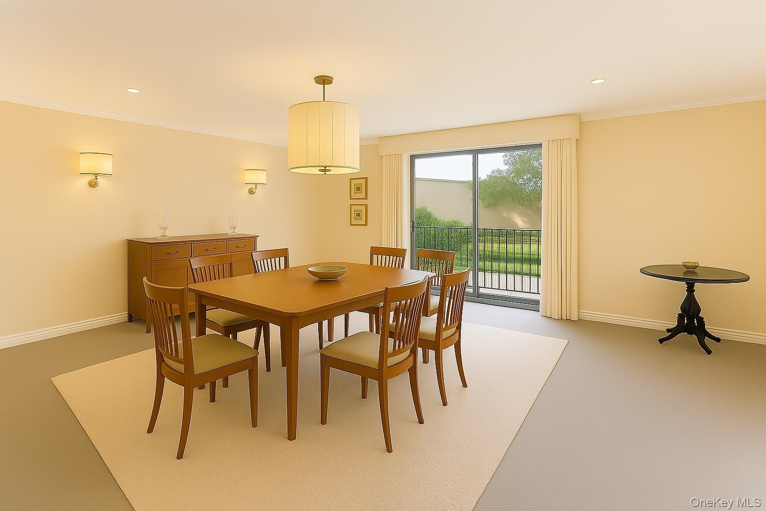 - Virtually Staged Dining space featuring recessed lighting and views