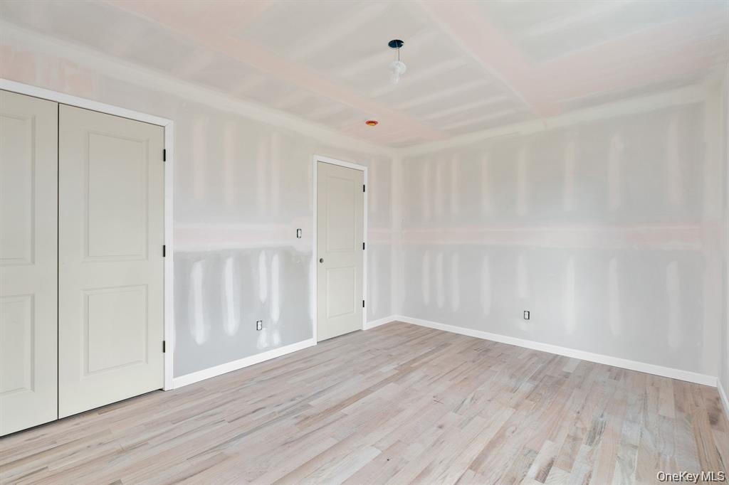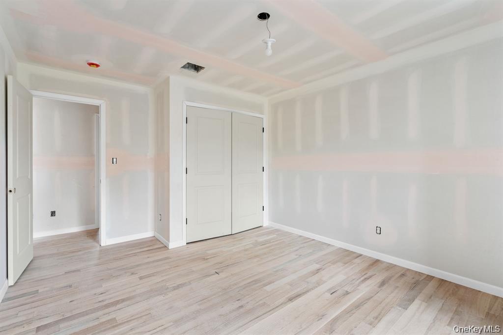 - Unfurnished bedroom featuring light wood-style floors and a closet