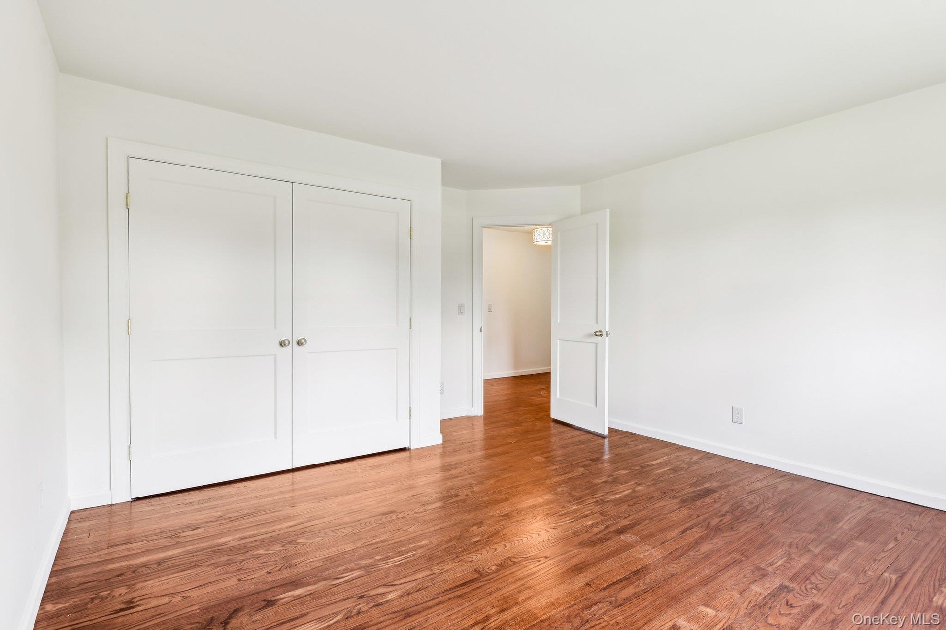 - Unfurnished bedroom featuring wood finished floors, a closet, and baseboards