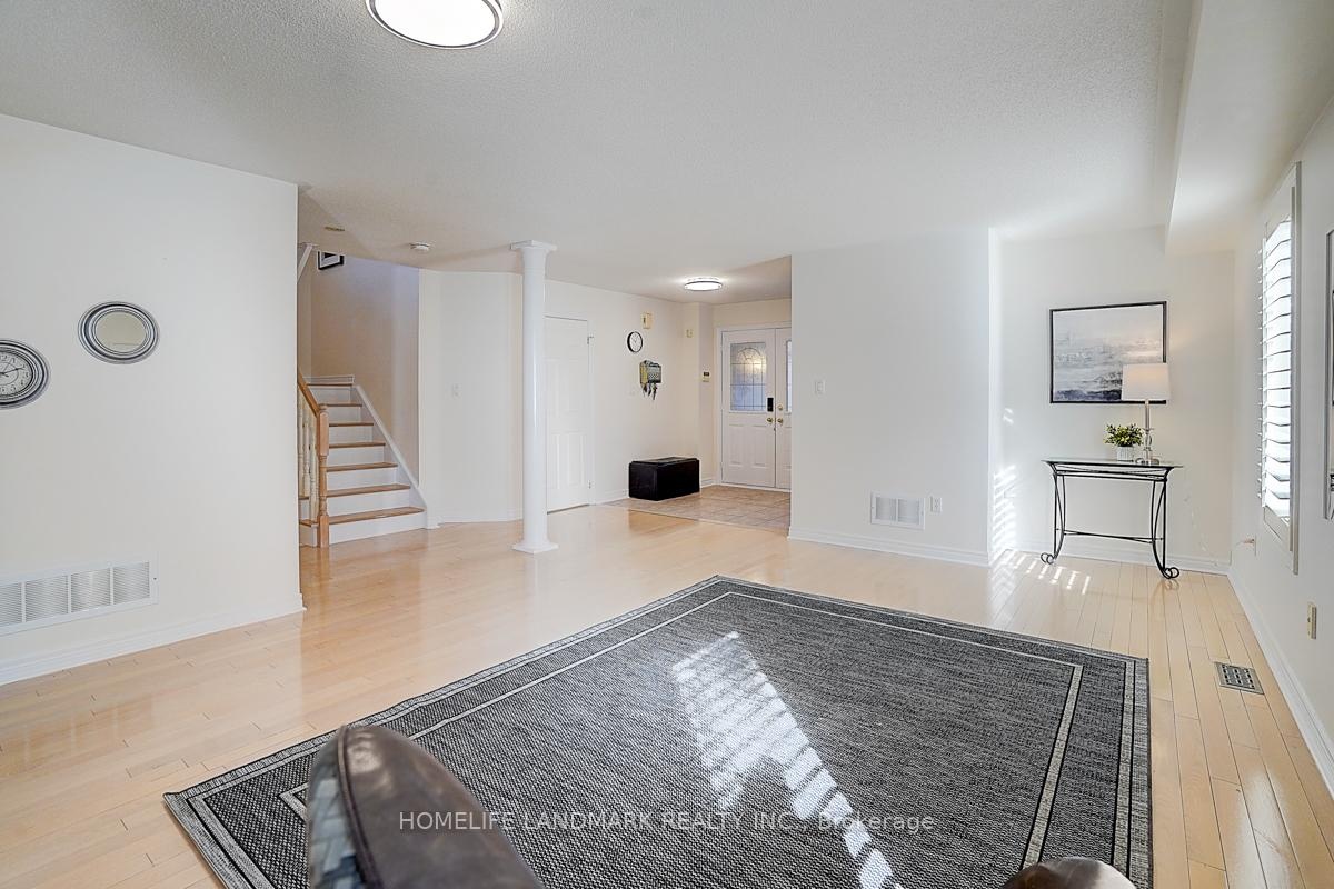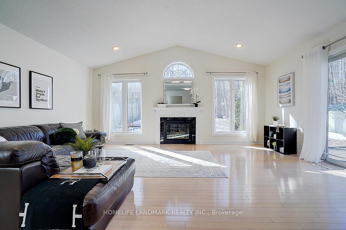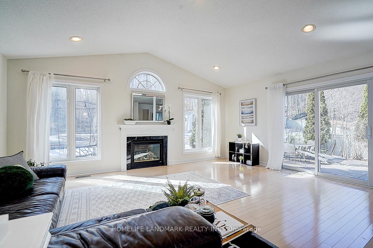 Stunning Detached Home Located in a sought-after neighborhood. Features a double garage with inside entry, hardwood and ceramic flooring throughout, and bright, sophisticated living and dining spaces. The spacious eat-in kitchen includes a breakfast bar, while the large family room impresses with a gas fireplace and soaring cathedral ceiling. Main-floor laundry and powder room add convenience. The primary suite offers a walk-in closet and a spa-inspired ensuite. Step outside to a beautifully landscaped backyard with a stone patio, in-ground sprinkler system. Backing onto a scenic forest and peaceful trail. Offers a rare blend of nature and privacy. Enjoy daily walks under a trees, vibrant fall colors, and a tranquil setting just beyond your backyard. Wilkins Walk Trail Just Behind Backyard and Wilkins Beach Steps Away