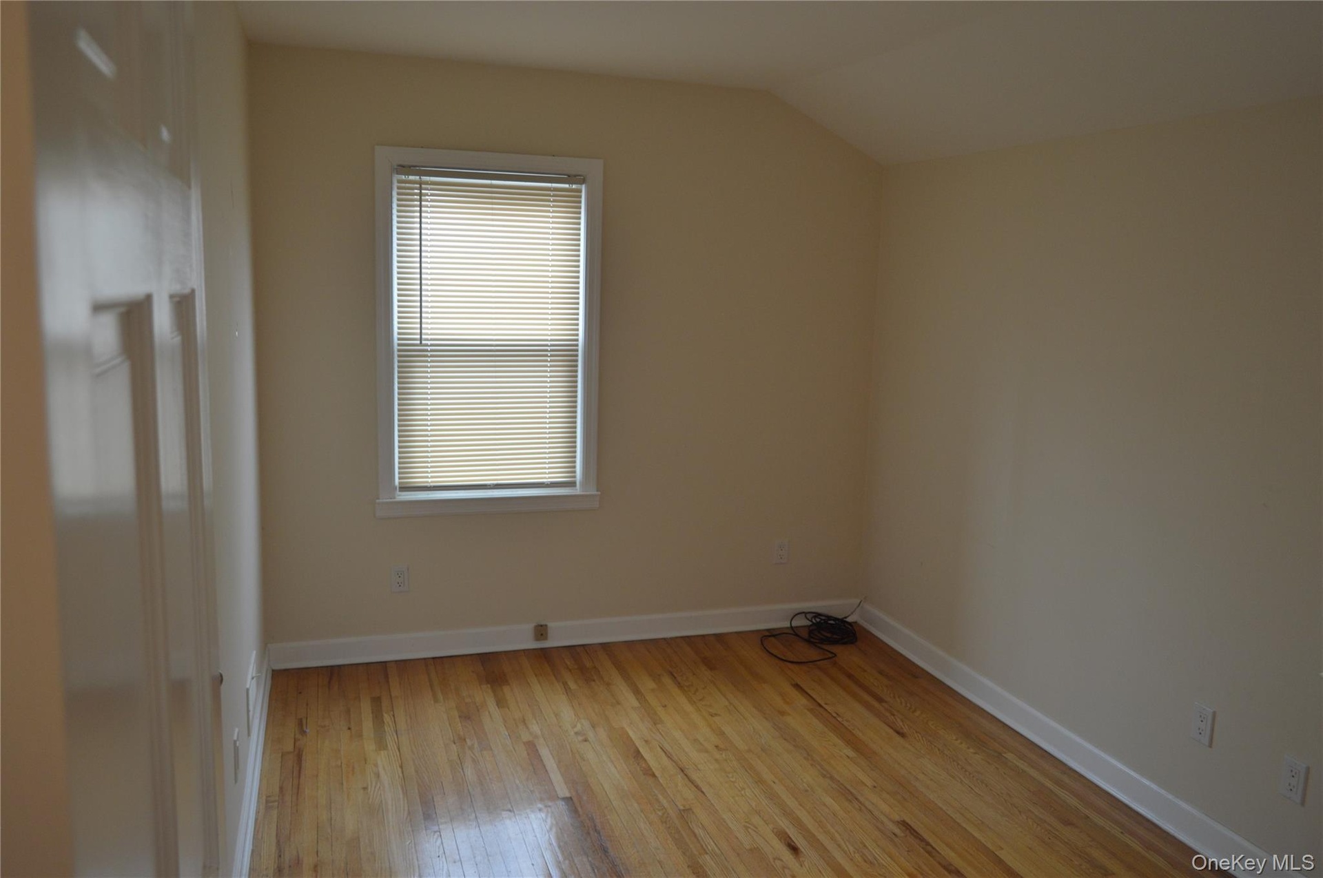 - Bedroom featuring hardwood / wood-style flooring and lofted ceiling