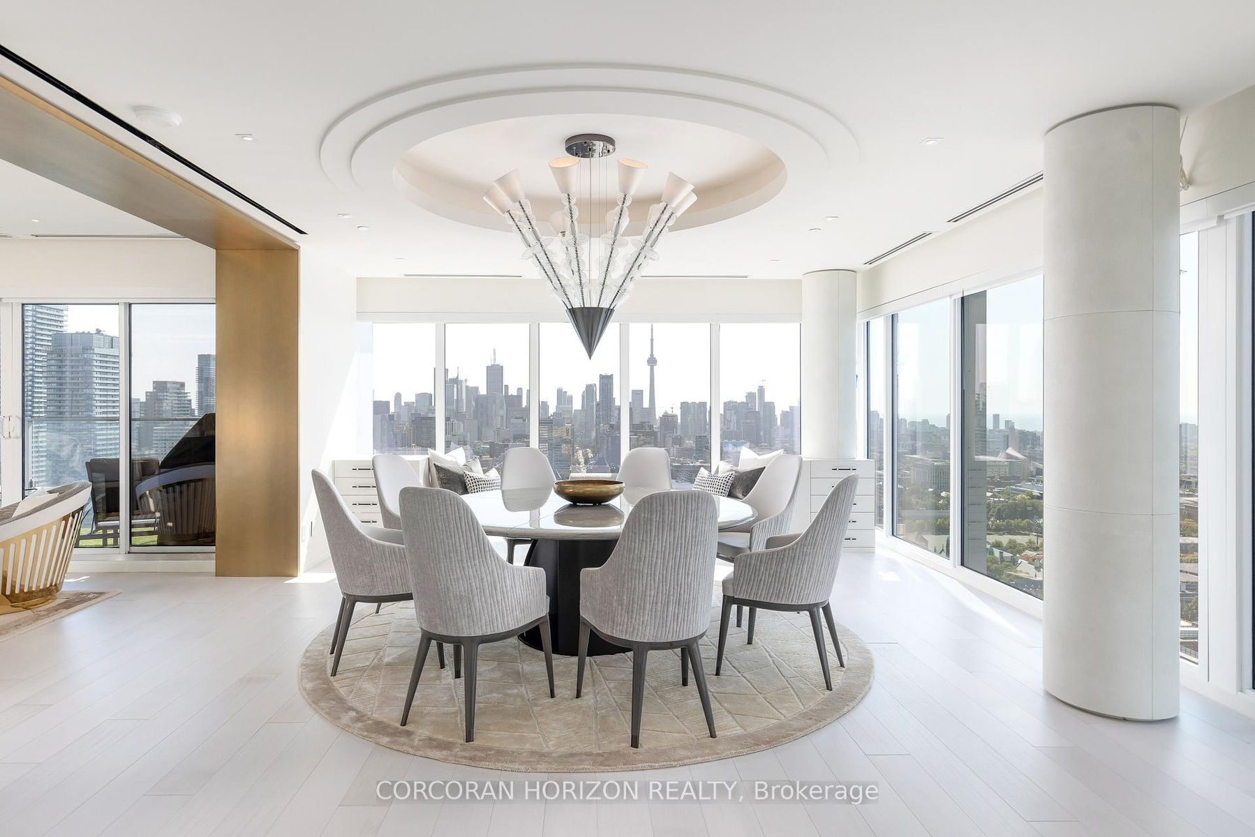 Nestled in the heart of Yorkville, Canada's premier luxury neighbourhood, this extraordinary 4,012 sq. ft. Executive Suite at Yorkville Private Estates delivers a living experience like no other. Never offered before, this impeccably designed 3-bedroom, 4-bathroom residence showcases the highest level of craftsmanship and materials sourced globally. Every detail has been thoughtfully curated to appeal to the most discerning buyer. Elevated high above, revel in the stunning views of the Toronto skyline, captivating both day and night. For car enthusiasts, the property features a rare, enclosed garage with 6 parking spaces, including one with an EV charger, along with 3 private lockers for additional storage. Highlights include: ***Exquisite Interiors: Custom Cabinetry and Millwork crafted by Mar-Tec Woodworking. ***Bespoke Detailing: Wrapped leather columns, handpicked California hardware by ADH Fine Hardware, and custom-designed cabinetry set this home apart. ***Artisanal Finishes: Custom Murano & Baccarat light fixtures, Costa Marble installations, and 7" custom Sapele wood flooring by Rosewood Flooring elevate every space. ***Masterful Design: Designed by Tomas Pearce, the residence includes a 12-foot custom fireplace by The Fireplace Specialists and an artfully crafted backsplash by world-renowned artist Rob Baylor. ***Five-Star Amenities: Enjoy 24-hour concierge, valet, two gyms, an indoor pool, golf simulator, party room, and an expansive rooftop terrace. This Executive Suite perfectly blends elegance and functionality, delivering the ultimate balance of luxury, privacy, and sophistication in one of Canada's most exclusive neighbourhoods. Yorkville is renowned for its fine dining, high-end shopping, and cosmopolitan allure. This lifestyle offers seamless access to Toronto's vibrant cultural and social scene. A true crown jewel in the sky.