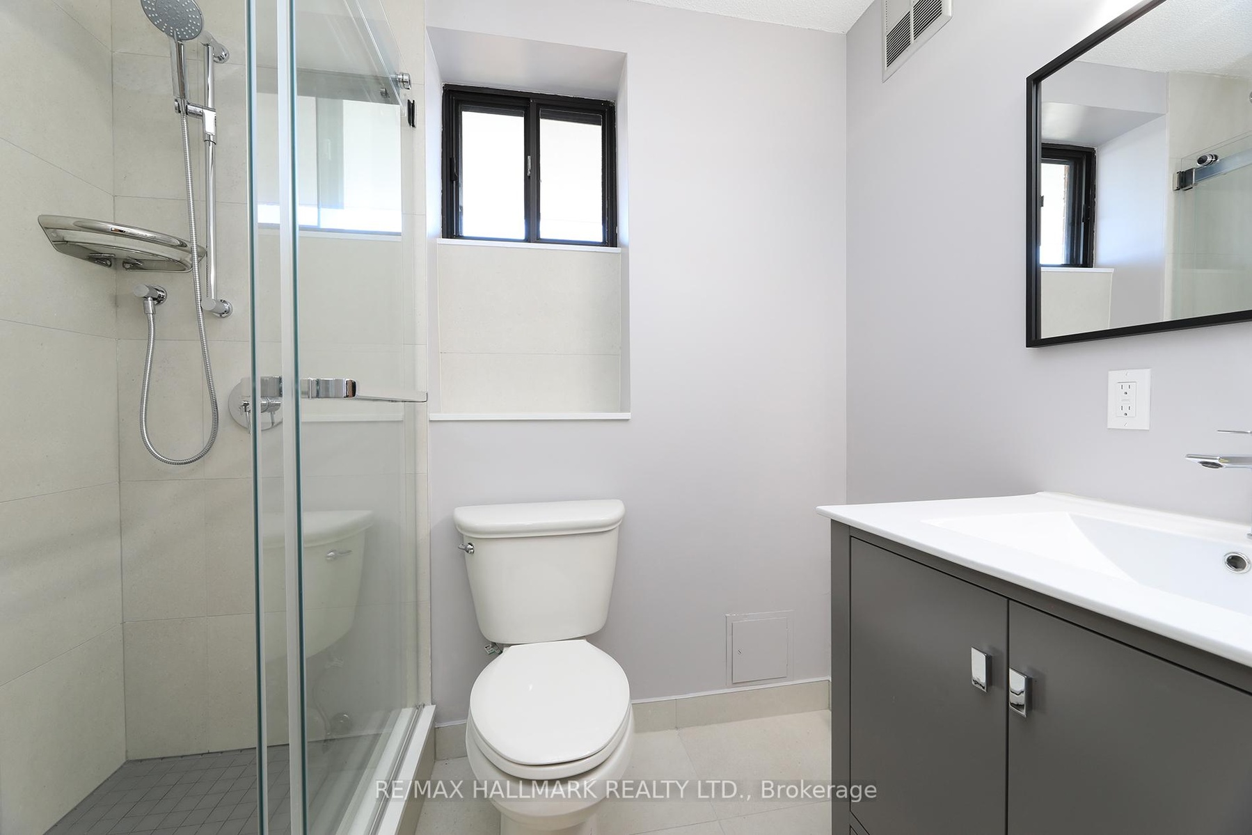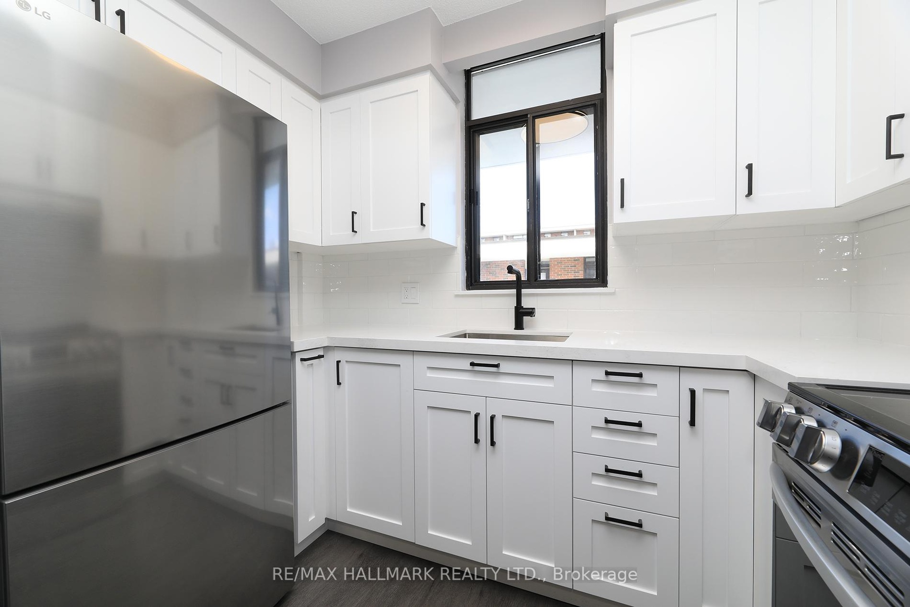 Brand new kitchen / bathroom / LED light fixtures / LR & Kitchen flooring and much more. Peaceful quiet location atop the tranquil UTSC valley which is a nature lovers paradise. Gorgeous 2 bedroom suite with great floor plan and a huge (33 foot) west balcony for sunsets, 2 large in suite closets plus an oversized 8' x 8' locker behind your parking spot. Maintenance fee includes everything: taxes, heat, hydro, water, internet, cable, common elements. Parking spot conveniently located near the elevator. Fantastic amenities: New laundry facilities, indoor pool, sauna, billiard room, exercise room, library, party room, craft room, workshop, meeting room, Close to shopping, transit, Hwy 401. Site pet restrictions allow cats, but not dogs. Laundry conveniently located in the basement with newer machines. Window air conditioners are allowed with no extra hydro charge. This suite is move in ready and perfect for downsizers.