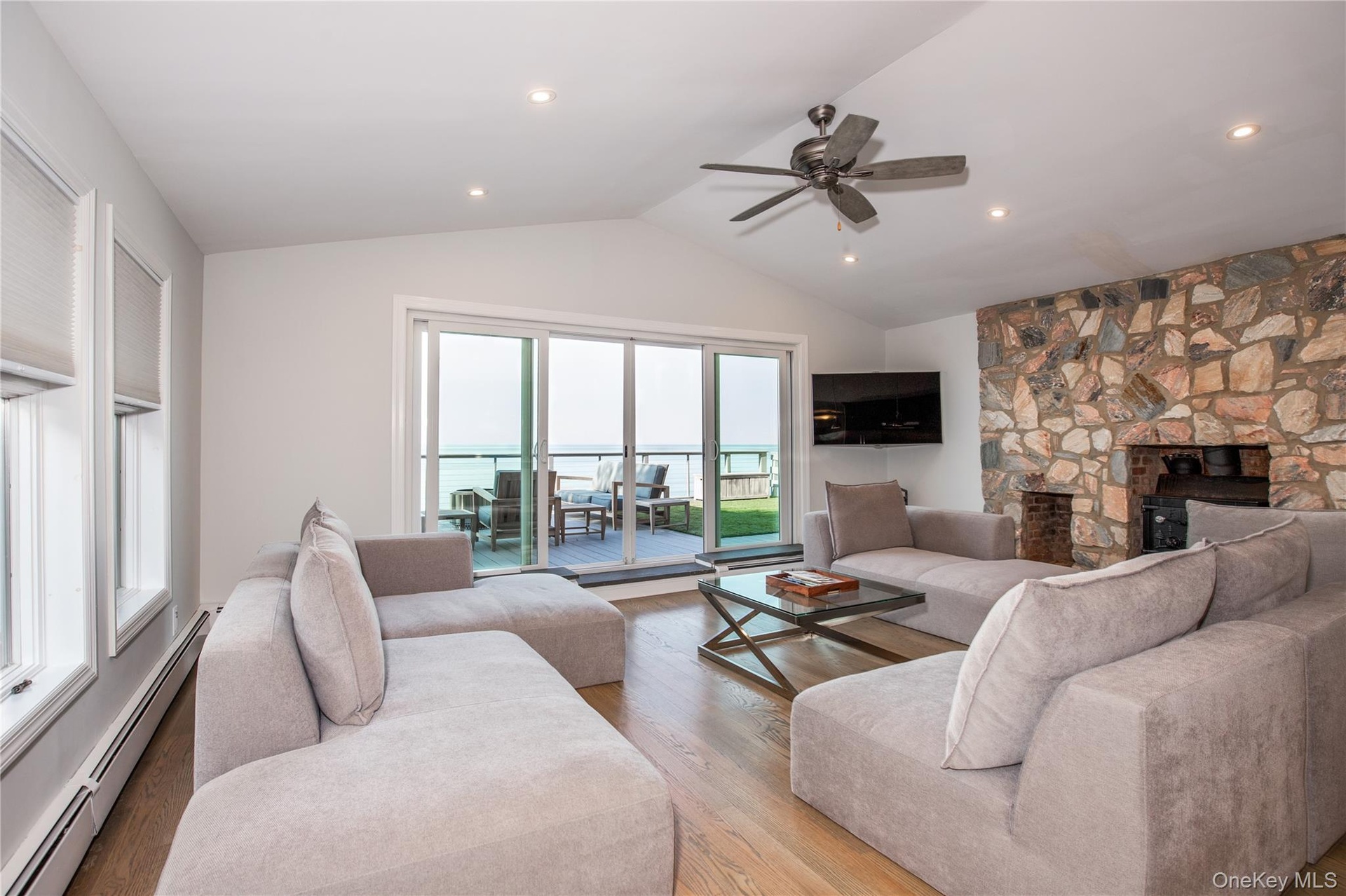 Tucked away in one of the North Shore's most exclusive and private beach communities, this custom-designed waterfront home is a rare find a true hidden gem offering privacy, elegance, and breathtaking views of the Long Island Sound and Connecticut coastline. Crafted with a thoughtful open-concept design to maximize light and space, the home offers seamless indoor-outdoor living, perfect for both grand entertaining and quiet coastal relaxation. Enjoy direct private beach access, stunning sunsets, and the soothing sounds of the shoreline all just steps from your door. This exceptional home features two expansive primary suites, a gated driveway, and a versatile bonus room opening to a sun-filled four-season sunroom ideal for use as a guest retreat, office, or wellness space. Offered furnished or unfurnished, this turnkey property is ready to meet your lifestyle whether you're looking for a luxurious weekend escape or a serene year-round residence.