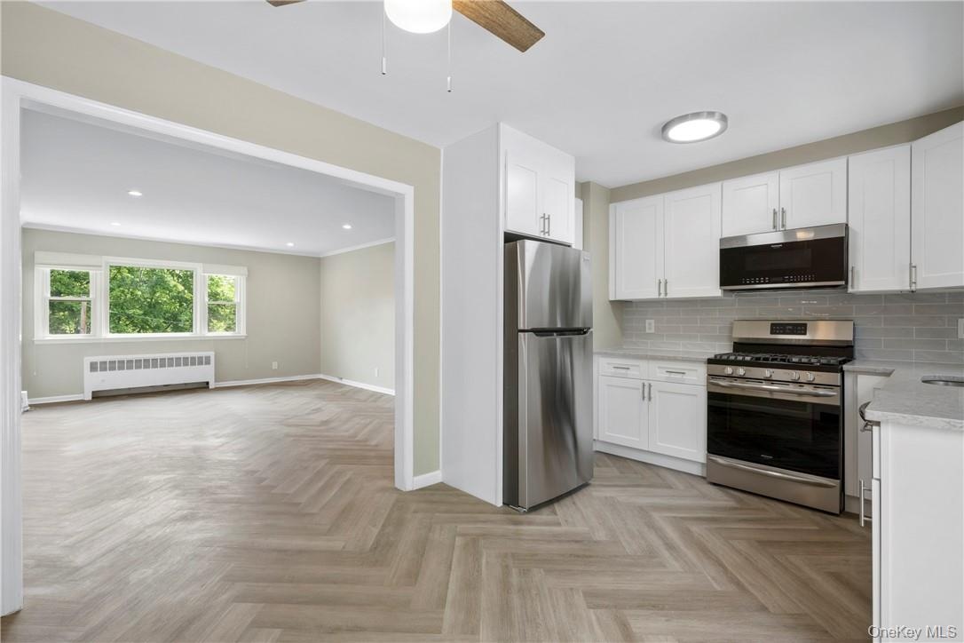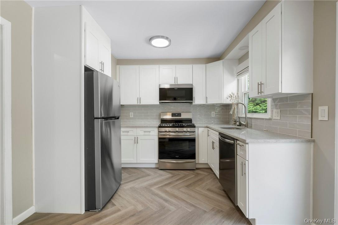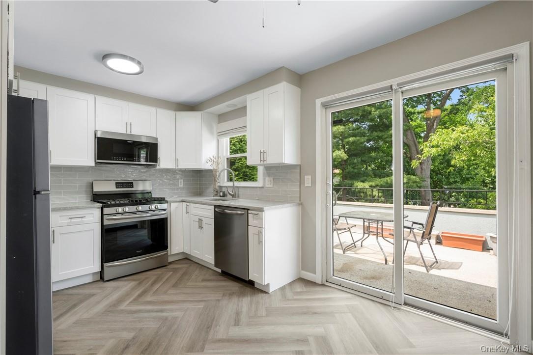 Discover the epitome of cozy living in this meticulously renovated top floor unit of a multi family home located 2 blocks from Crestwood Metro North. The tastefully designed eat in kitchen features sleek stainless steel appliances, granite countertops, & access to the private balcony for relaxing. The open layout creates a seamless flow between the living room and the rest of the home, making it ideal for enjoying a night in. Two bedrooms or use second bedroom as an office. Each room has ample closet space, full hall bath, & a hall linen closet that provides practical storage solutions. Additional amenities include an in unit washer & dryer, herringbone vinyl floors throughout, & additional storage in the attic. Close to an array of restaurants, shops, and amenities nearby including The Bronx River Parkway, and both the Town of Eastchester and Bronxville Village. Don't miss the chance to experience the beauty, convenience, and comfort of this renovated home in a desirable location.