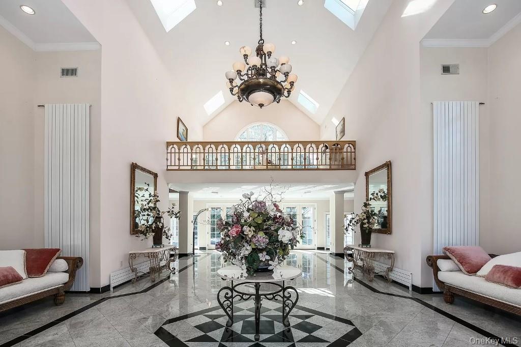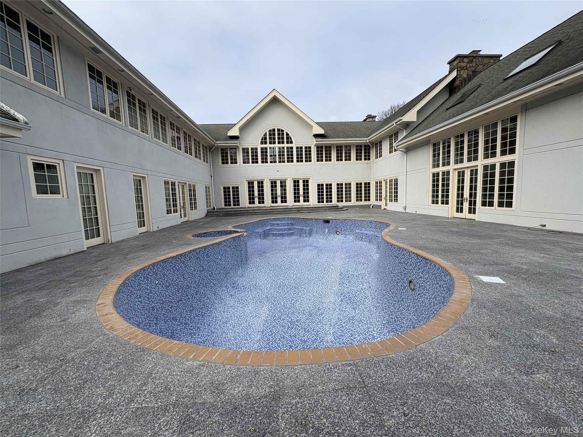 Contemporary style with high cathedral ceilings (22-26 ft), Majestic opening foyer welcomes you into this home - take in views of the in-ground swimming pool, which all wings of the home focus on. One shower room for pool, and one pool storage room