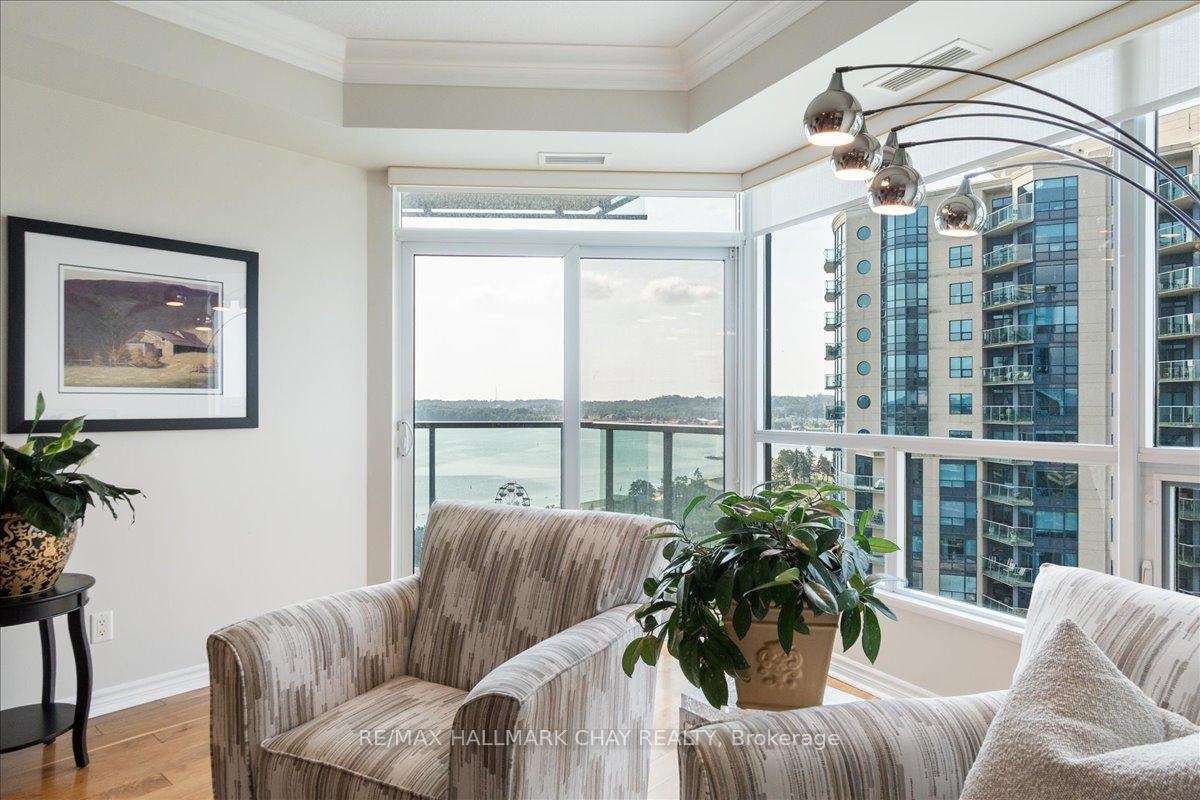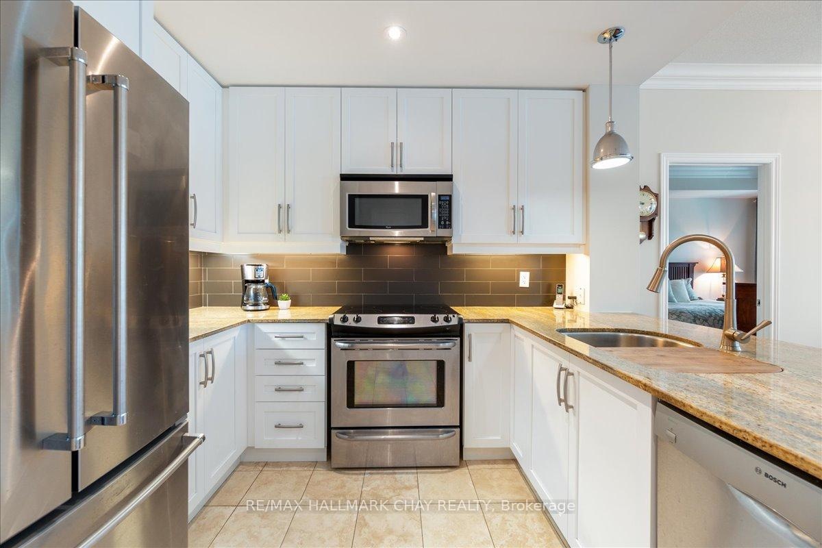 DescriptionCustom One Of A Kind 2 Bedroom & Den, 2 Bath Suite At Nautica. 1,381 Sq. Ft. This model has been modified to have the second bedroom as a dining room and bar. It could be easily put back. Beautifully Finished With Hardwood Flooring, Crown Molding, 9' Ceilings, Custom Lighting, Loads Of Storage & Room To Entertain. Expansive View Of The Water From Living Room & Walk Out To Oversized Balcony Overlooking The Beach And Kempenfelt Bay, Enjoy The Sunrises & Sunsets. Customized Kitchen With Upgraded Appliances, Tile Backsplash, Breakfast Counter With Seating, Granite Counters, Pendent Lighting, Pot Lights, Full Height Cabinetry, And Oversized Pantry Cupboard. Spacious Den Has A Gorgeous Built-In Unit, Add a Pull Out Couch Or Murphy Bed For Guests. The Extended Living/Dining Area Has A Custom Built-In Wine Bar With Glass Cabinets Storage For All Your Extras. Full 4-Piece Main Bath Plus A Gorgeous Ensuite Bath With Walk In Shower, Jetted Soaker Tub & Upgraded Vanity. Ensuite Laundry Combined With Storage. Fantastic Social Activities And Rec Facilities. Indoor Parking, Locker, Steps To The Walking Trails, Beach, Marina and Go StationVirtual Tour: https://studio212.hd.pics/33-Ellen-St-3/idxAmenities- Auto Garage Door Remote