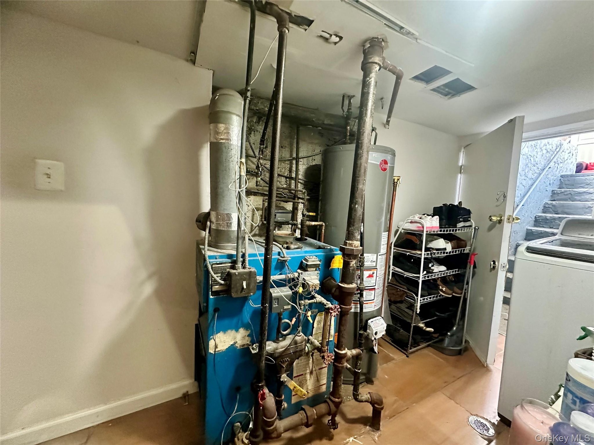 - Utility room featuring washer / dryer, a heating unit, and gas water heater